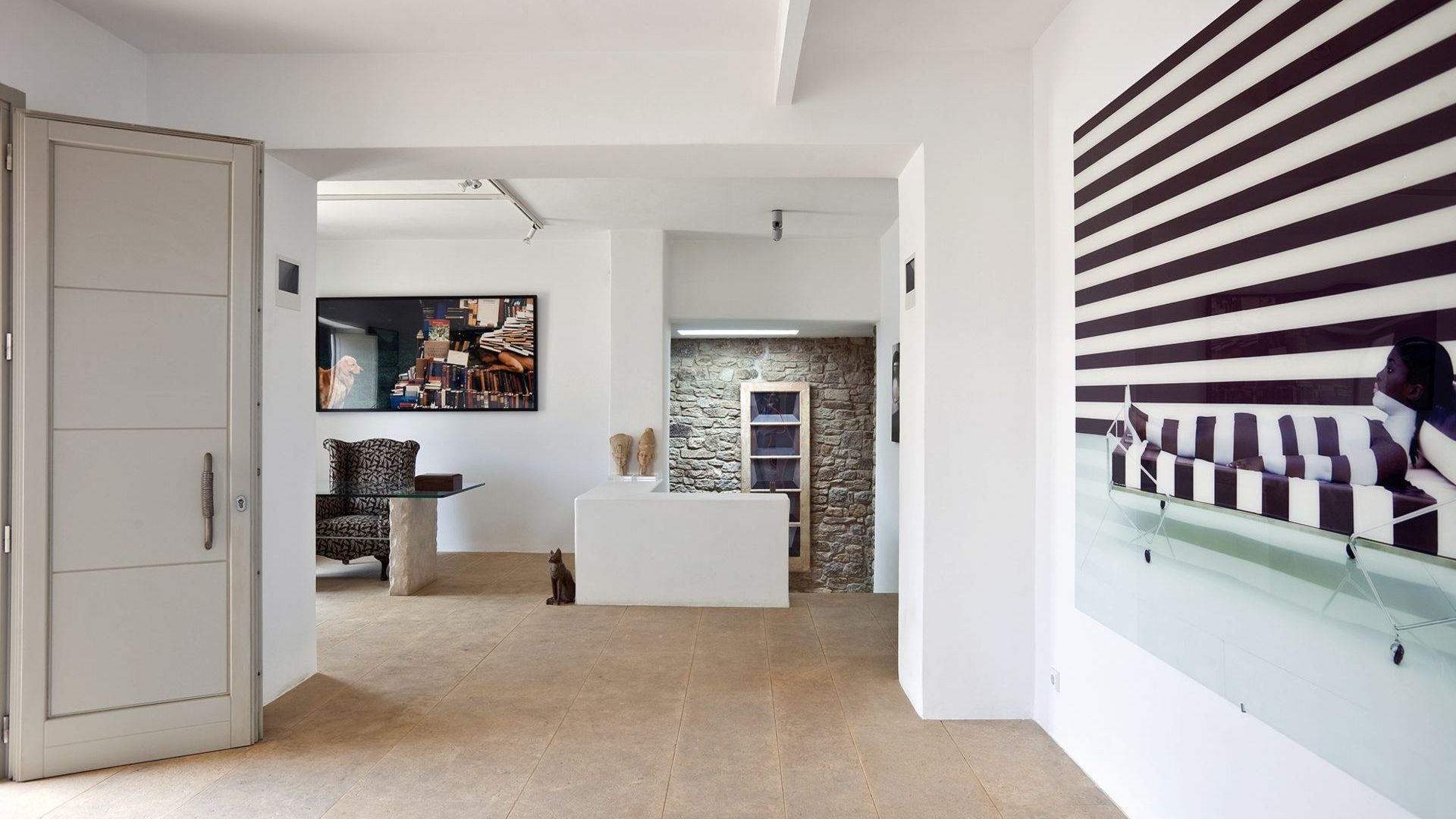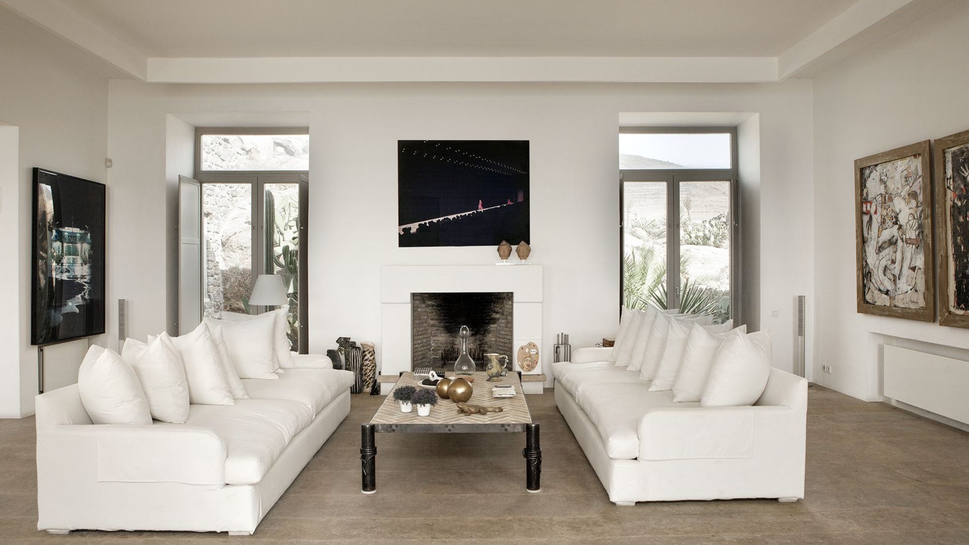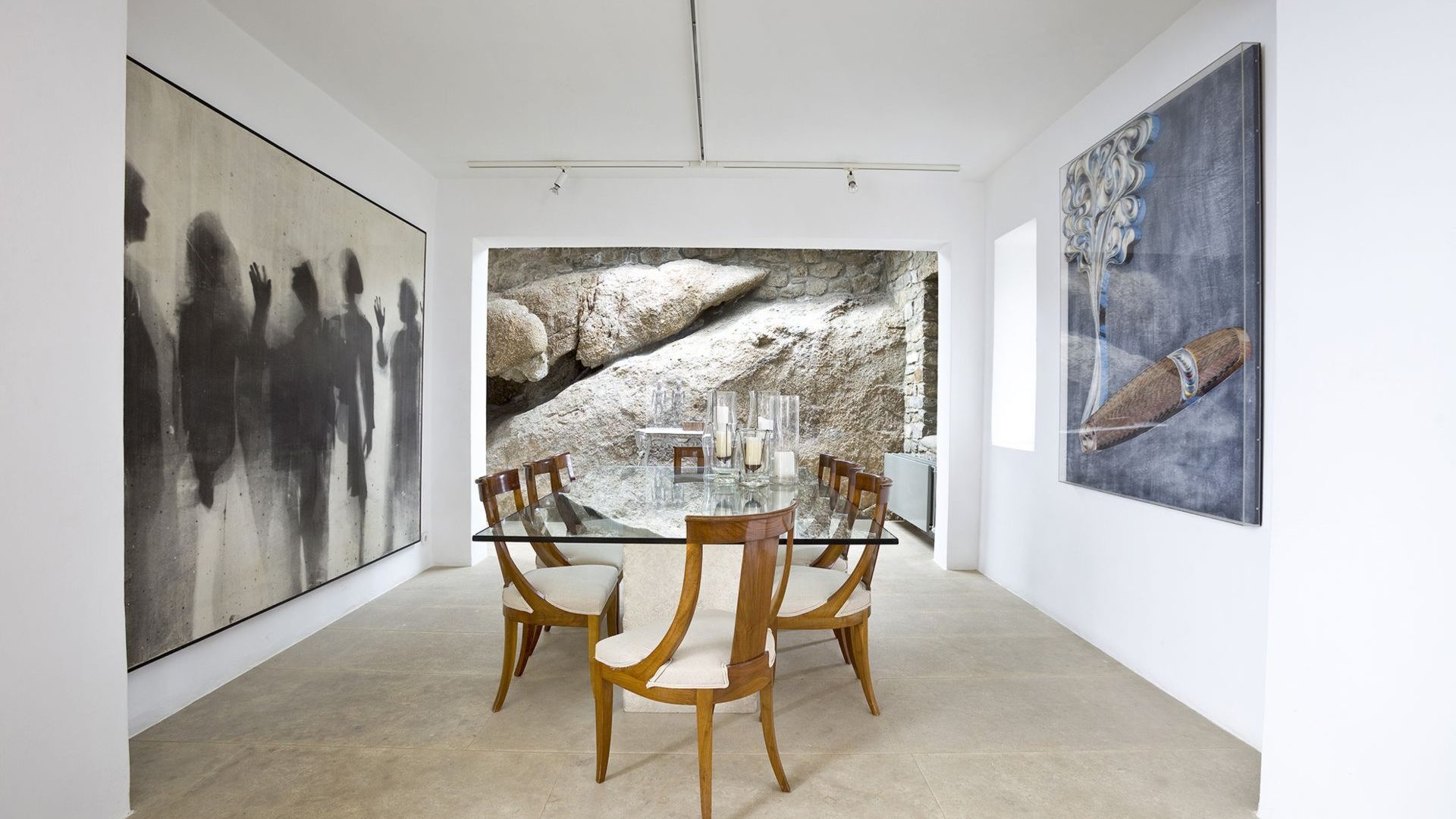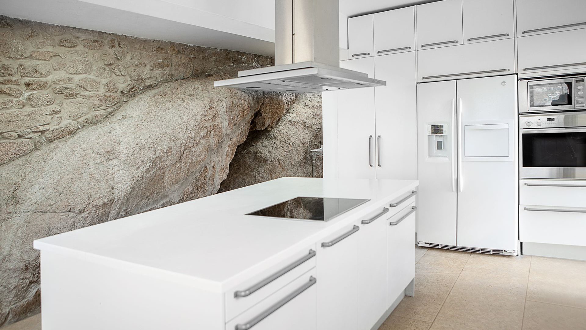 The property has a beautiful contemporary décor with an impressive collection of artworks. Big rocks of the existing natural environment blend in with the all-white modern kitchen area and the formal dining area. Big French style doors open directly to the outdoor dining area and the luxurious front pool terrace. The bedrooms are situated in two levels of the property. The master bedroom also has a unique cave-like shower bathroom. All bedrooms have access to the pool terrace and have magical extensive sea views both indoors and outdoors.