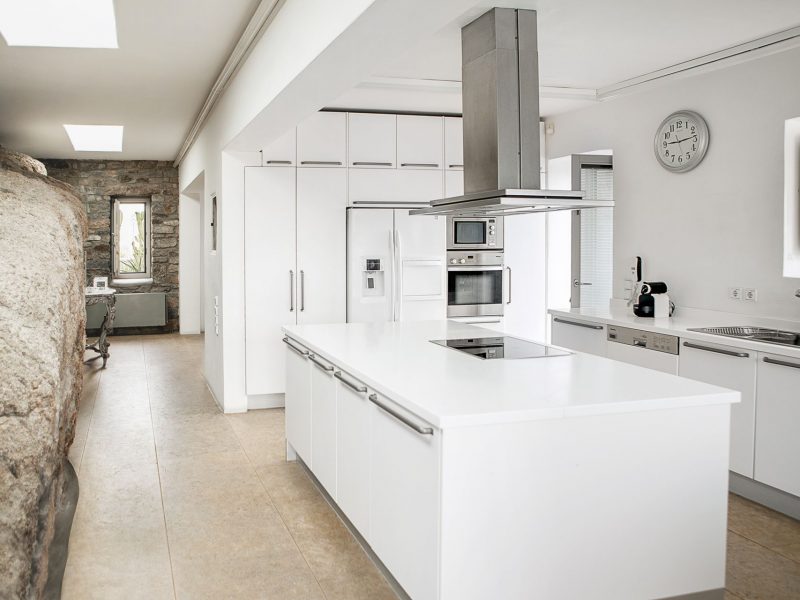 The property has a beautiful contemporary décor with an impressive collection of artworks. Big rocks of the existing natural environment blend in with the all-white modern kitchen area and the formal dining area. Big French style doors open directly to the outdoor dining area and the luxurious front pool terrace. The bedrooms are situated in two levels of the property. The master bedroom also has a unique cave-like shower bathroom. All bedrooms have access to the pool terrace and have magical extensive sea views both indoors and outdoors.