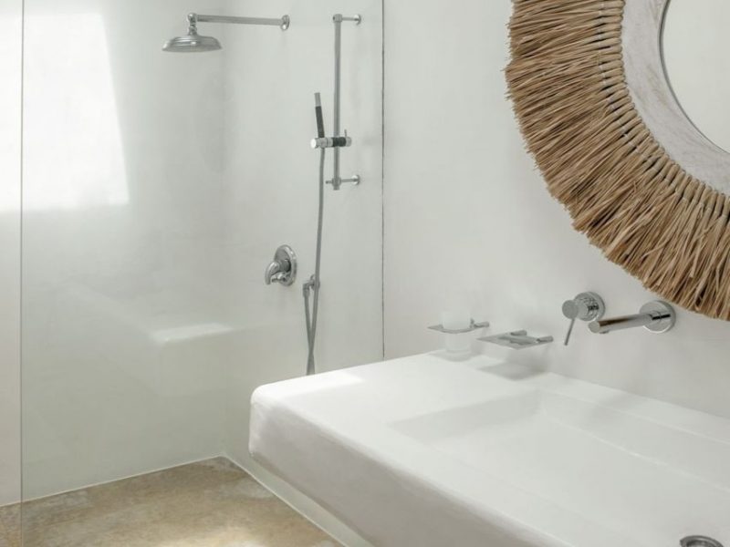 1 Master Bedroom with double bed, A/C, en-suite open bathroom with shower surrounded with natural rocks, direct access to terrace and pool area via French doors, sea view.