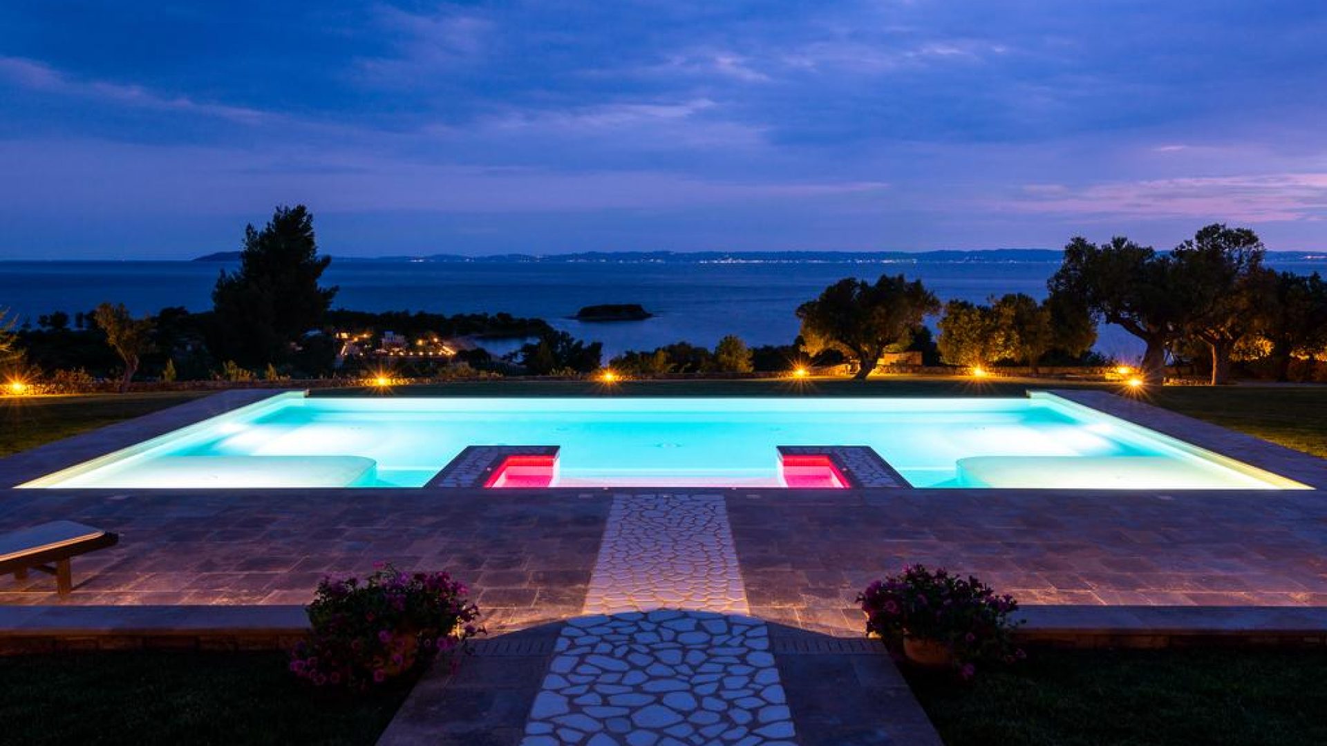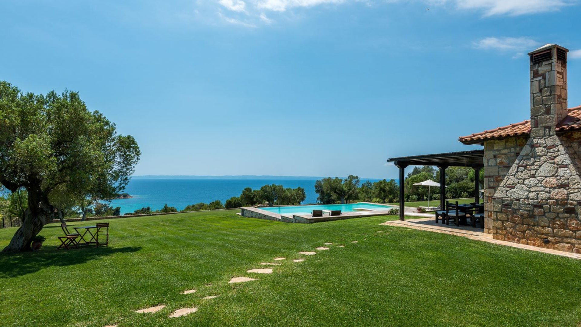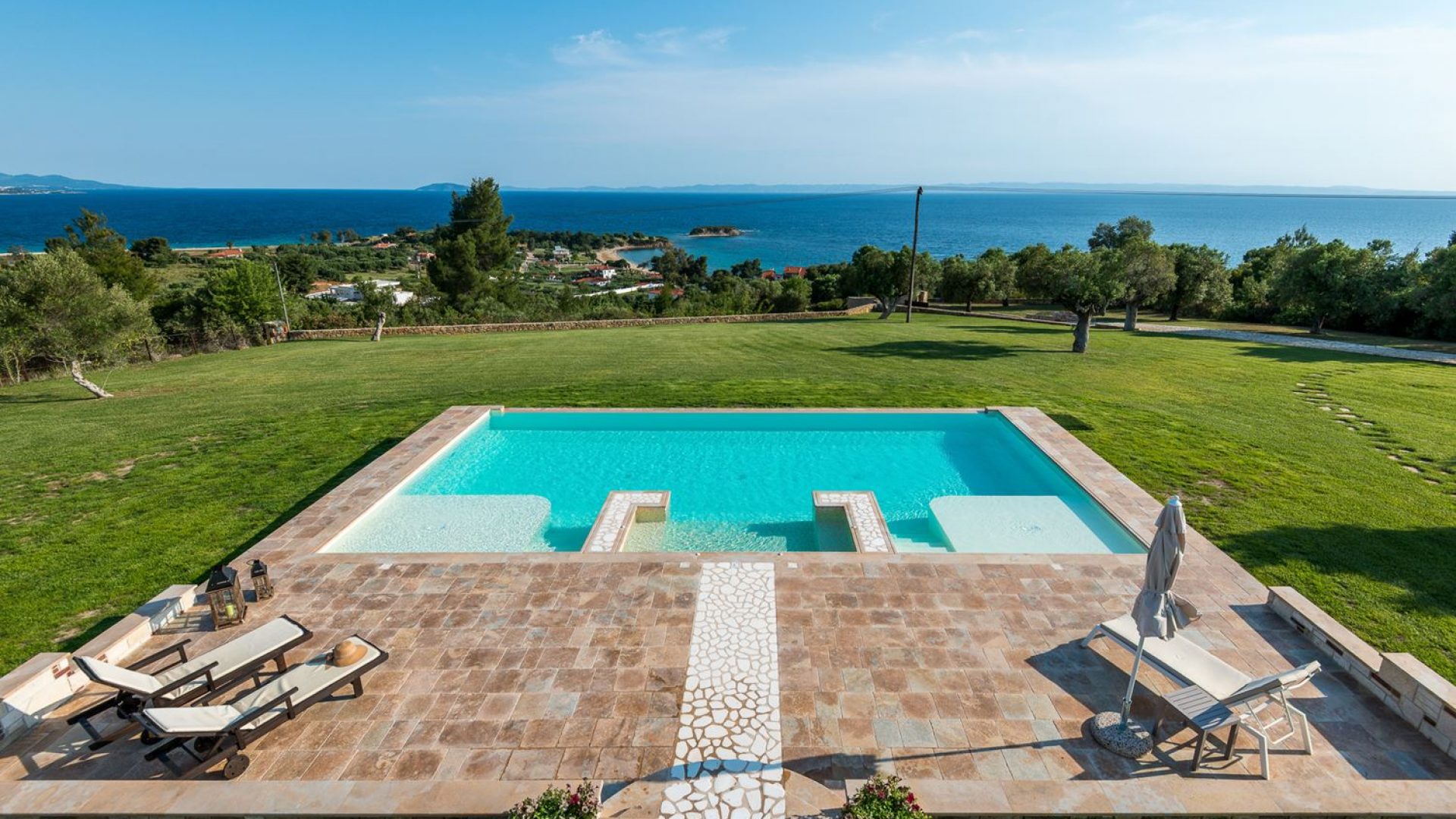 Villa Sithonia is a luxury villa rental with 4 bedrooms and private pool. Set in Nikiti Chalkidiki, Sithonia villa, offer you all you would expect from a Villa Holiday, tasteful comfort, relaxing outdoors and endless sea views. Set amongst 7.000 sq.m. of wonderful private grounds and lawned gardens, villa boasts fantastic views overlooking Kastri Beach, found just a 400 metres walk away.