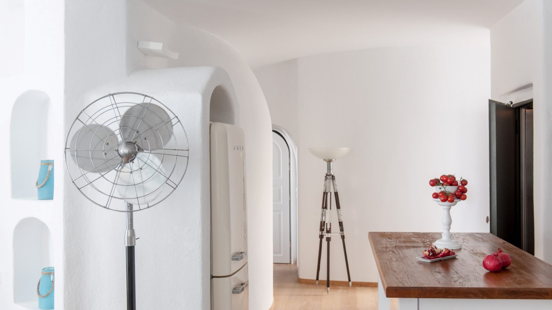 Only a minute drive away and so close to all the restaurants and shops; it’s equally as distant as needed to ensure absolute privacy from the hustle of tourists from the cruise ships that walk around in Oia. It is also the only villa upon the caldera that has no steps to go up and down in order to reach, like other accommodations do, since the guests can reach with their car the private parking space in front of the very entrance of the villa.