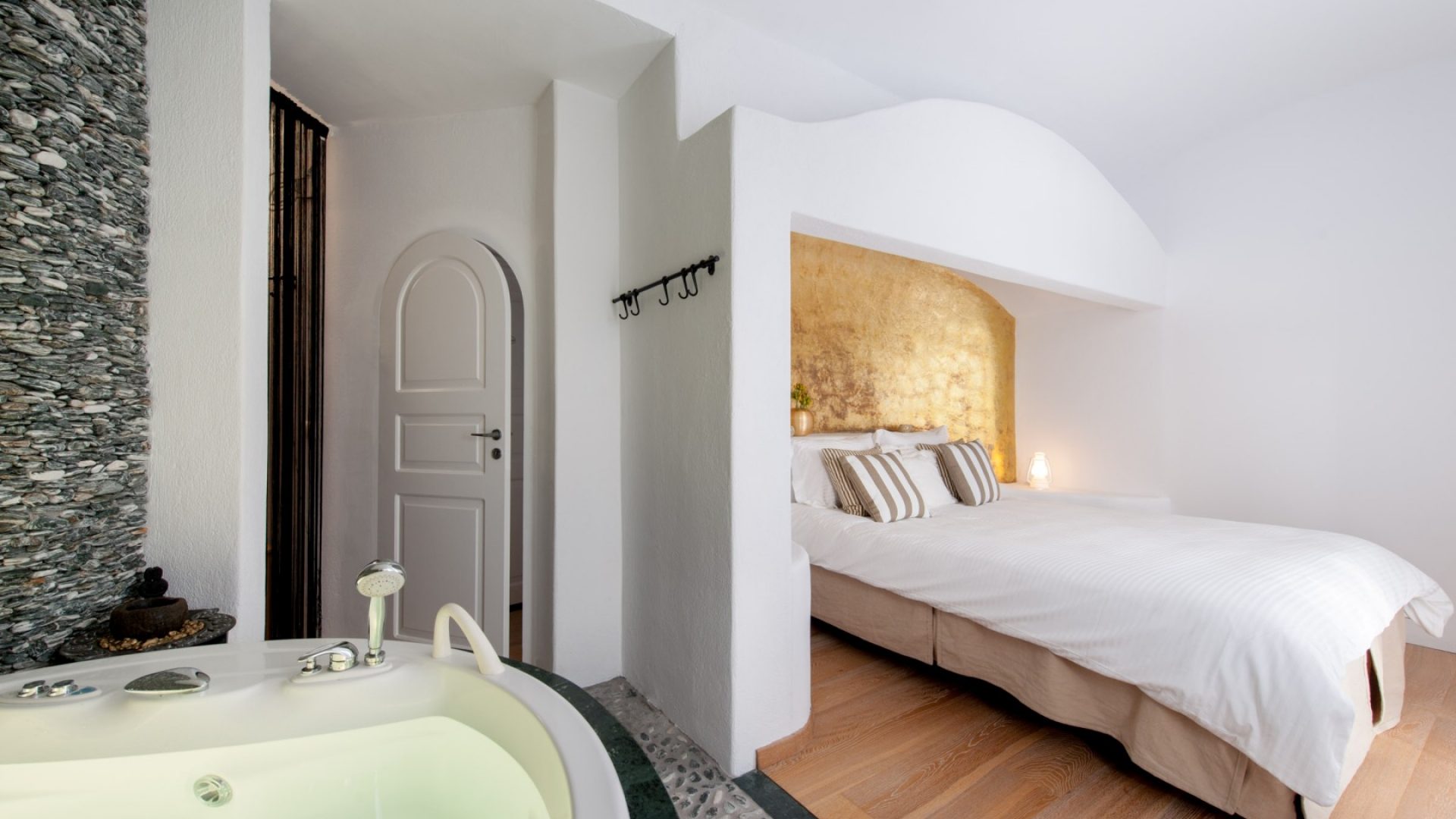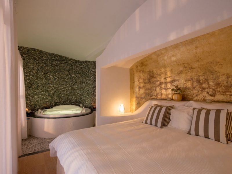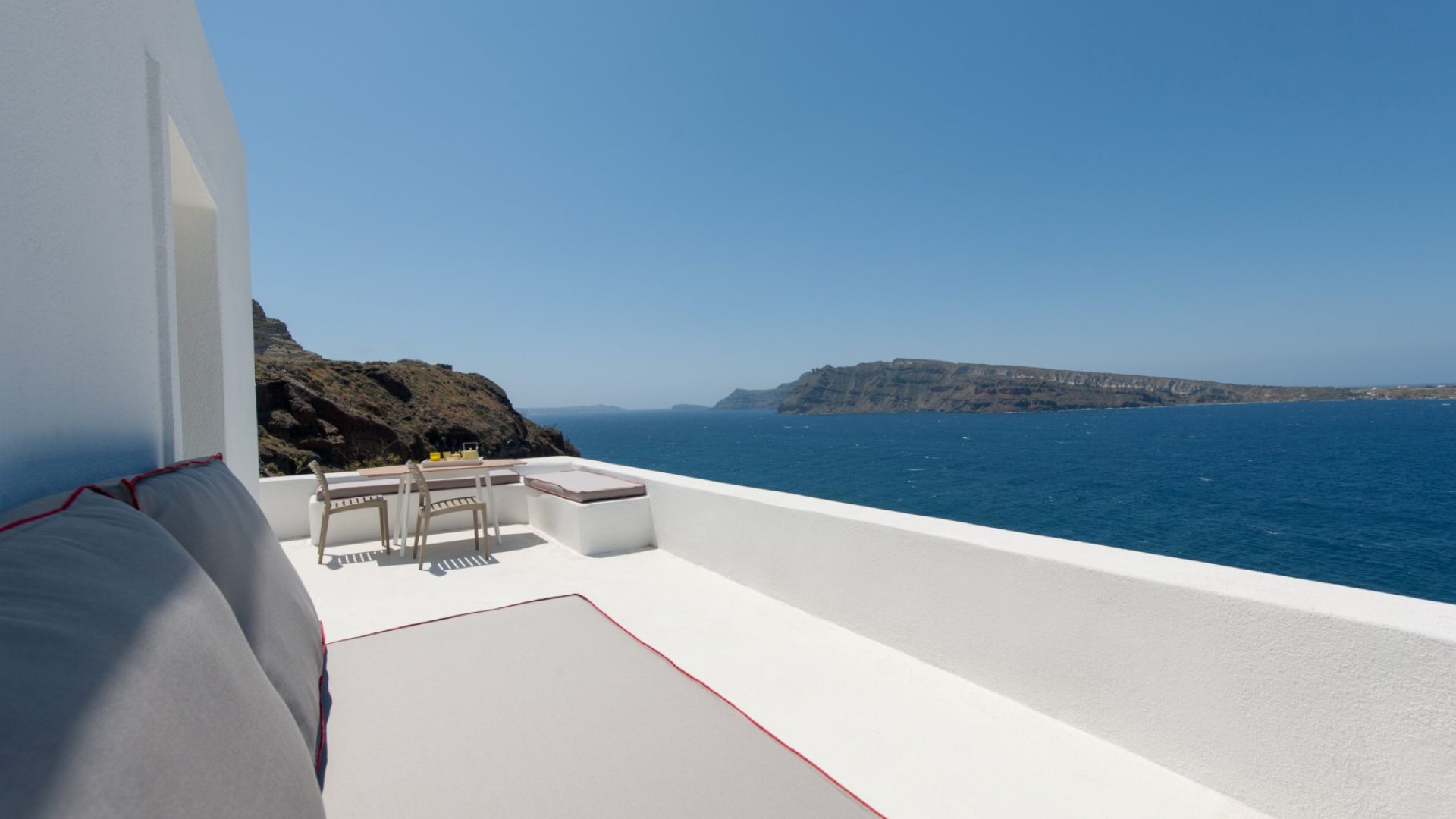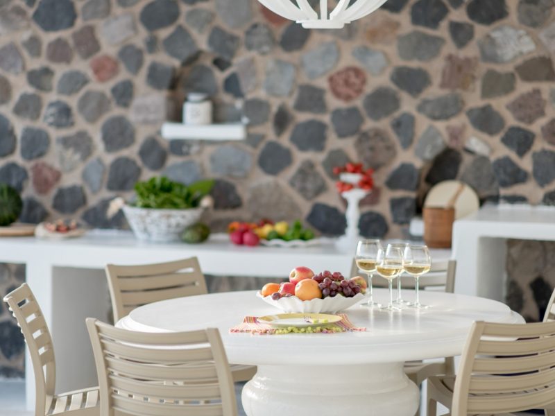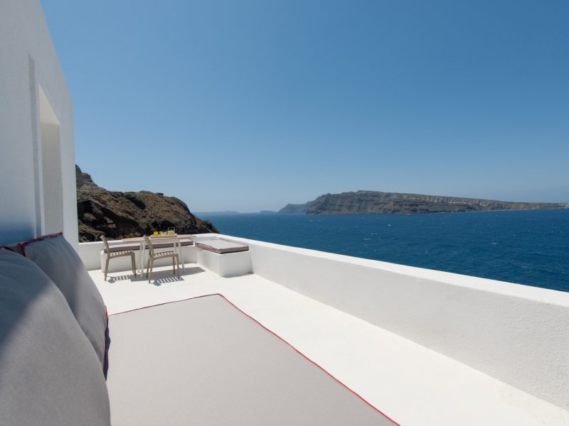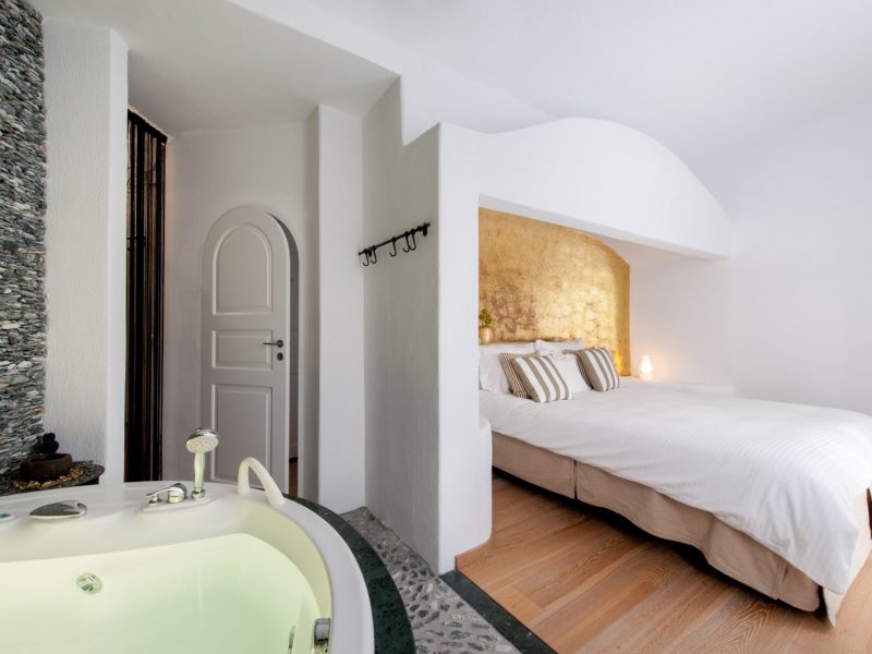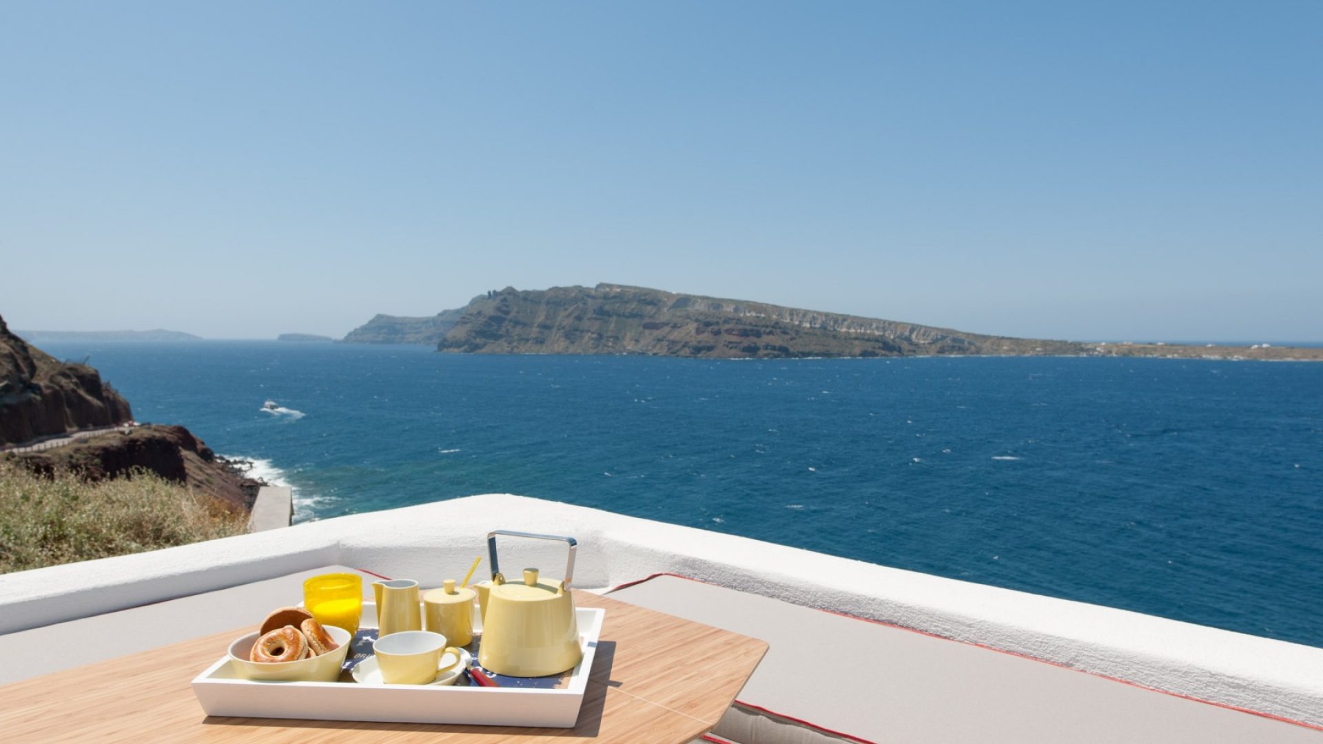 Moreover, guests can be in the picturesque” Ammoudi” port in less than a minute and enjoy their walk, grab a bite in one of the famous fish taverns by the water with the stunning views of the cliffs hanging on top. Or if they wish to take a swim the can always walk one minute to “Katharos” beach known for its wild beauty and the sunset views.