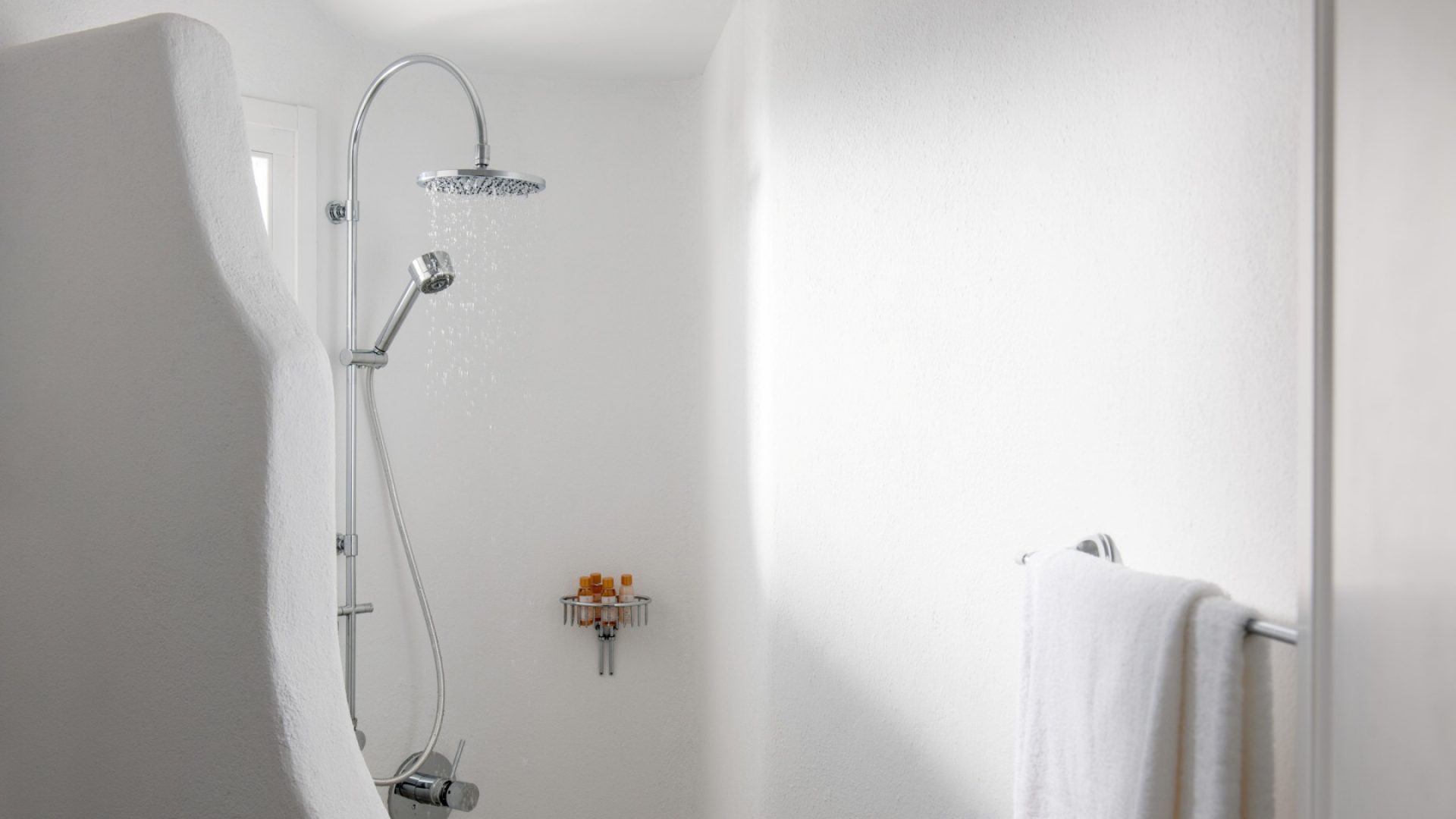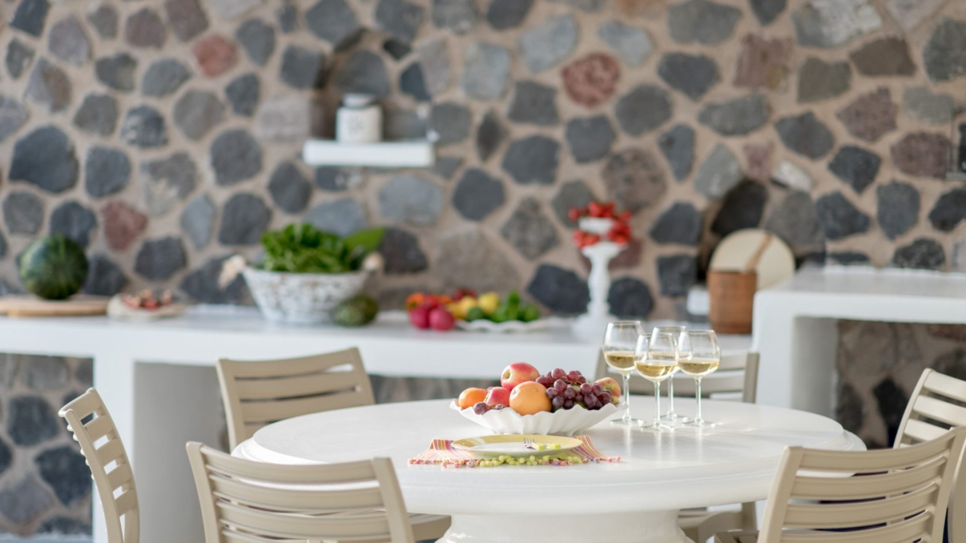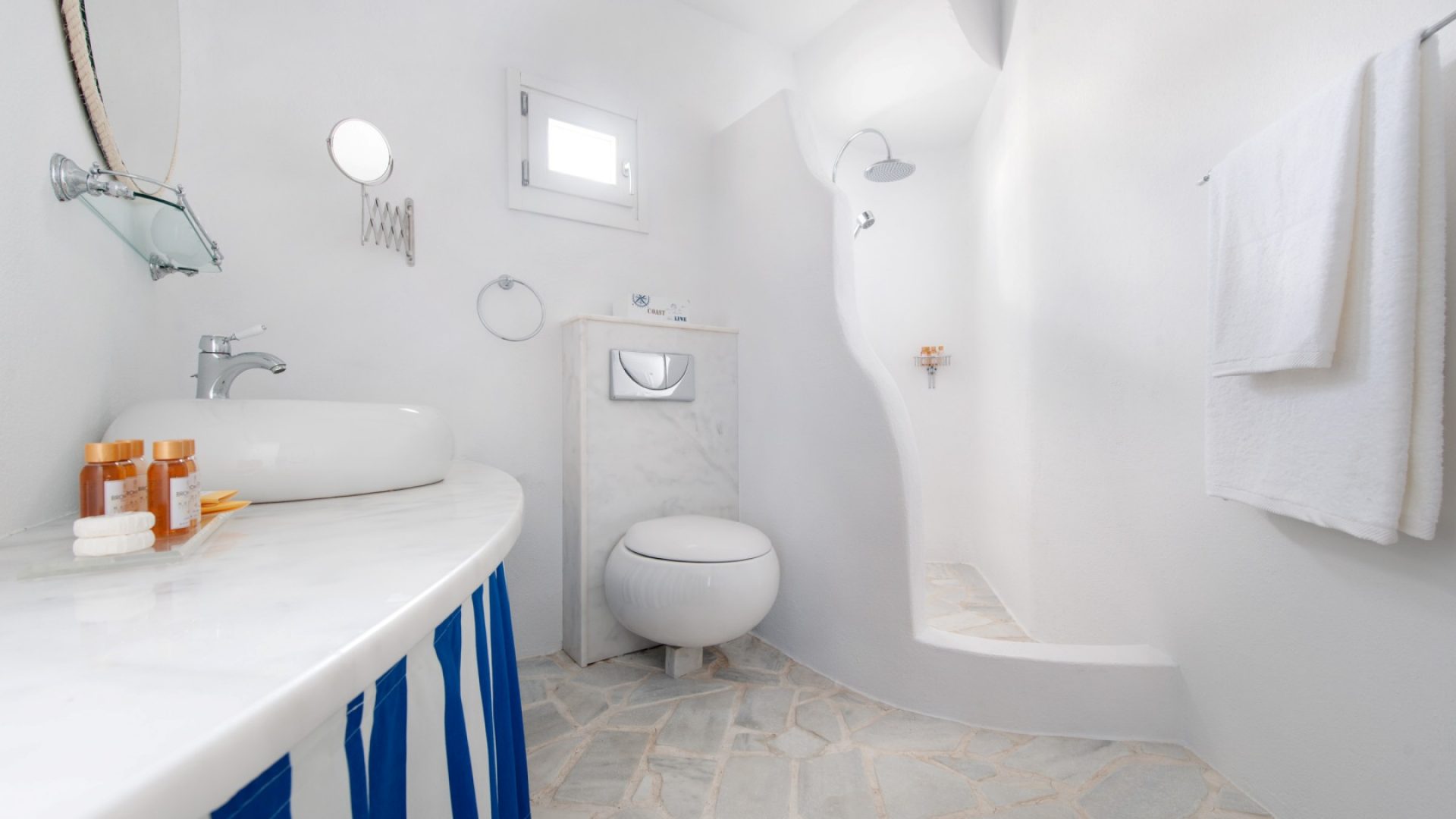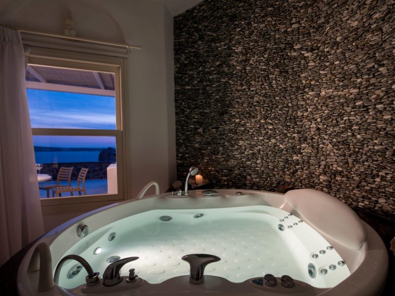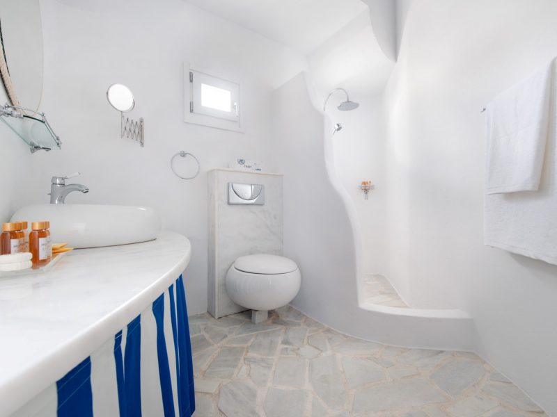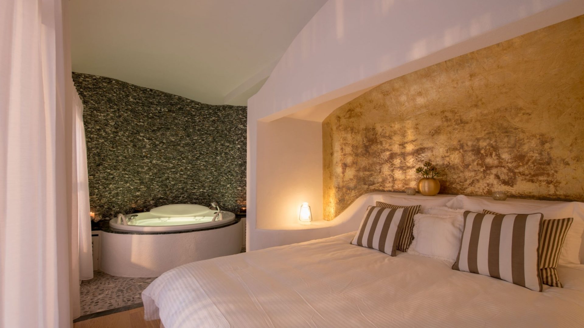 Moreover, guests can be in the picturesque” Ammoudi” port in less than a minute and enjoy their walk, grab a bite in one of the famous fish taverns by the water with the stunning views of the cliffs hanging on top. Or if they wish to take a swim the can always walk one minute to “Katharos” beach known for its wild beauty and the sunset views.