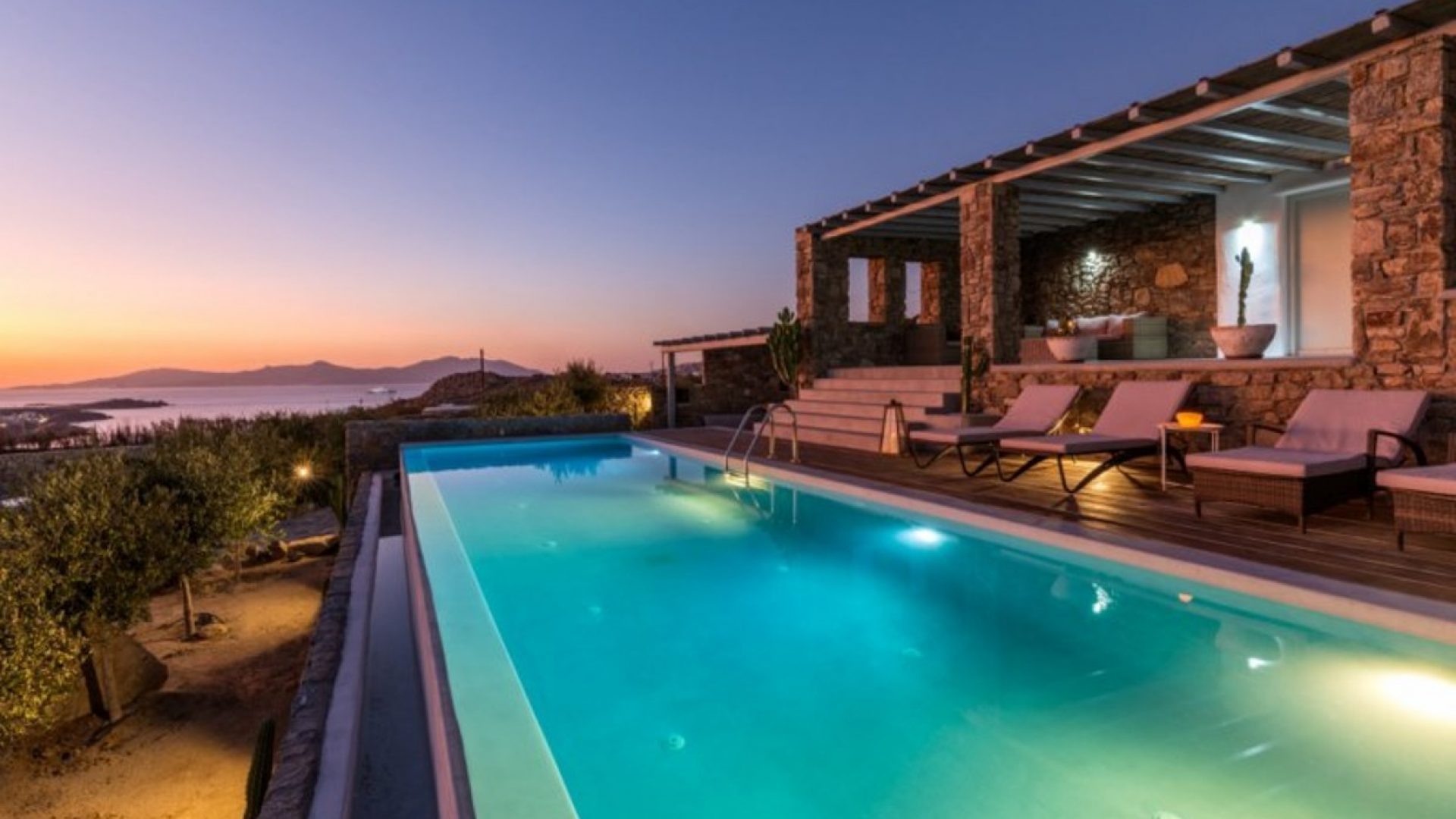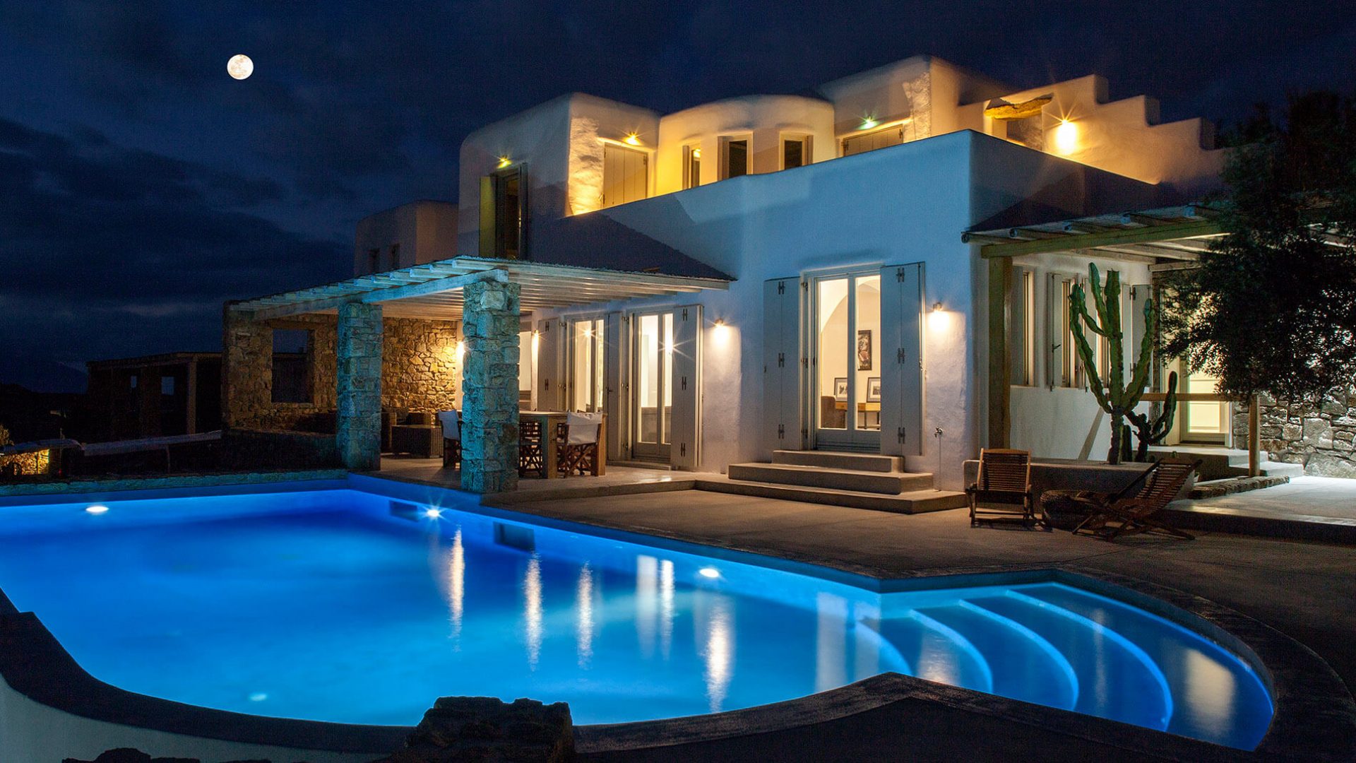 The modern decor combines with traditional architecture for a luxurious Greek holiday. Swim and relax during the day, party and enjoy the lights in the evening. Four spacious bedrooms accommodate up to 10 people in commodious style.