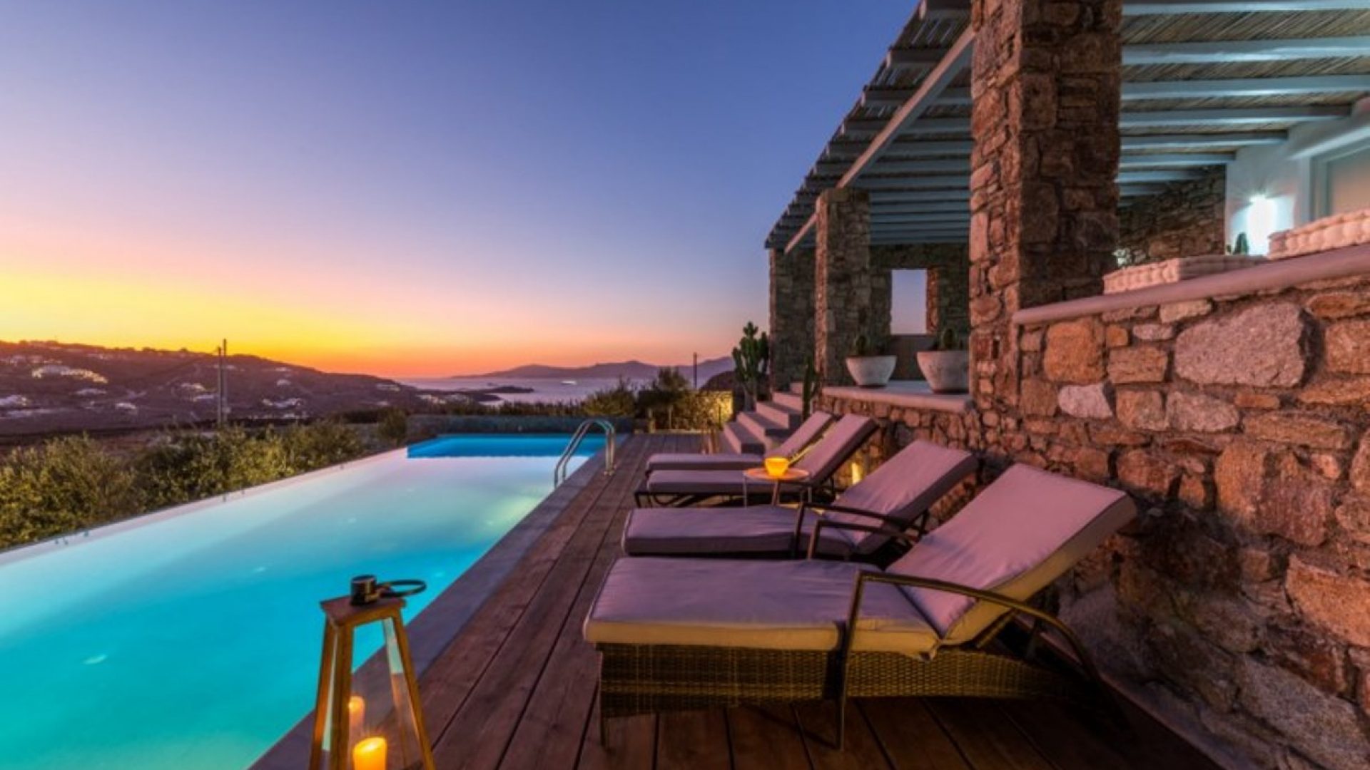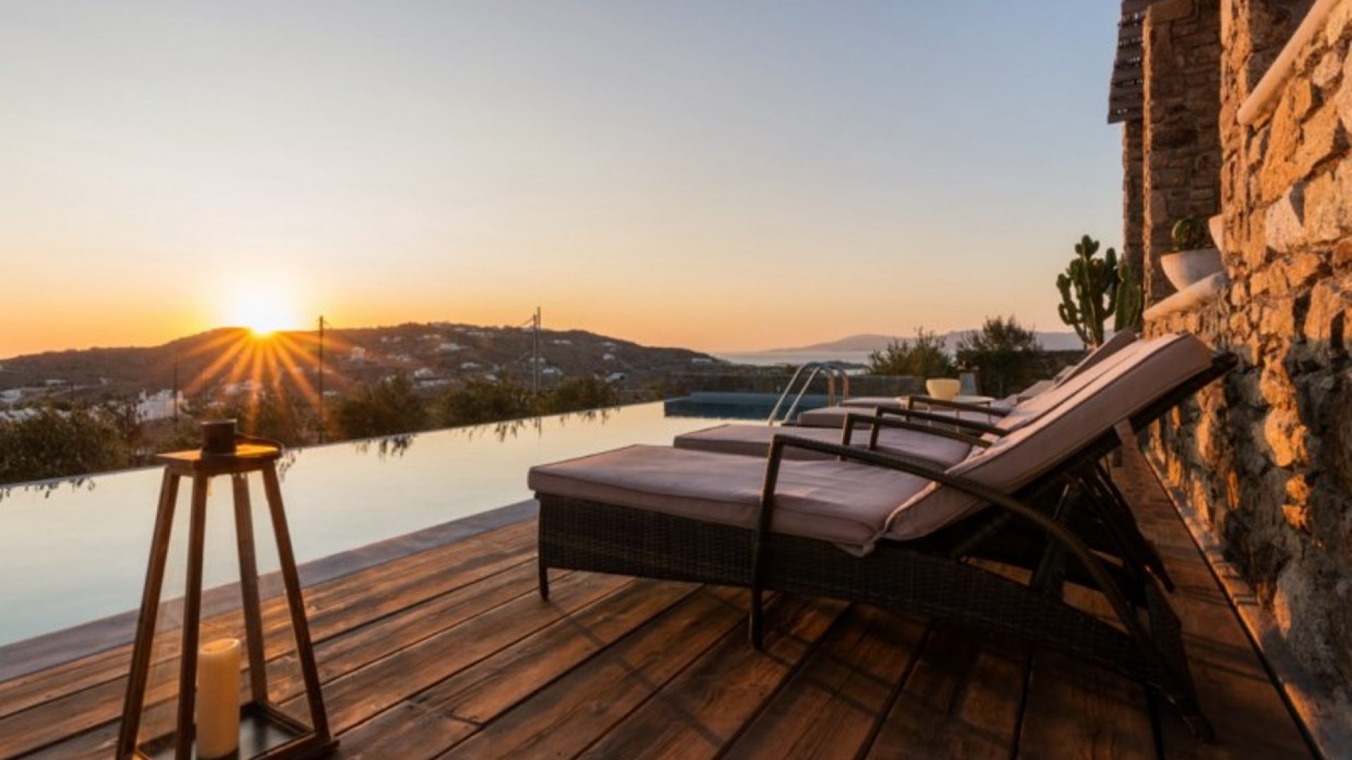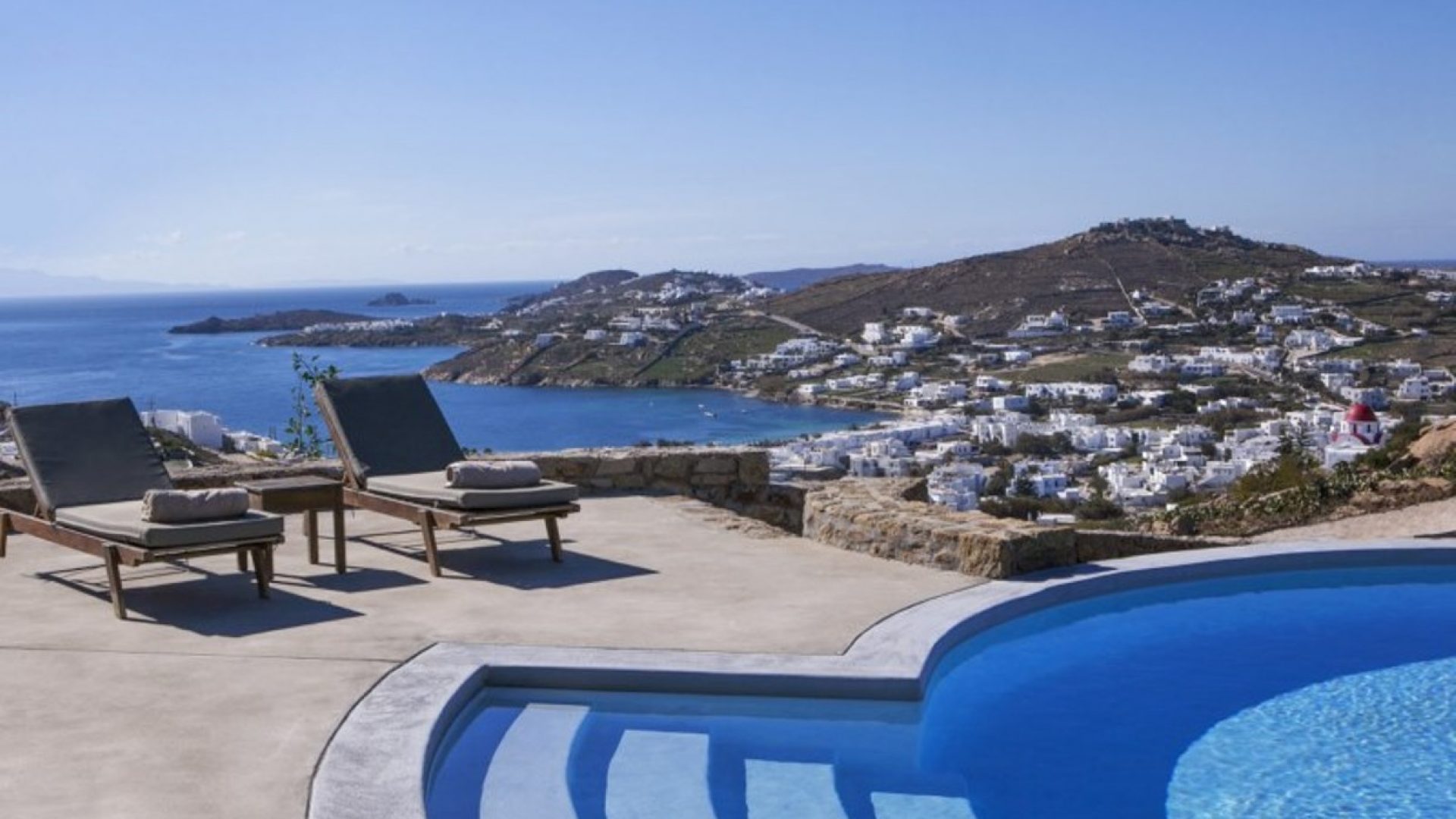 Perched on the hilltop Sunset Jewel Resort command sweeping views of Mykonos and the blue Aegean.