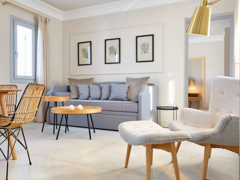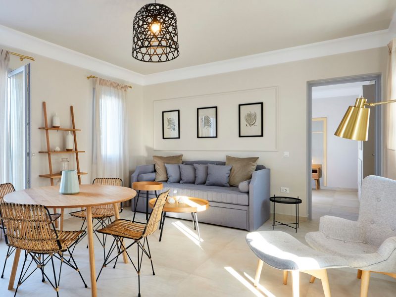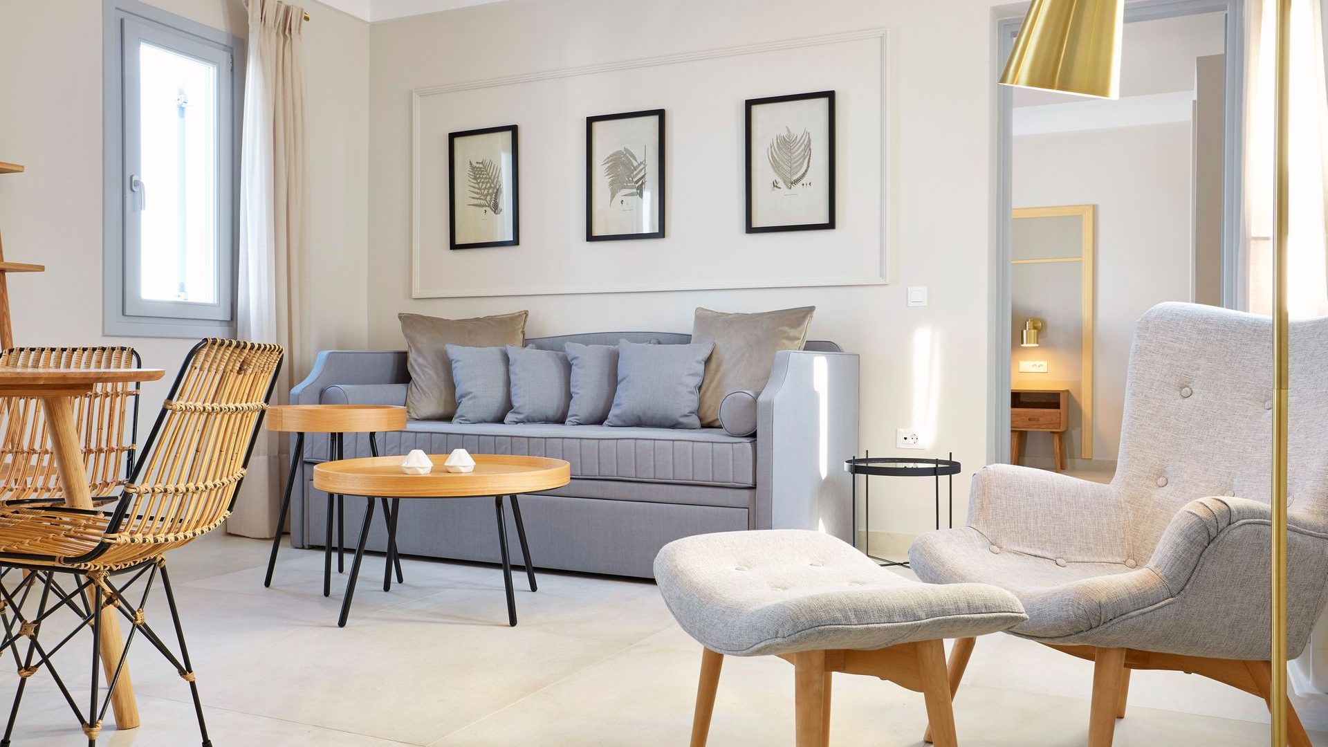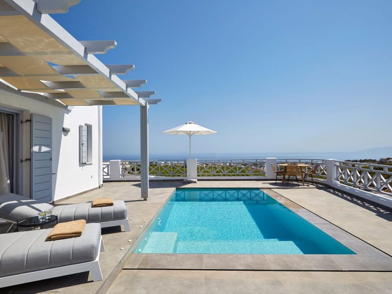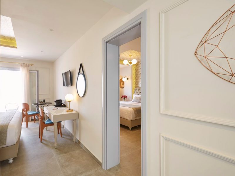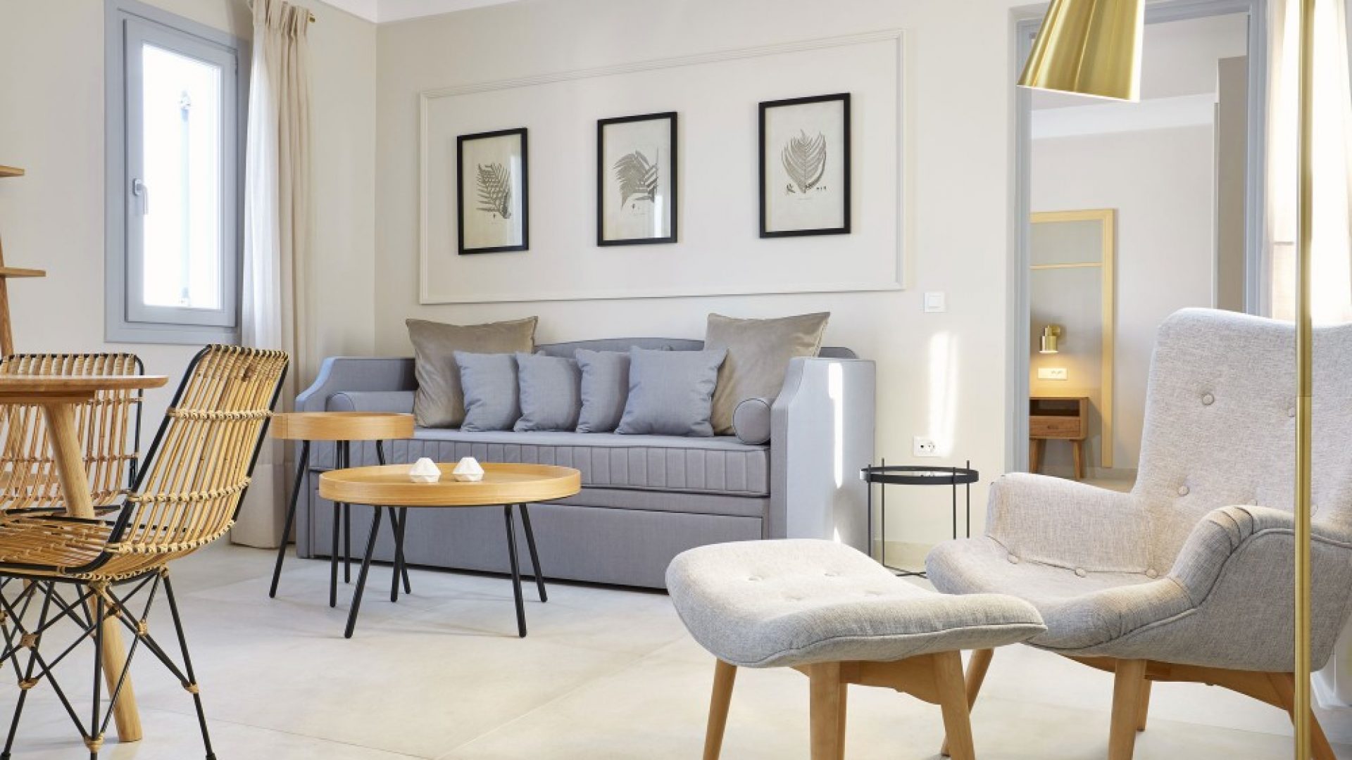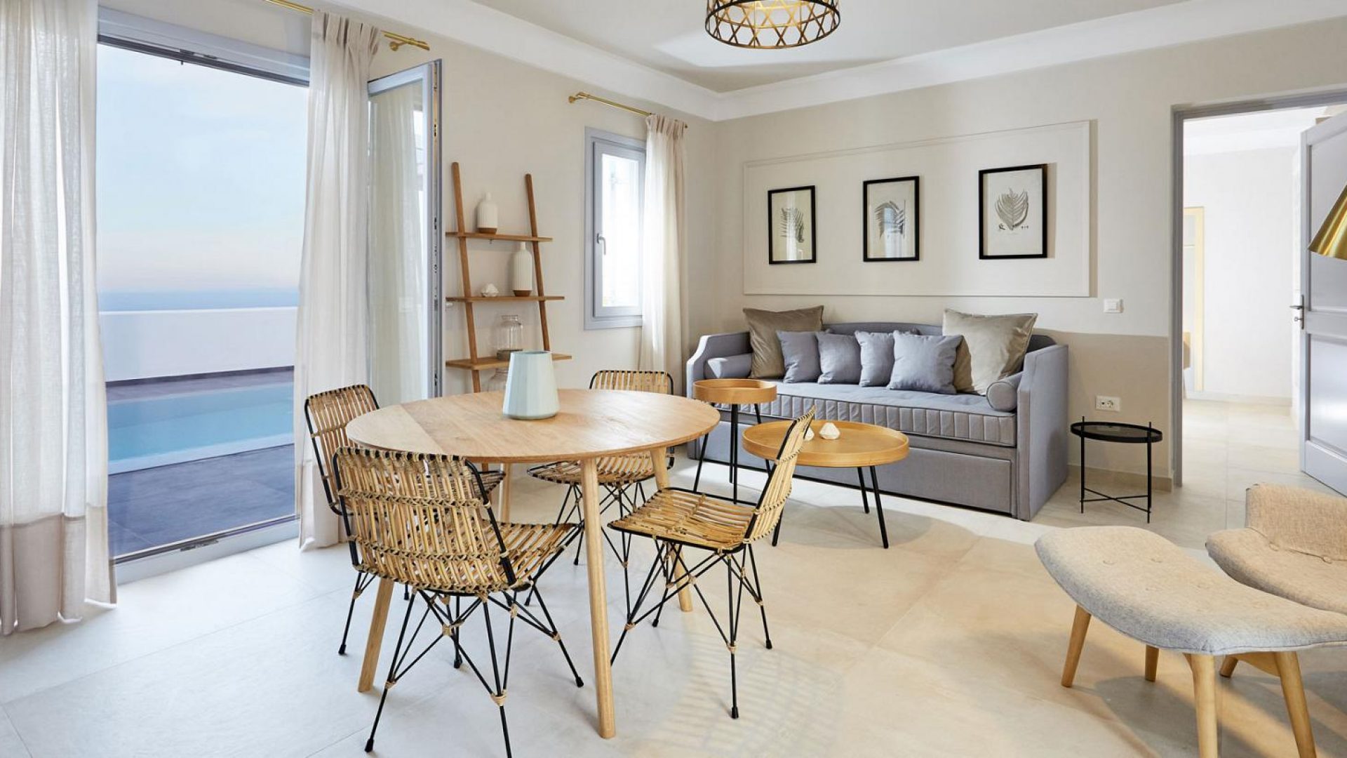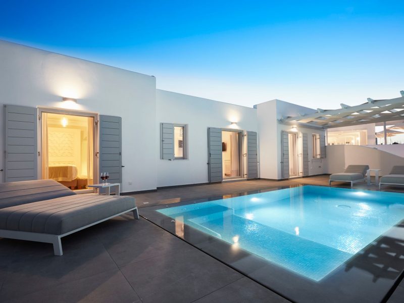 The epitome of luxury living, the Deluxe Villa Aria incorporates everything you have dreamt of regarding your stay. In the vastness of its 100 square meters, Deluxe Villa Aria comes with two Master Bedrooms (each with Private Bathroom with Jacuzzi) and 1 Bathroom with Shower at the Lounge Room. A secluded sanctuary of lavishness and ingenuous extravaganza where you can relax and surrender to the everlasting Greek sun’s bliss!