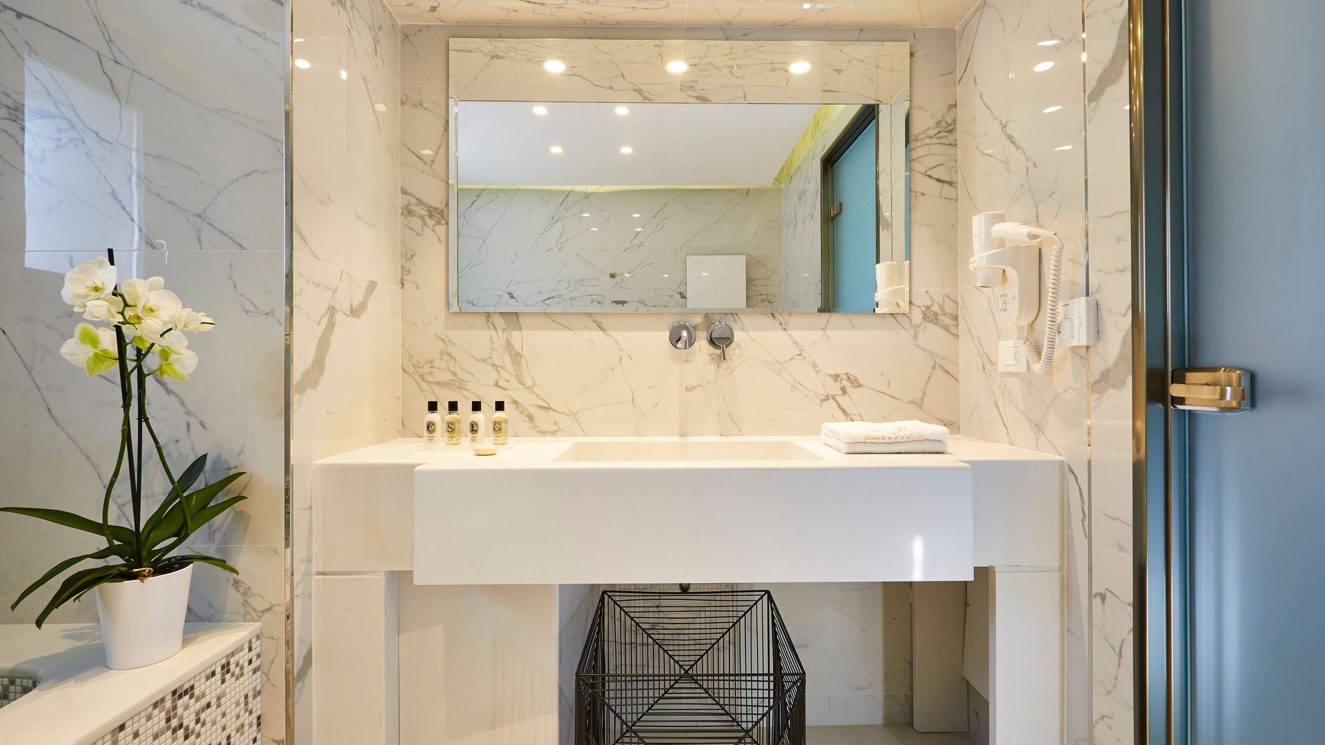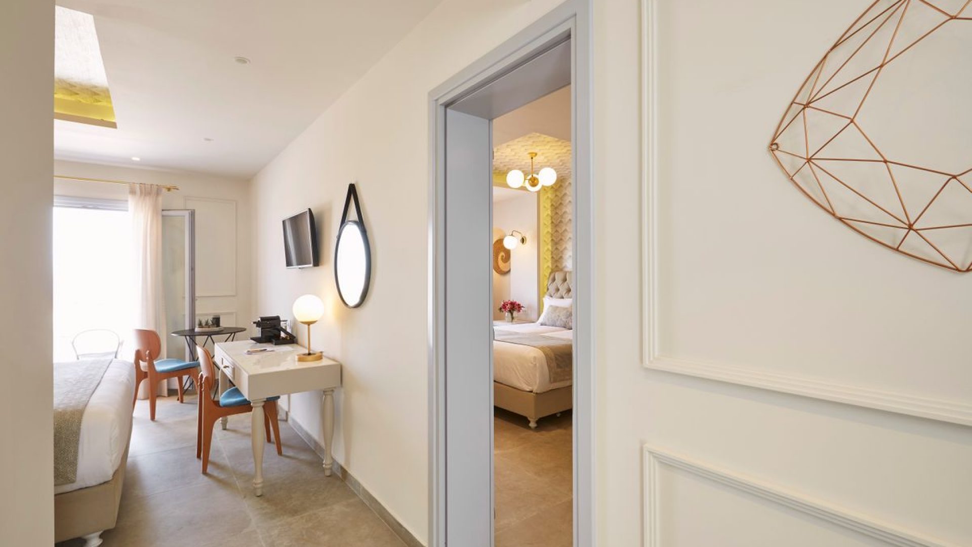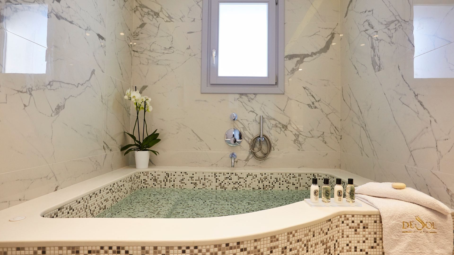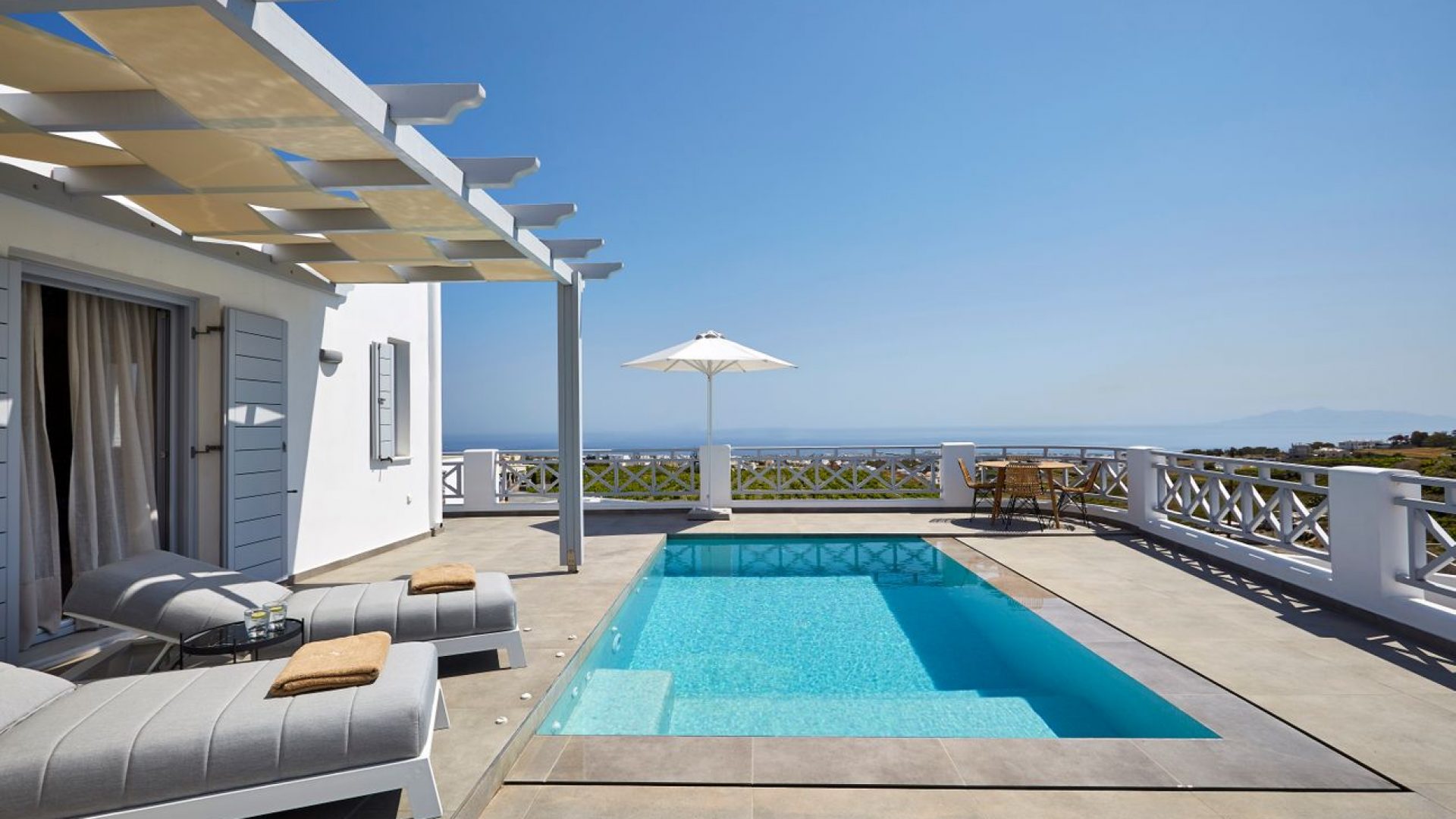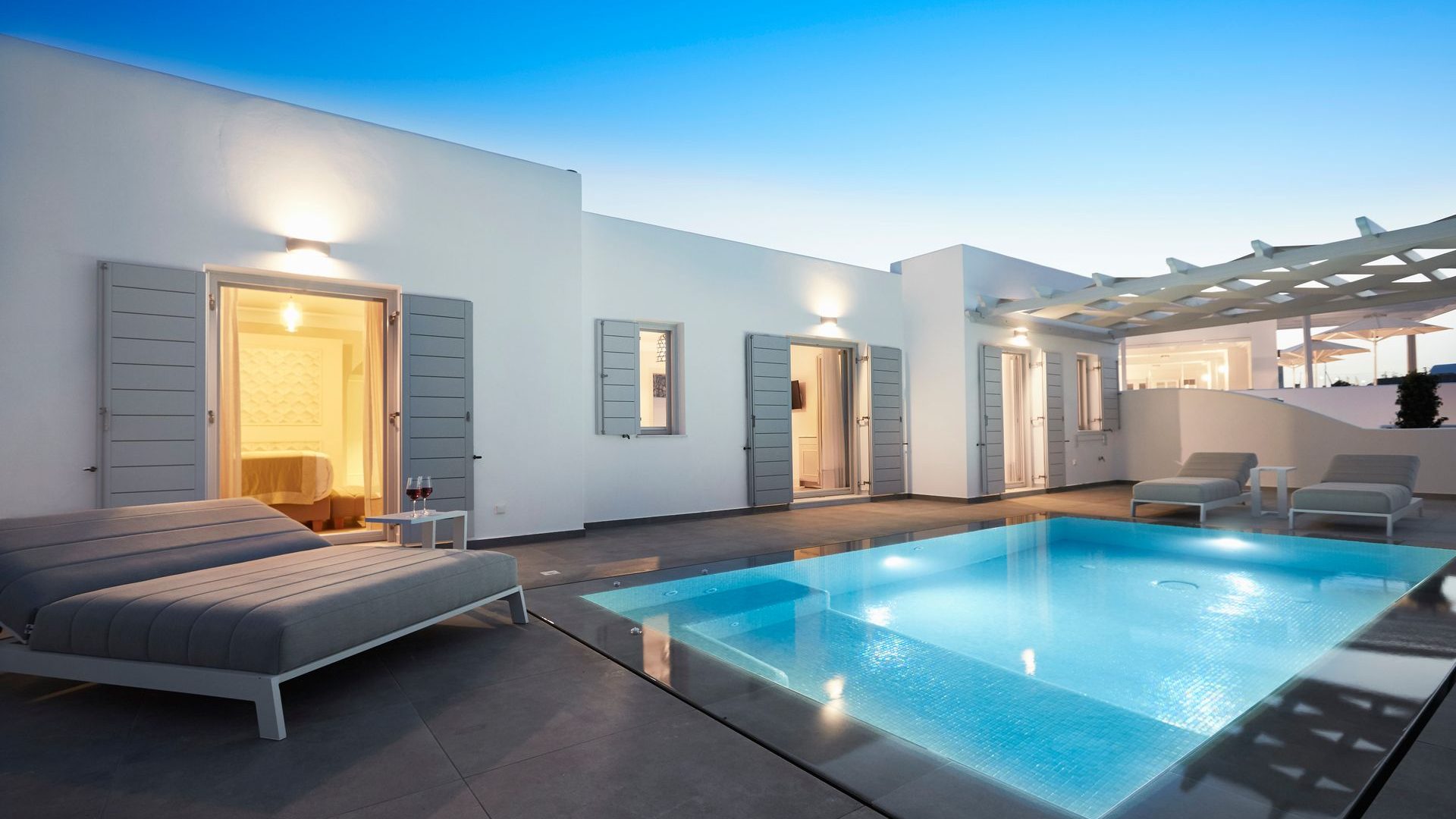 The epitome of luxury living, the Deluxe Villa Aria incorporates everything you have dreamt of regarding your stay. In the vastness of its 100 square meters, Deluxe Villa Aria comes with two Master Bedrooms (each with Private Bathroom with Jacuzzi) and 1 Bathroom with Shower at the Lounge Room. A secluded sanctuary of lavishness and ingenuous extravaganza where you can relax and surrender to the everlasting Greek sun’s bliss!