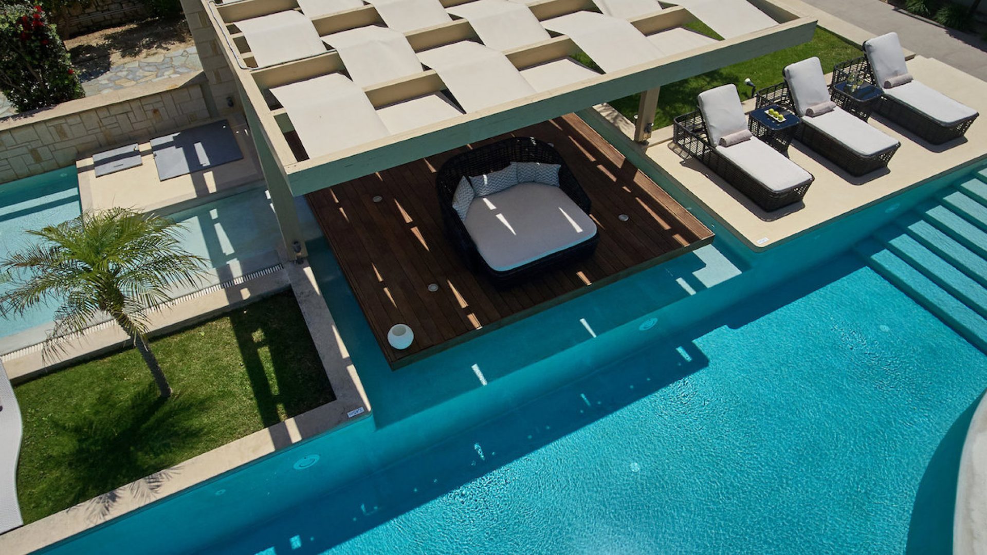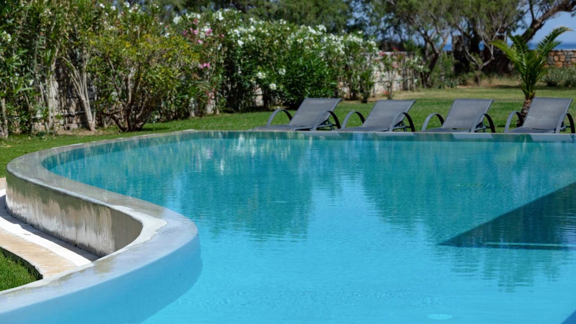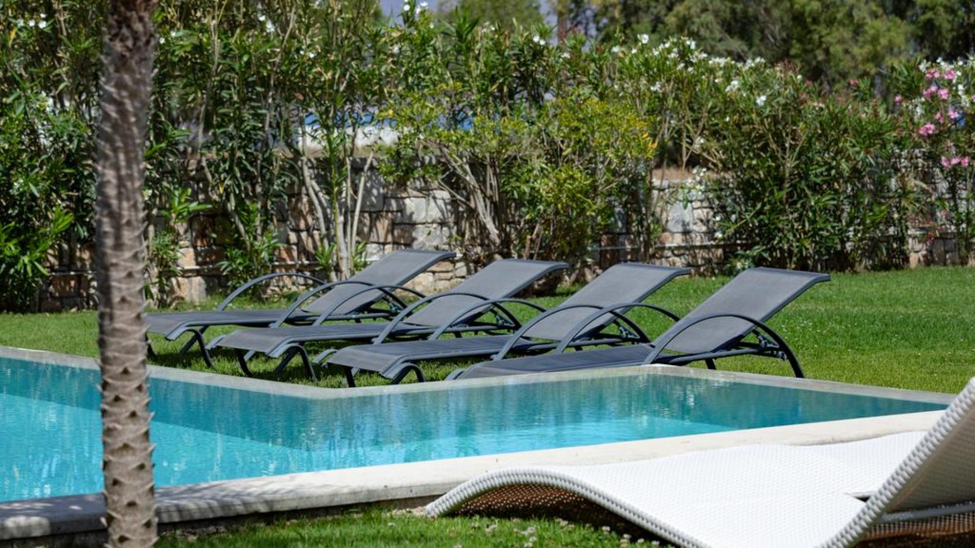 An impressive designed big private pool covering an area of 80 m2 (1,45 m in depth)