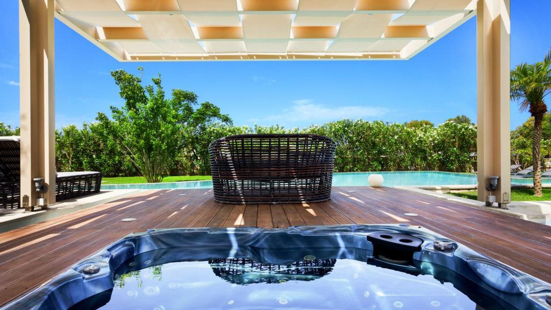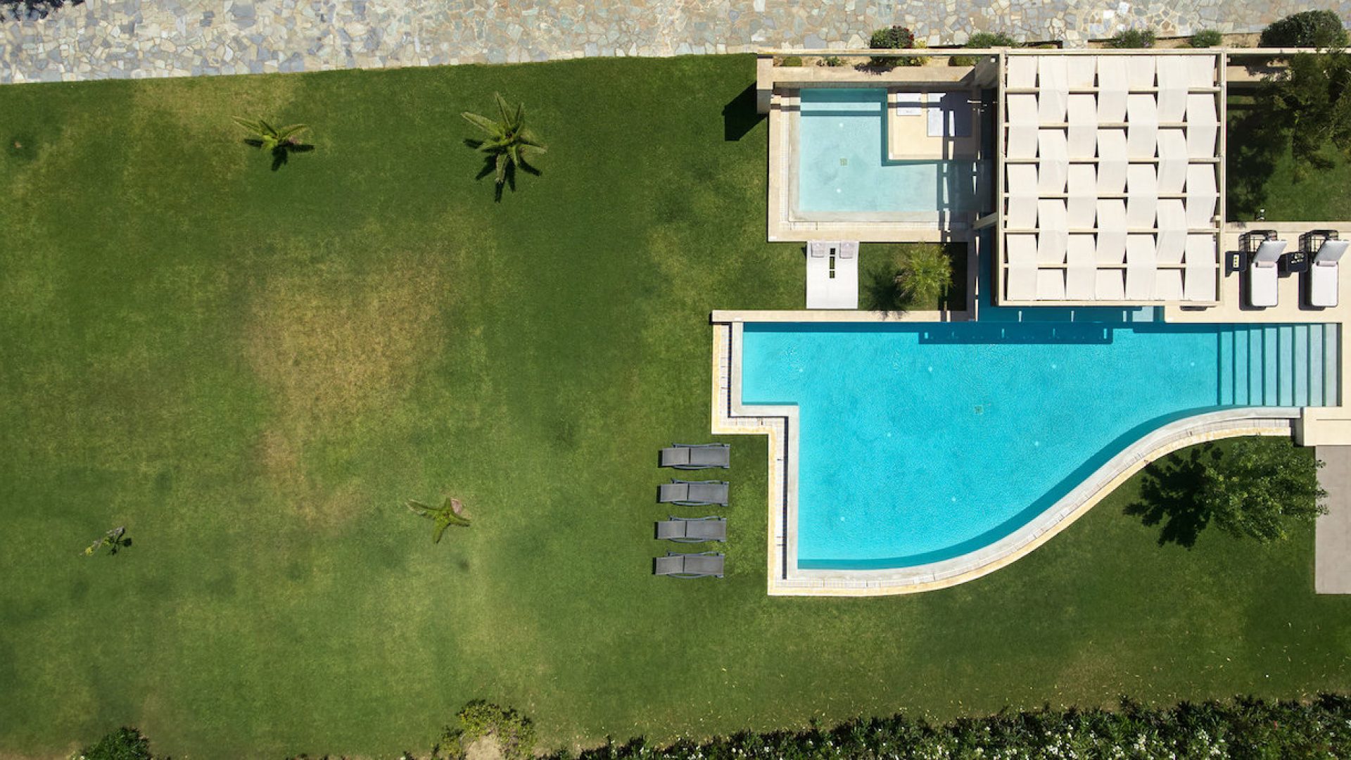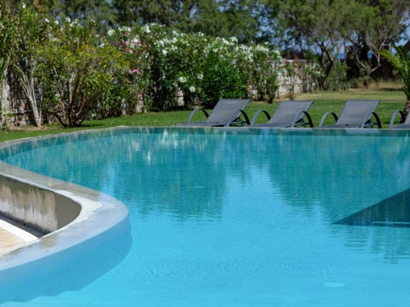An impressive designed big private pool covering an area of 80 m2 (1,45 m in depth)