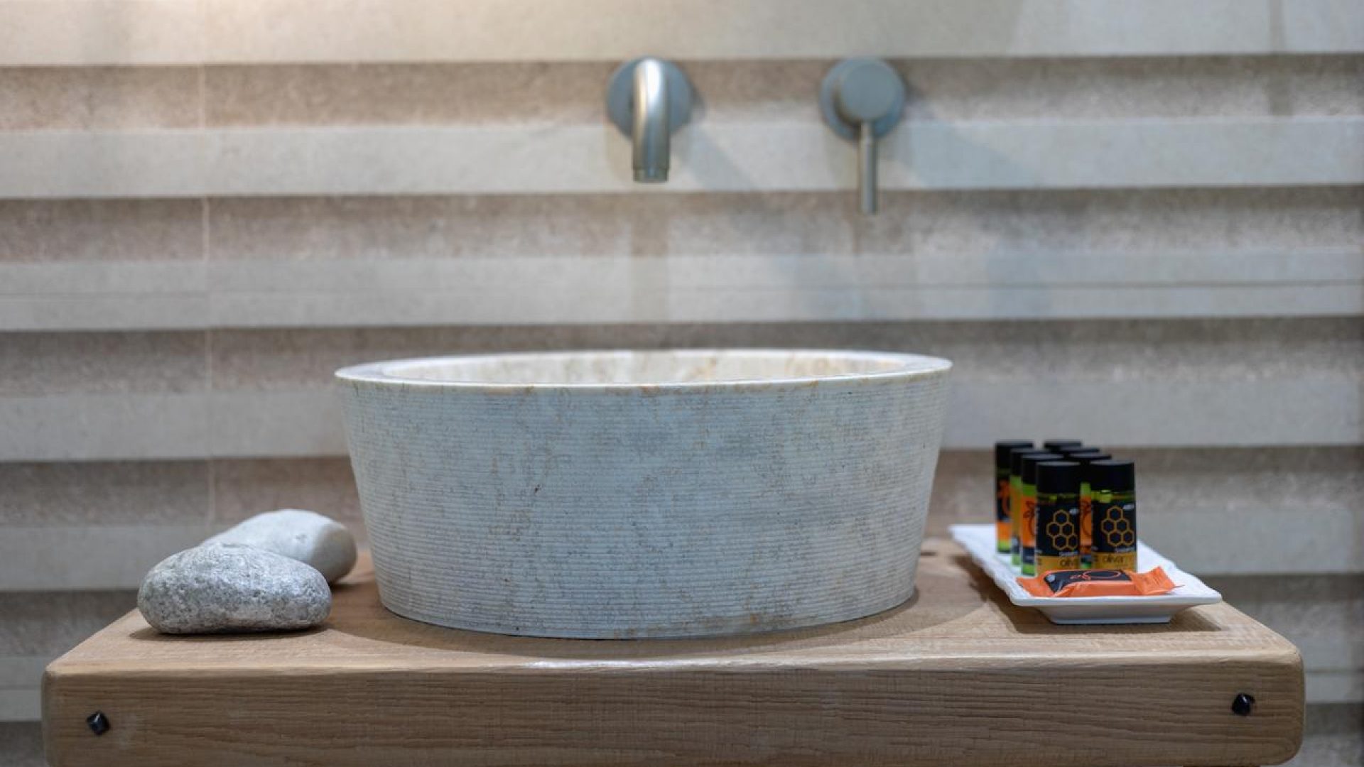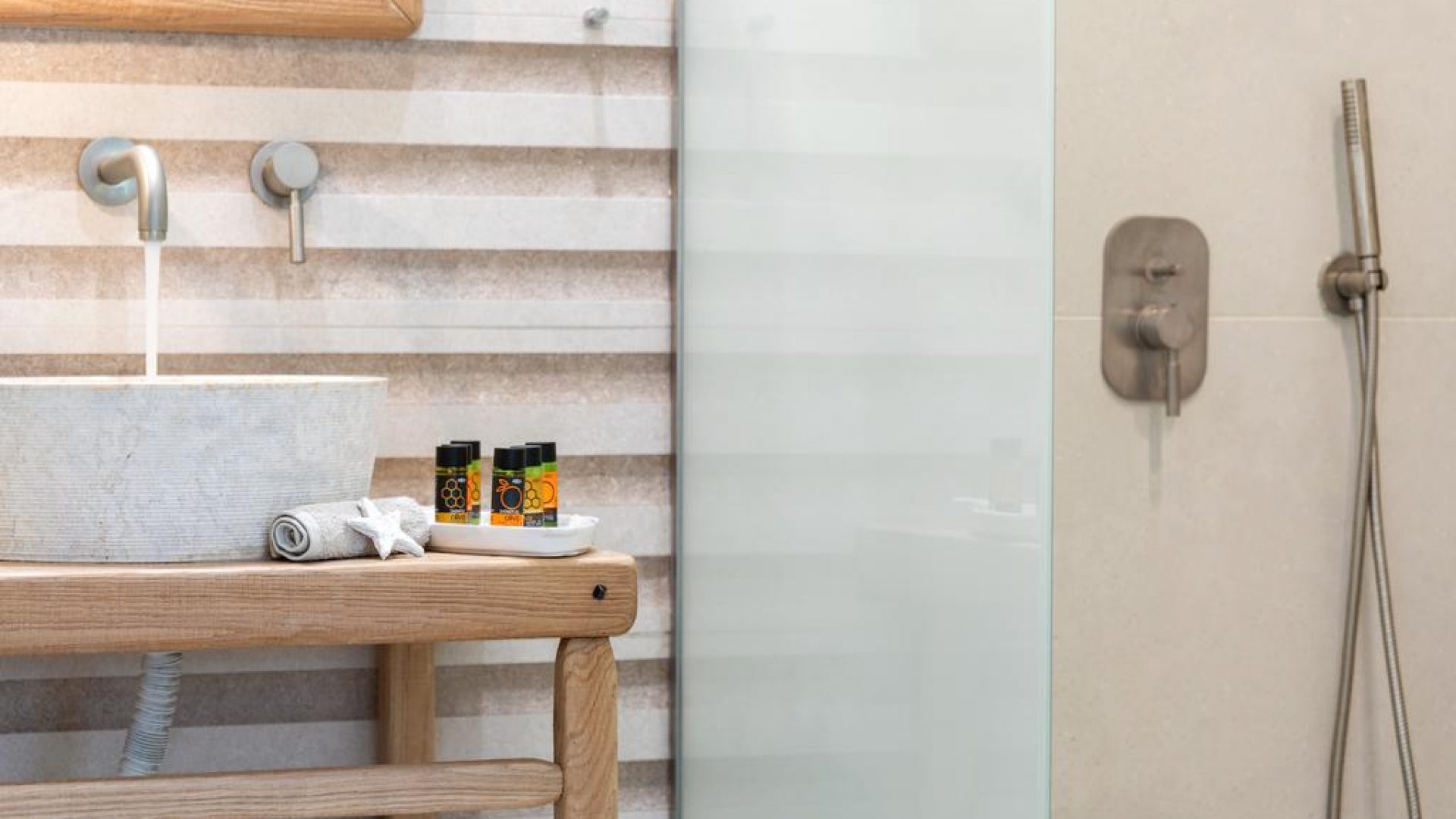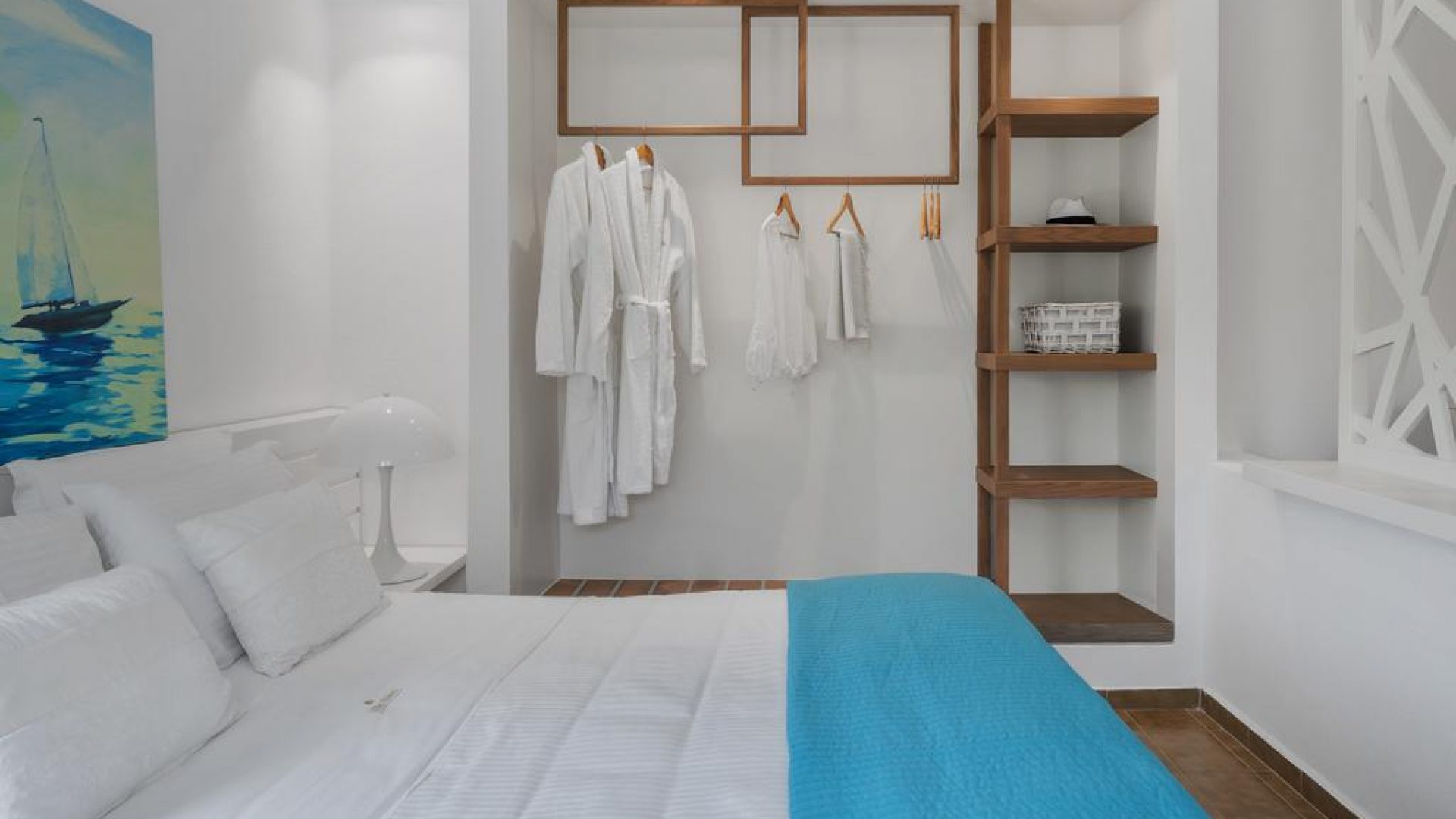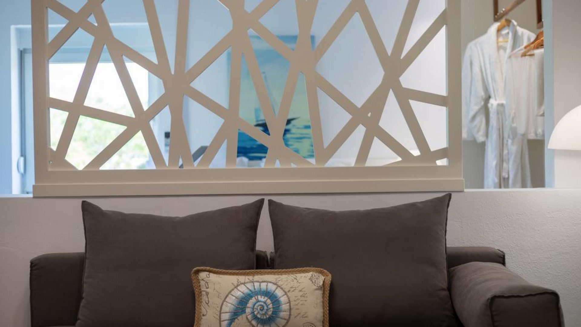 It consists of 2 floors and includes mainly open-air spaces so that you can sense the feeling of fresh air and the sea breeze dominating all over the place. The pale colors, the discreetly decorated style of the interior as well as the modern and elegantly furnished rooms, supplement the general sense of relaxation.