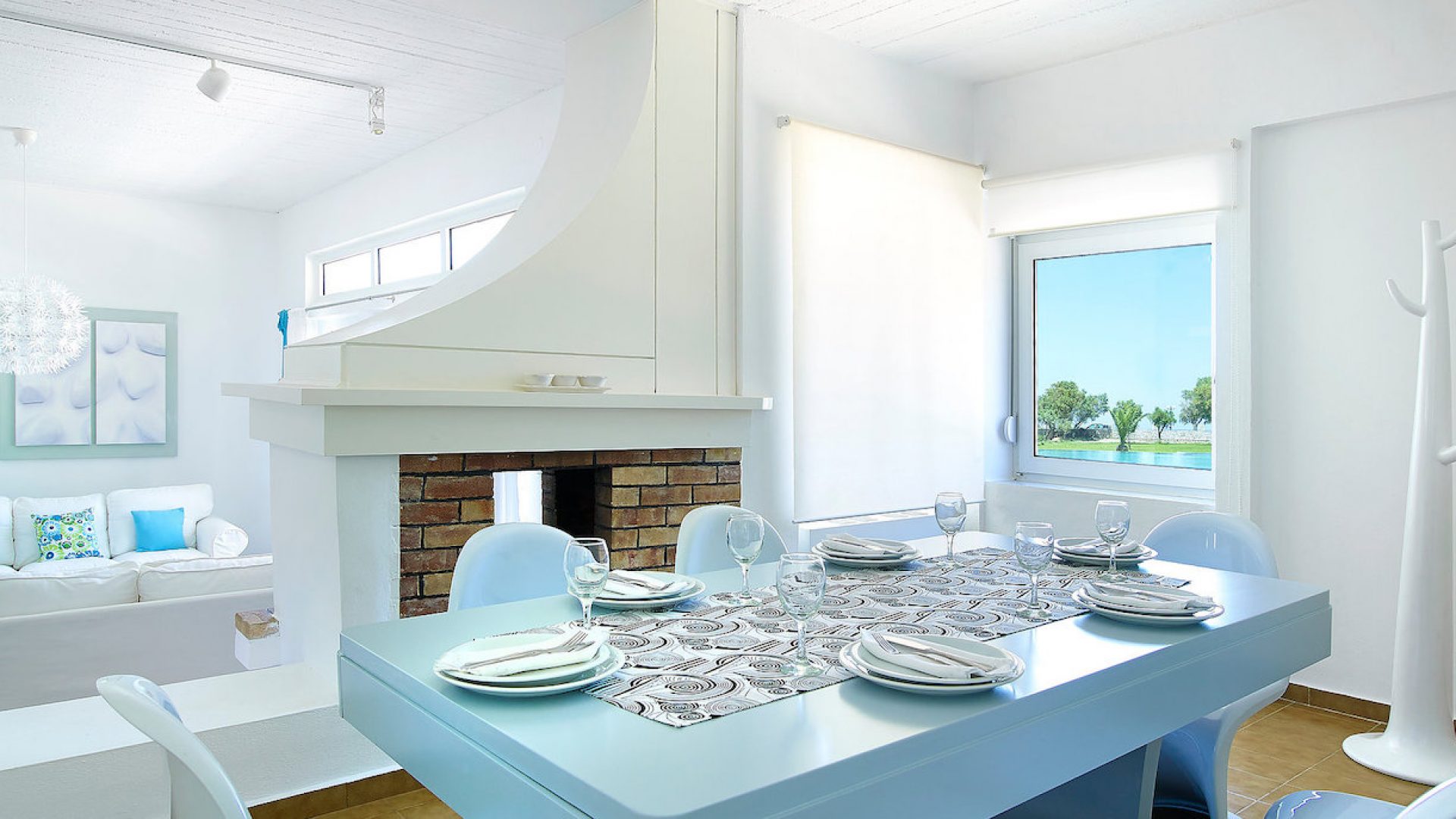2 dining rooms where 6 people in each of them can enjoy their meals having the constant view of the sea
