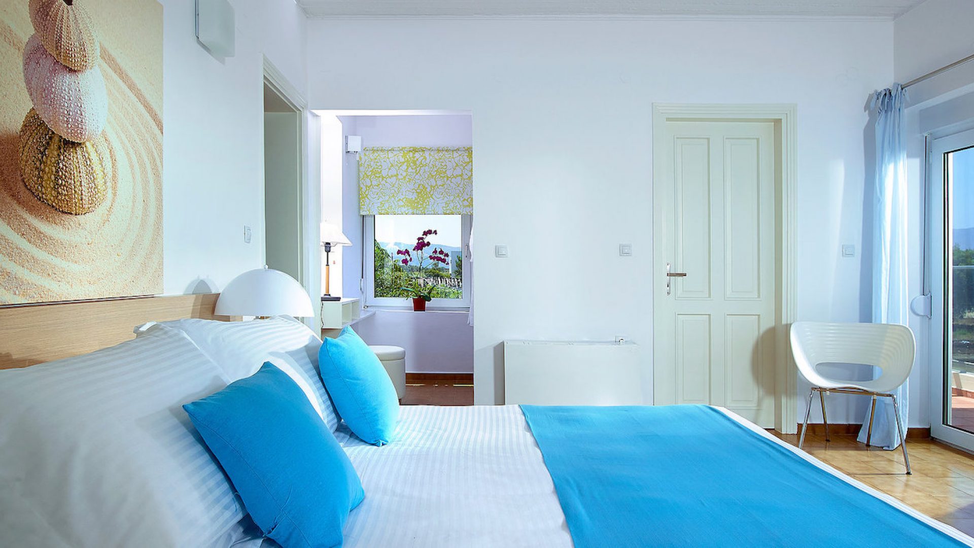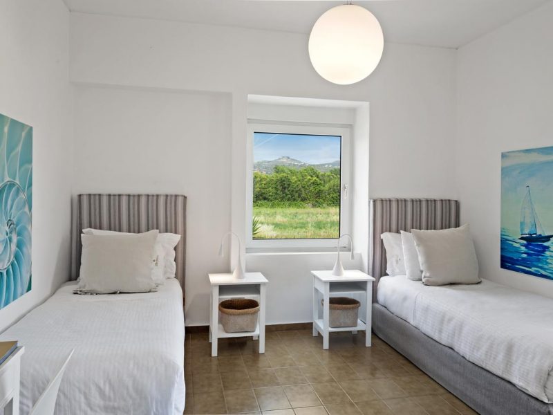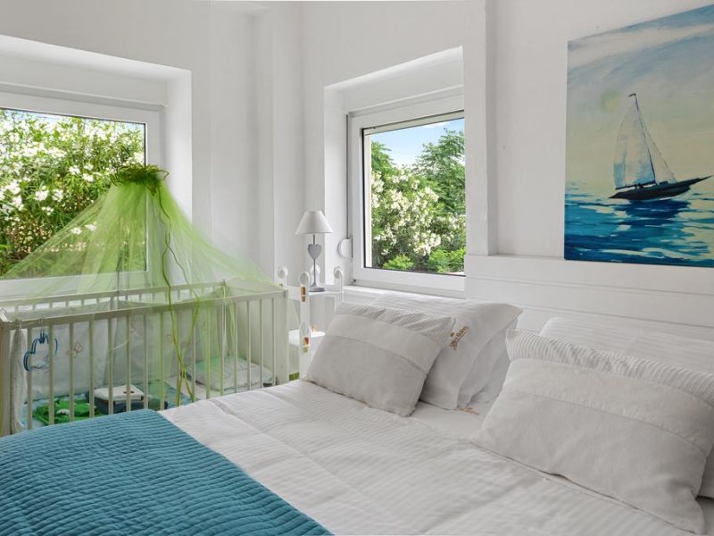 Villa Elvira comprises of 4 bedrooms and can host up to 10 people. The largest bedroom is a 35 m2-studio type which is integrated into the villa’s ground floor having a separate entrance door. The bedroom includes a double bed, a cozy, small living room, a kitchenette and a bathroom with shower.
