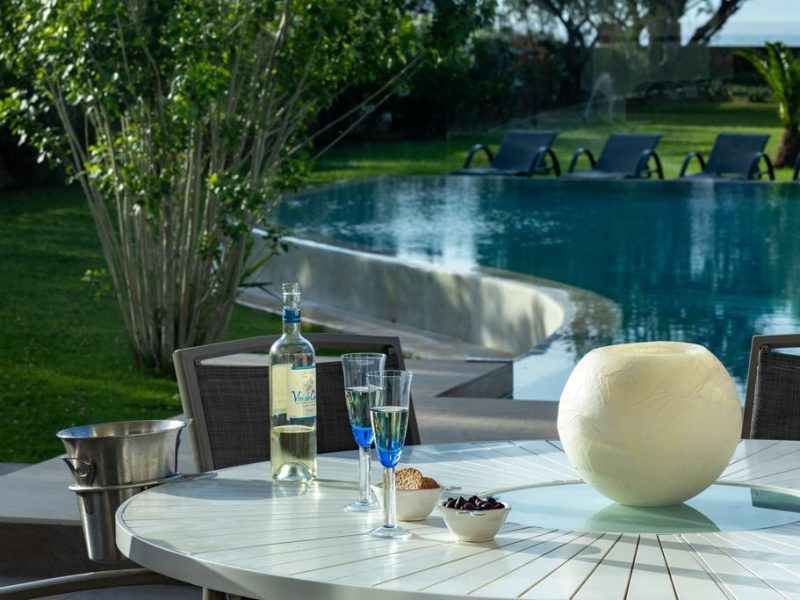 Villa Elvira enables you to enjoy your swim either in the 80 m2 pool (12 m2 for your children) or in the sea and relax by gazing at the magnificent sunset. You can also indulge in your dinner under the vine arbor of a stone-built barbecue overlooking the sea view or you can have the chance to enjoy a stroll around the trim garden any time.