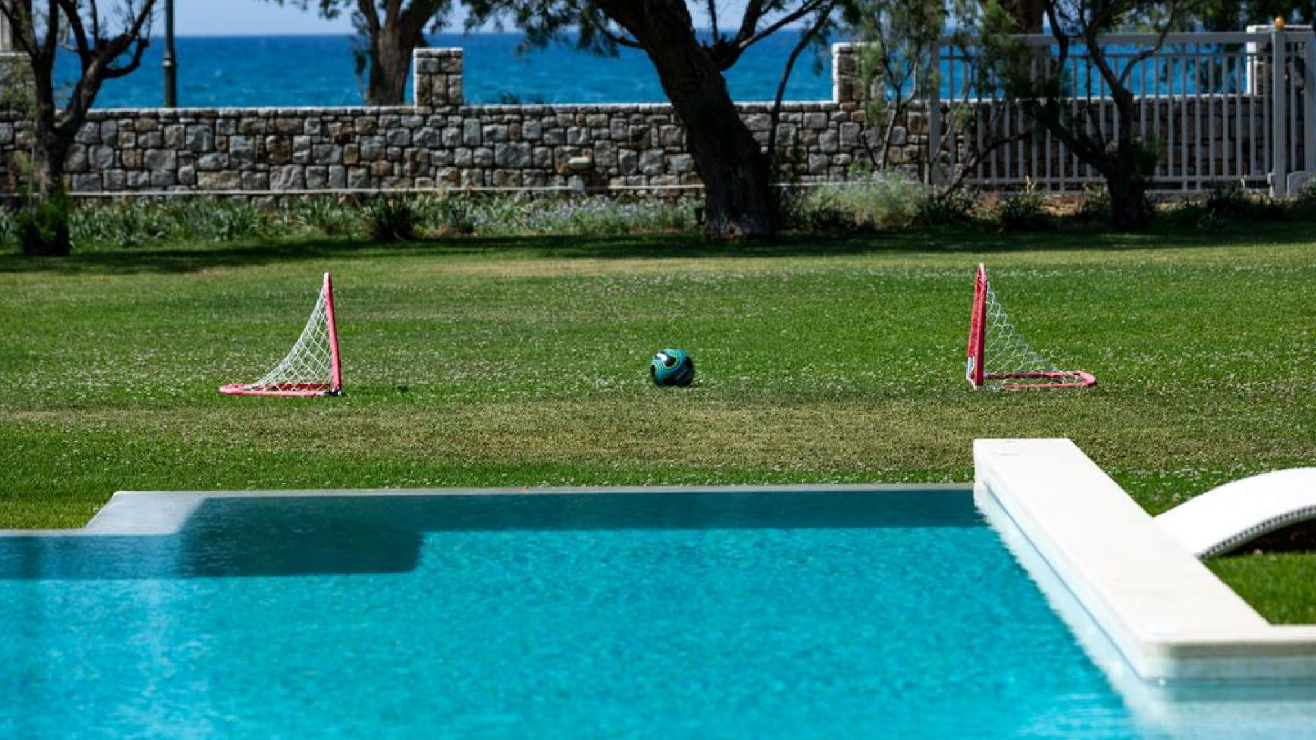 The villa is surrounded by a 3 acres outdoor area, which- in combination with its properly designed facilities covering a wide range of activities and catering to both yours and your children’s needs and tastes- render it an appealing form of accommodation.