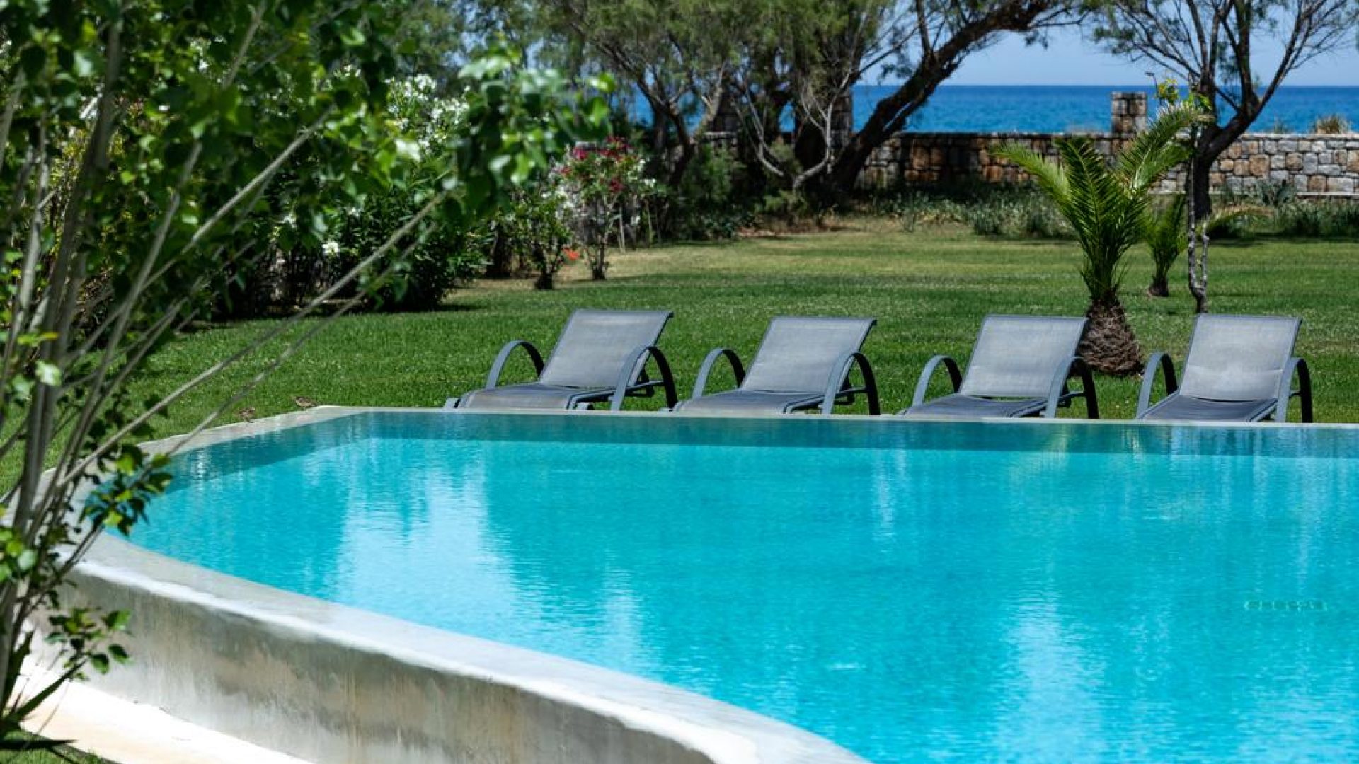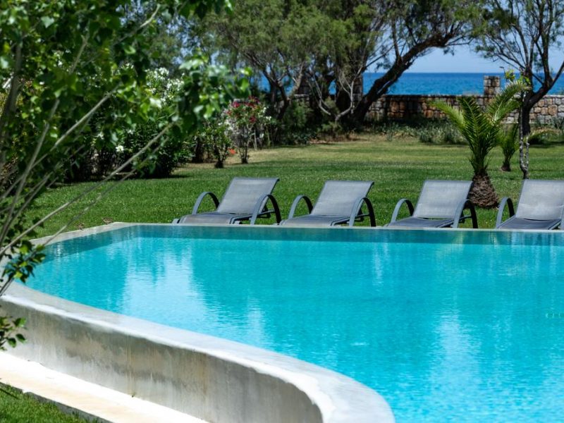 All villa’s rooms and areas both the interior and the exterior ones overlook the sea which is at a 70 m distance from the villa