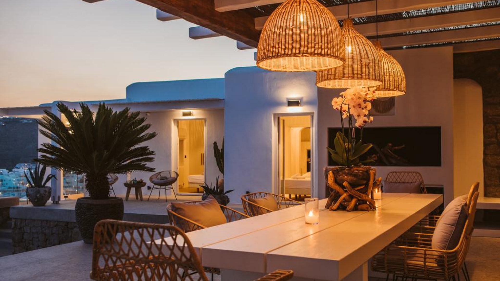 Outdoor living is good at the stunning Salt Life Mykonos Villa, with its covered terrace sporting a large dining table with a to-die-for sea view. This is the best spot from which to start or end your days with a mind-blowing sunrise; and likewise commence your evenings against the backdrop of Mykonos’ trademark, hypnotic sunset.