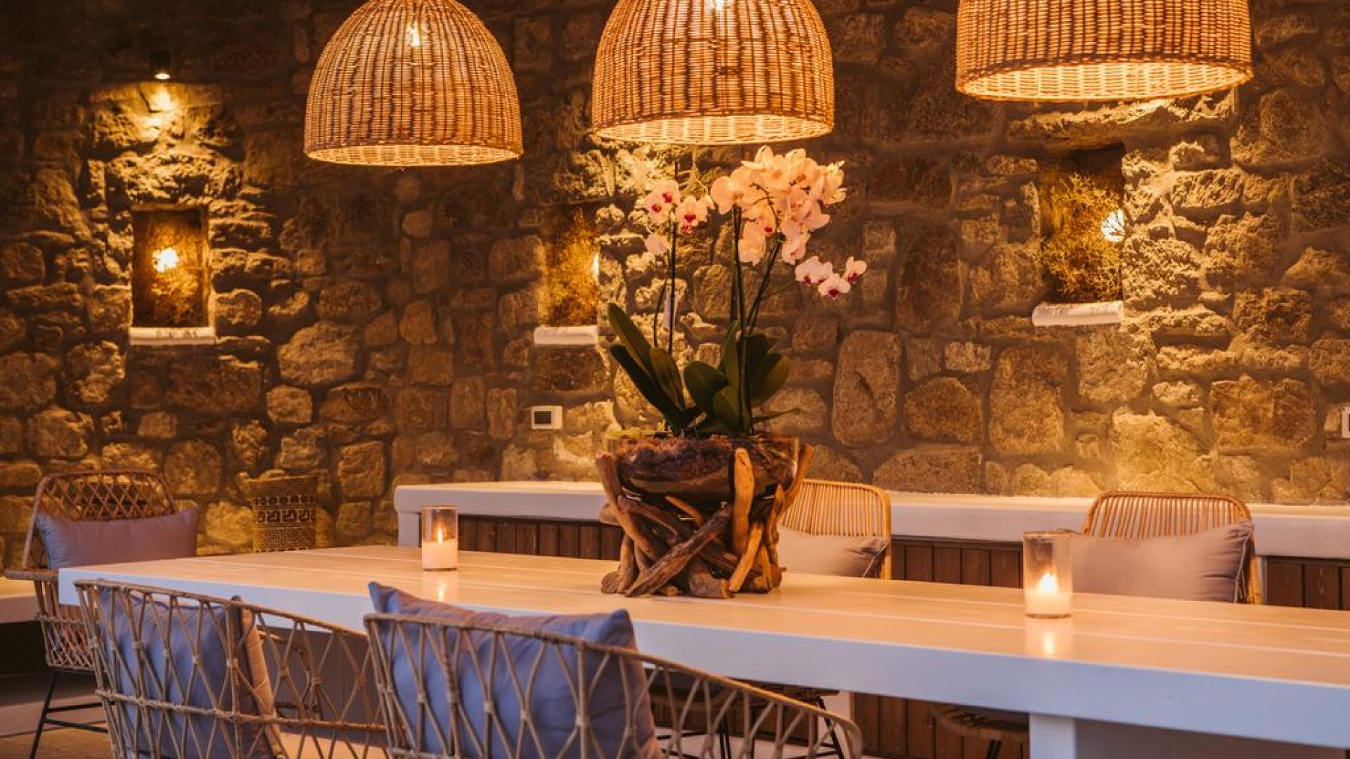 Blending Cycladic chic with the latest conveniences, the Salt Life Mykonos Villa is ideally located to put you well within reach of all kinds of adventures. The athletic types are bound to love the hiking trail that starts right outside the property and goes down to sea level, thereby connecting the three neighboring, adjacent beaches of Platis Gialos, Agia Anna, and Paraga. Affording mesmerizing views and striking scenery, it is in fact the path of choice of nature lovers and romantic souls coming from all over the island. Sportsmen-and-women– shall also adore the host of fun activities to be found at Platis Gialos, just 100m away. Vast and sandy with crystal clear waters, it is one of the most well-organized, popular beaches of Mykonos, frequented by families and watersports fans of all levels and ages. If you’re willing to venture further, note that Platis Gialos is connected by excursion boats and sea taxis to other Mykonos beaches, such as the notorious clubbing heaven which is Super Paradise. Should you be looking for some more sophisticated type of “action” however, head to the world-famous Psarou beach. It may be reached via a 15 minutes’ walk on the coast from Platis Gialos, and it is ideal for rubbing shoulders with the jet setters and the glitterati, at its ultra-posh beach bar-restaurants. Paraga beach, about 350m from the Salt Life Villa, is moreover, another current ‘It” spot, favored by the hip and trendy set, with fine sand, blue waters, and an amazing view of the sunset. Home to some uber-hot beach bars, restaurants, and boutiques, Paraga is the place to be if glamorous partying is your cup of tea. On the other hand, if a bit of privacy and seclusion is what you most desire, then Agia Anna, just 300m from your luxury Mykonos villa, will aptly recompense you, with its postcard-perfect scenery, serenity, and amazing view of the Divounia peninsula. Yet whichever bathing spot near the Salt Life Villa you may choose; thanks to their privileged orientation, you’ll have the opportunity to bask in Mykonos’ most glorious sunset- preferably with a delightful cocktail at hand, as the island’s custom dictates. Good news for the foodies of this world too, for the Salt Life Villa, is well within walking distance from some of Mykonos’ best restaurants, offering a wealth of culinary options for all sorts of tastes and dispositions.