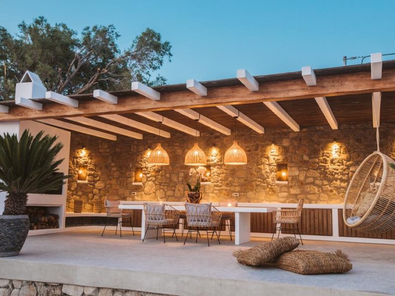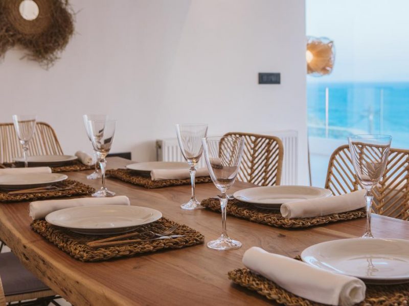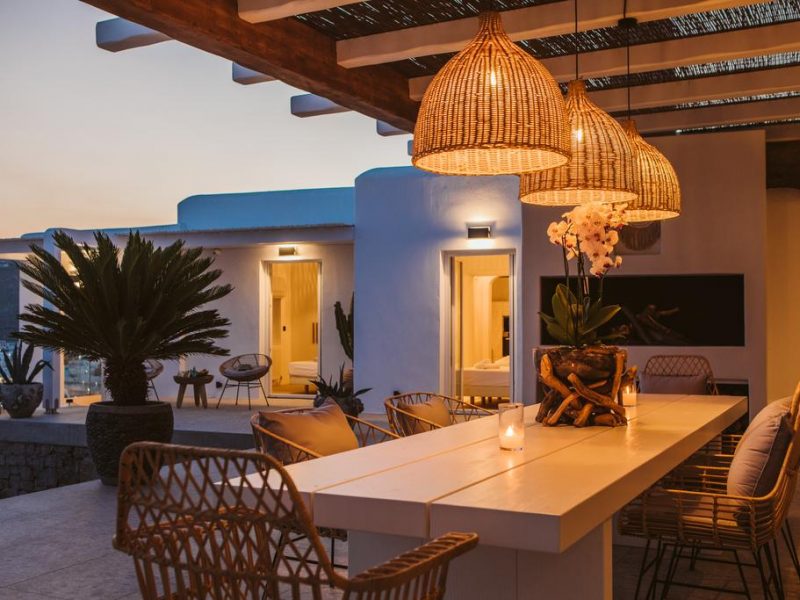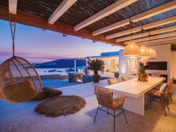 Outdoor living is good at the stunning Salt Life Mykonos Villa, with its covered terrace sporting a large dining table with a to-die-for sea view. This is the best spot from which to start or end your days with a mind-blowing sunrise; and likewise commence your evenings against the backdrop of Mykonos’ trademark, hypnotic sunset.