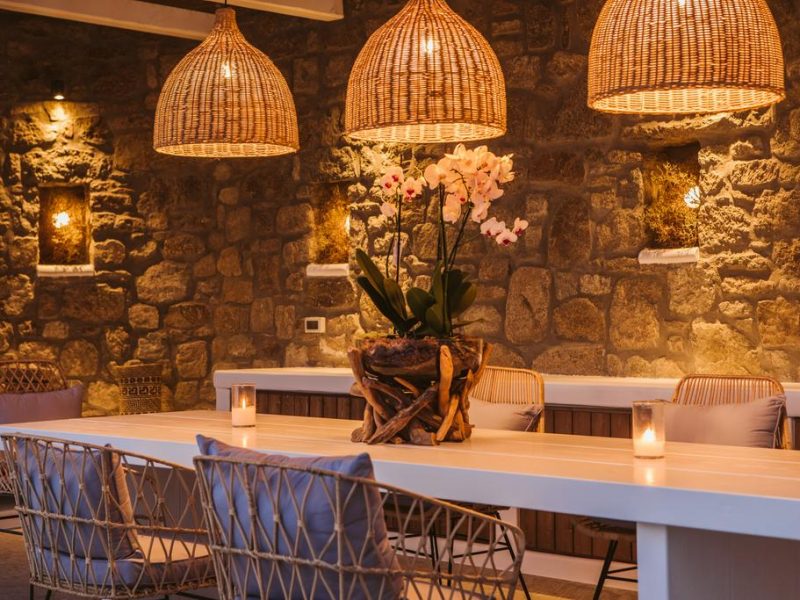 Blending Cycladic chic with the latest conveniences, the Salt Life Mykonos Villa is ideally located to put you well within reach of all kinds of adventures. The athletic types are bound to love the hiking trail that starts right outside the property and goes down to sea level, thereby connecting the three neighboring, adjacent beaches of Platis Gialos, Agia Anna, and Paraga. Affording mesmerizing views and striking scenery, it is in fact the path of choice of nature lovers and romantic souls coming from all over the island. Sportsmen-and-women– shall also adore the host of fun activities to be found at Platis Gialos, just 100m away. Vast and sandy with crystal clear waters, it is one of the most well-organized, popular beaches of Mykonos, frequented by families and watersports fans of all levels and ages. If you’re willing to venture further, note that Platis Gialos is connected by excursion boats and sea taxis to other Mykonos beaches, such as the notorious clubbing heaven which is Super Paradise. Should you be looking for some more sophisticated type of “action” however, head to the world-famous Psarou beach. It may be reached via a 15 minutes’ walk on the coast from Platis Gialos, and it is ideal for rubbing shoulders with the jet setters and the glitterati, at its ultra-posh beach bar-restaurants. Paraga beach, about 350m from the Salt Life Villa, is moreover, another current ‘It” spot, favored by the hip and trendy set, with fine sand, blue waters, and an amazing view of the sunset. Home to some uber-hot beach bars, restaurants, and boutiques, Paraga is the place to be if glamorous partying is your cup of tea. On the other hand, if a bit of privacy and seclusion is what you most desire, then Agia Anna, just 300m from your luxury Mykonos villa, will aptly recompense you, with its postcard-perfect scenery, serenity, and amazing view of the Divounia peninsula. Yet whichever bathing spot near the Salt Life Villa you may choose; thanks to their privileged orientation, you’ll have the opportunity to bask in Mykonos’ most glorious sunset- preferably with a delightful cocktail at hand, as the island’s custom dictates. Good news for the foodies of this world too, for the Salt Life Villa, is well within walking distance from some of Mykonos’ best restaurants, offering a wealth of culinary options for all sorts of tastes and dispositions.