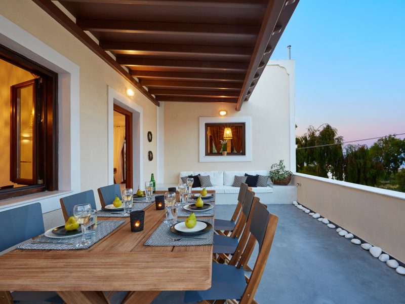 A large 40 m² veranda with an infinity view of the magnificent village of Pyrgos
