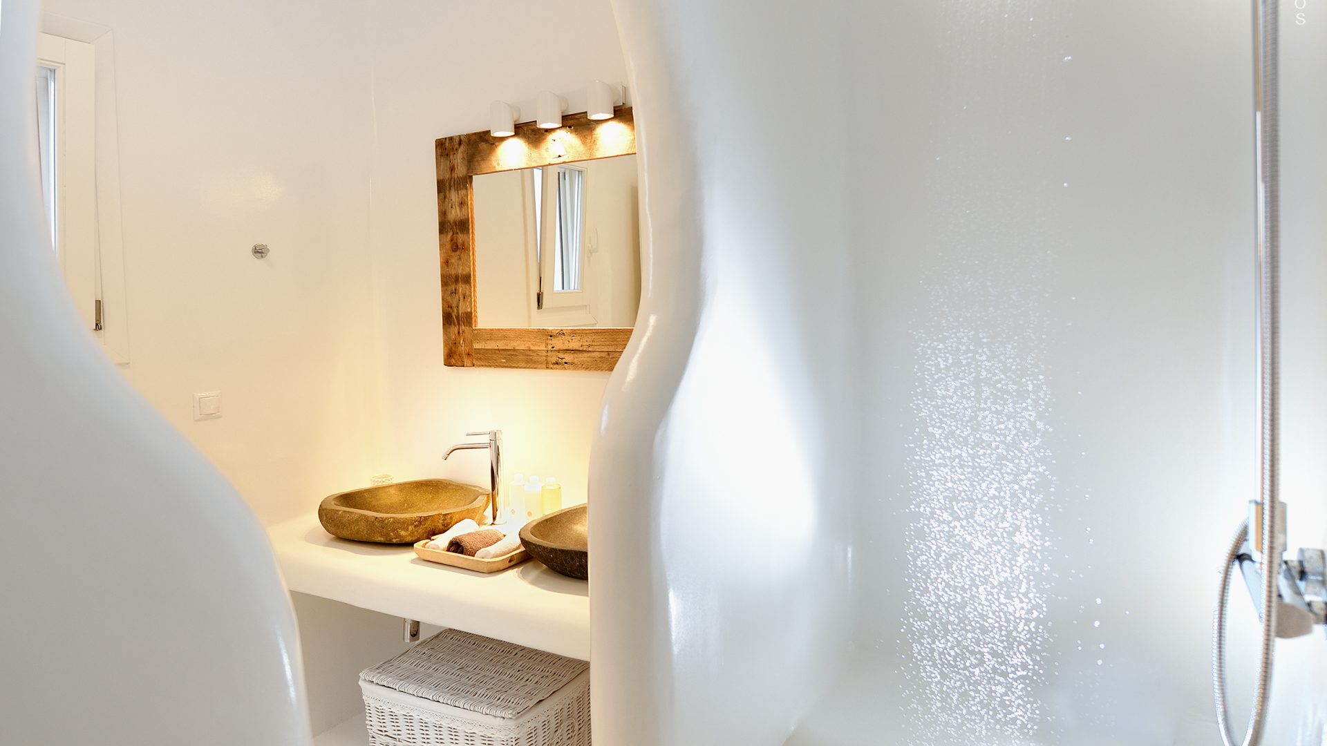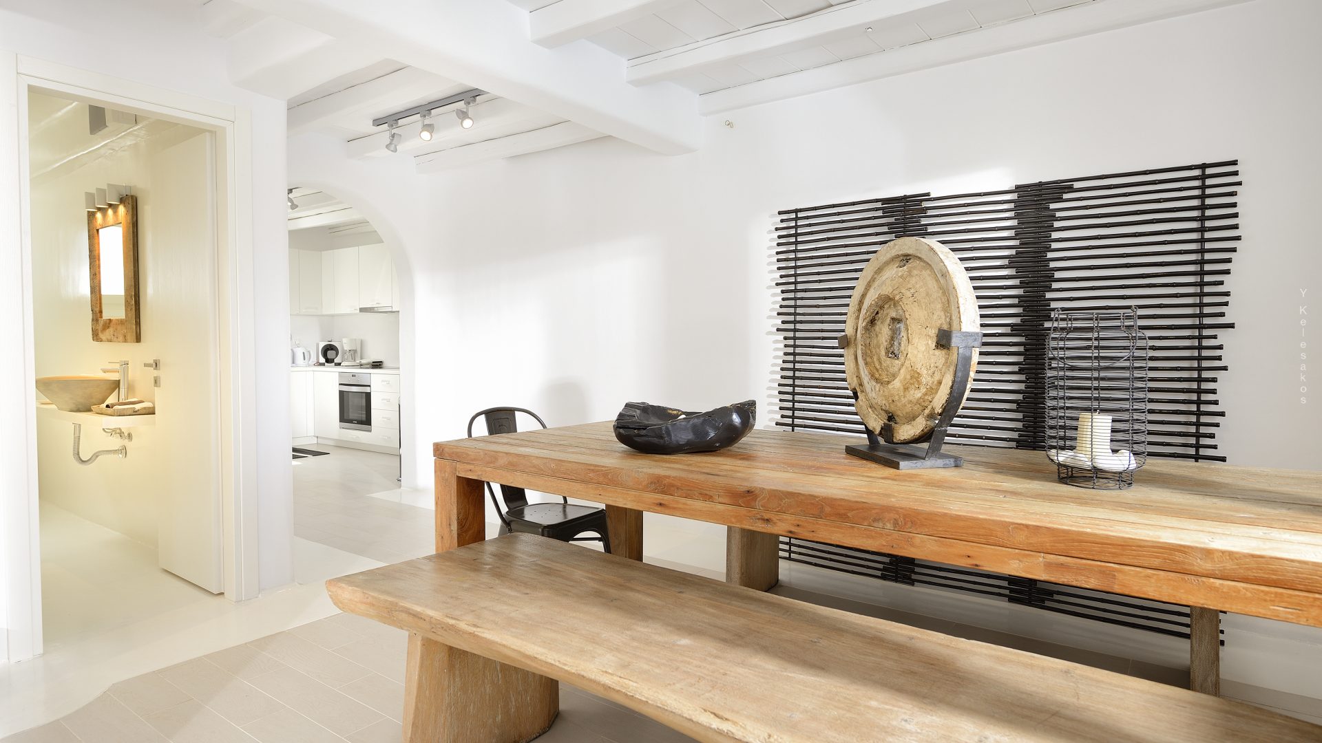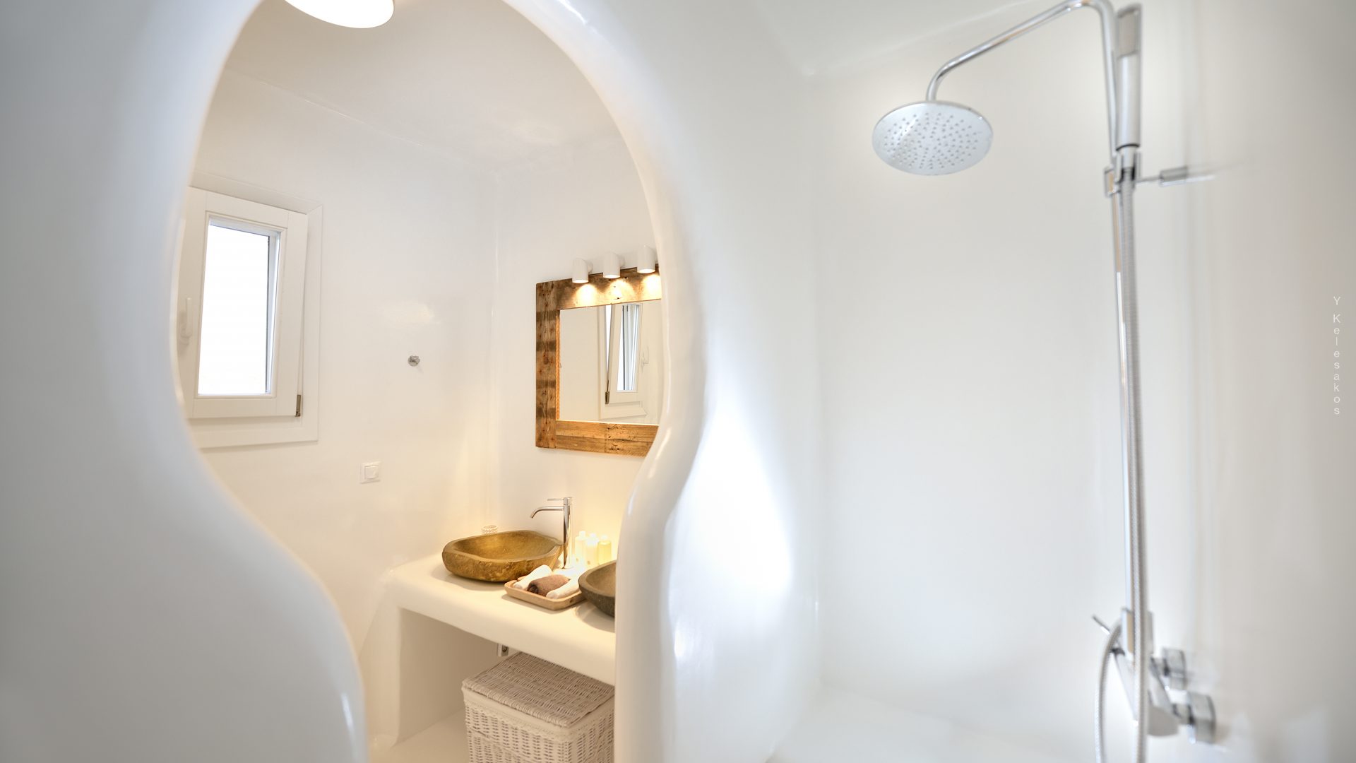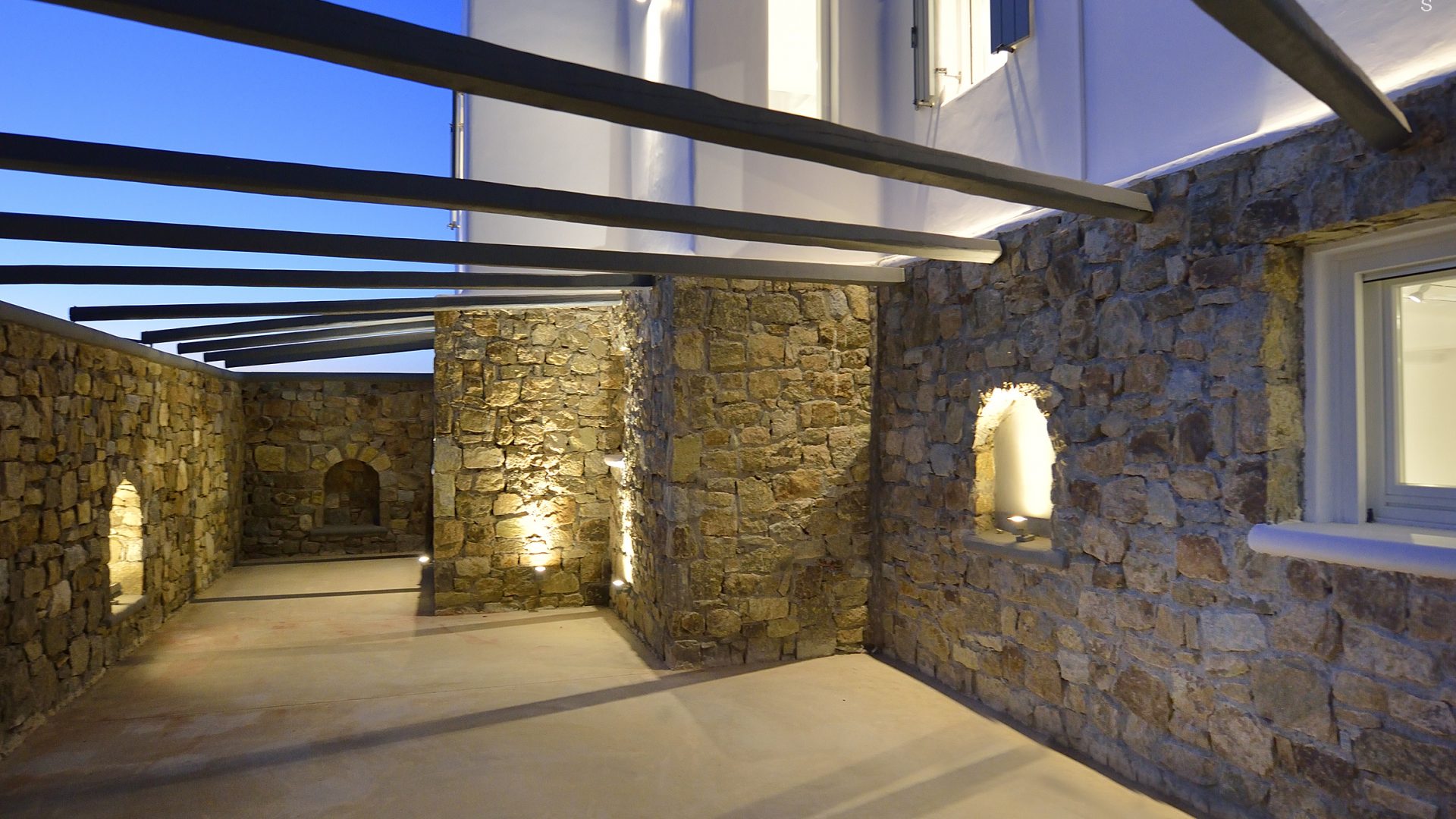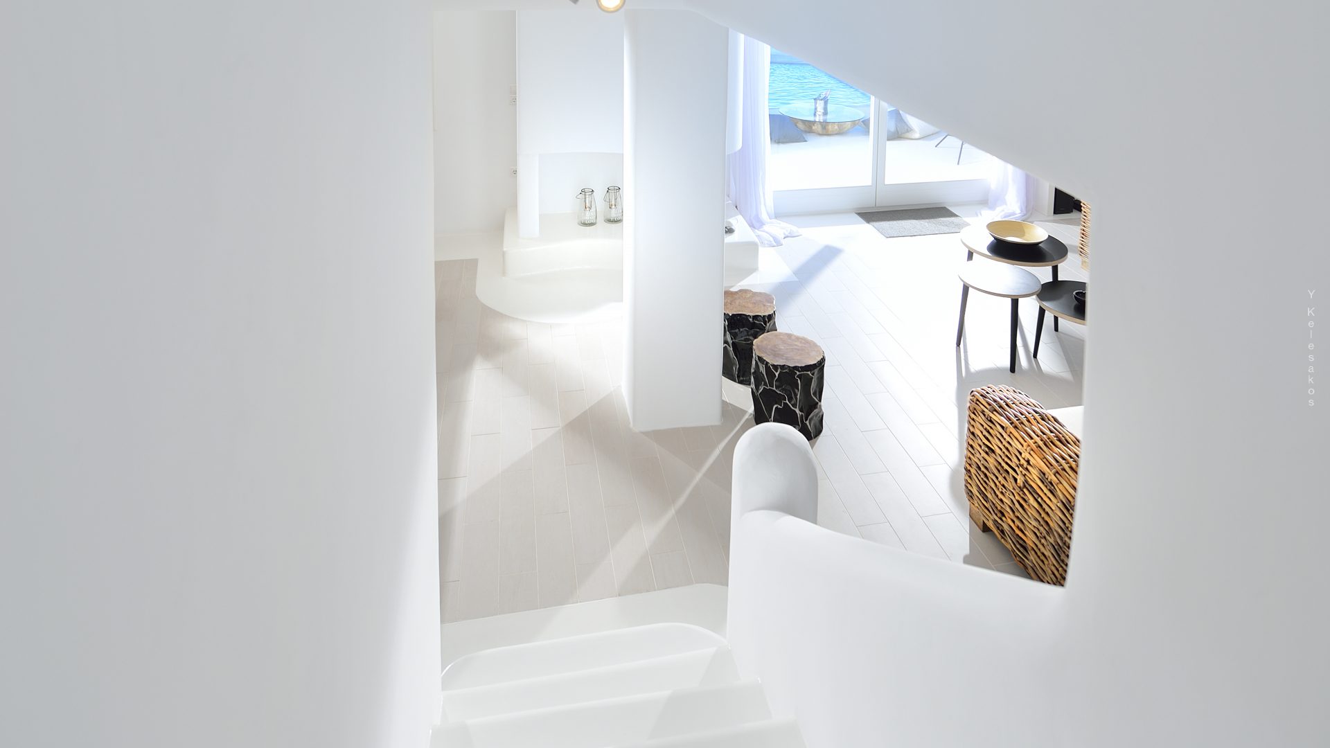 Villa Darling is located in Kanalia, only 150 metres from the sea. Built in a residence site of 1.900 m2, it has a view of Mykonos Town, Chora and Tinos Island. There is a sidewalk that leads to the sea in a few minutes and a swimming pool of 35 m2.