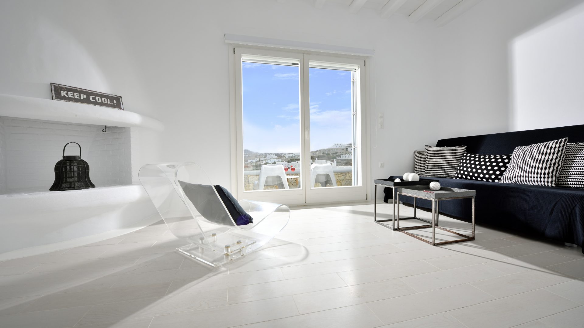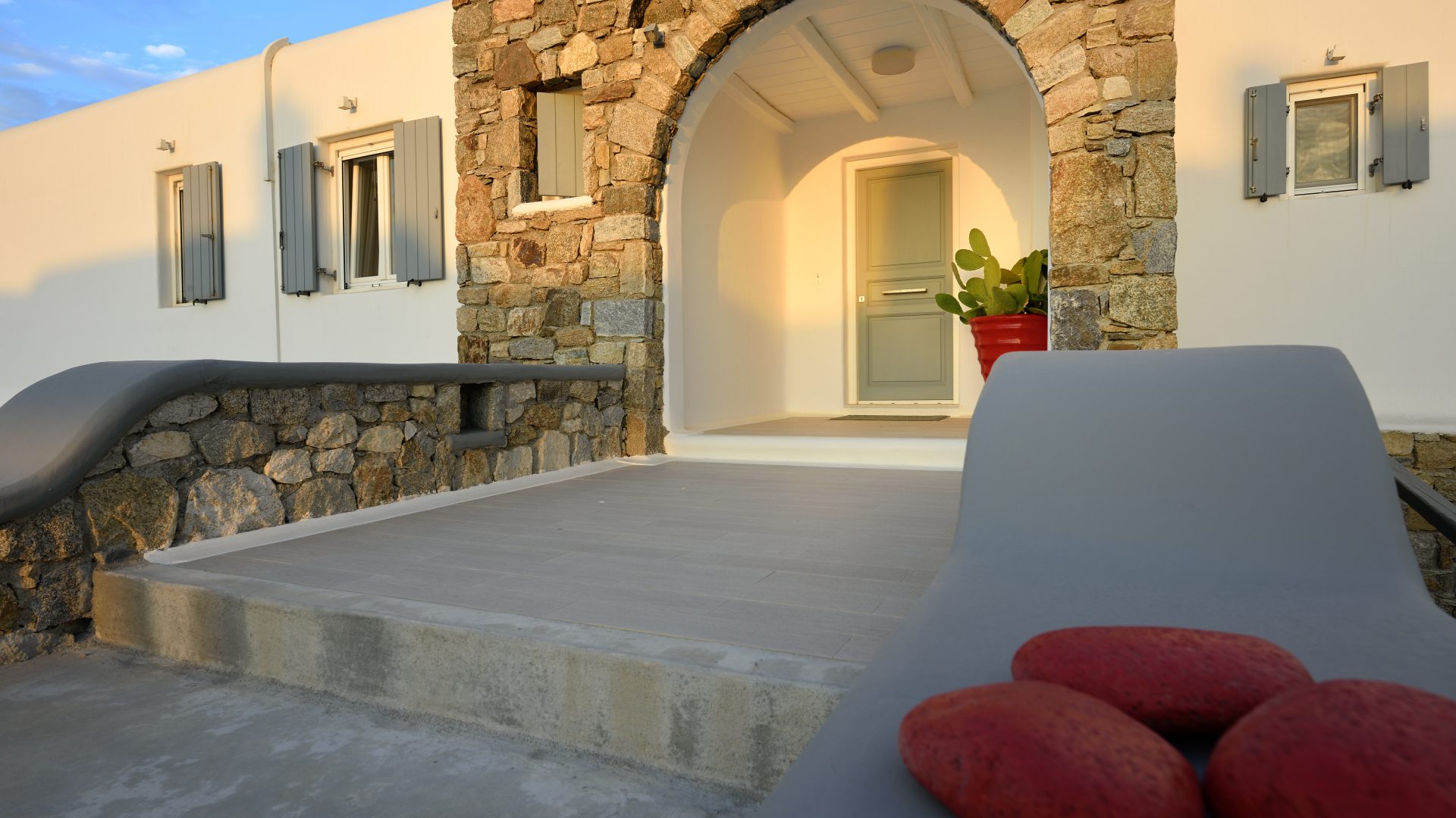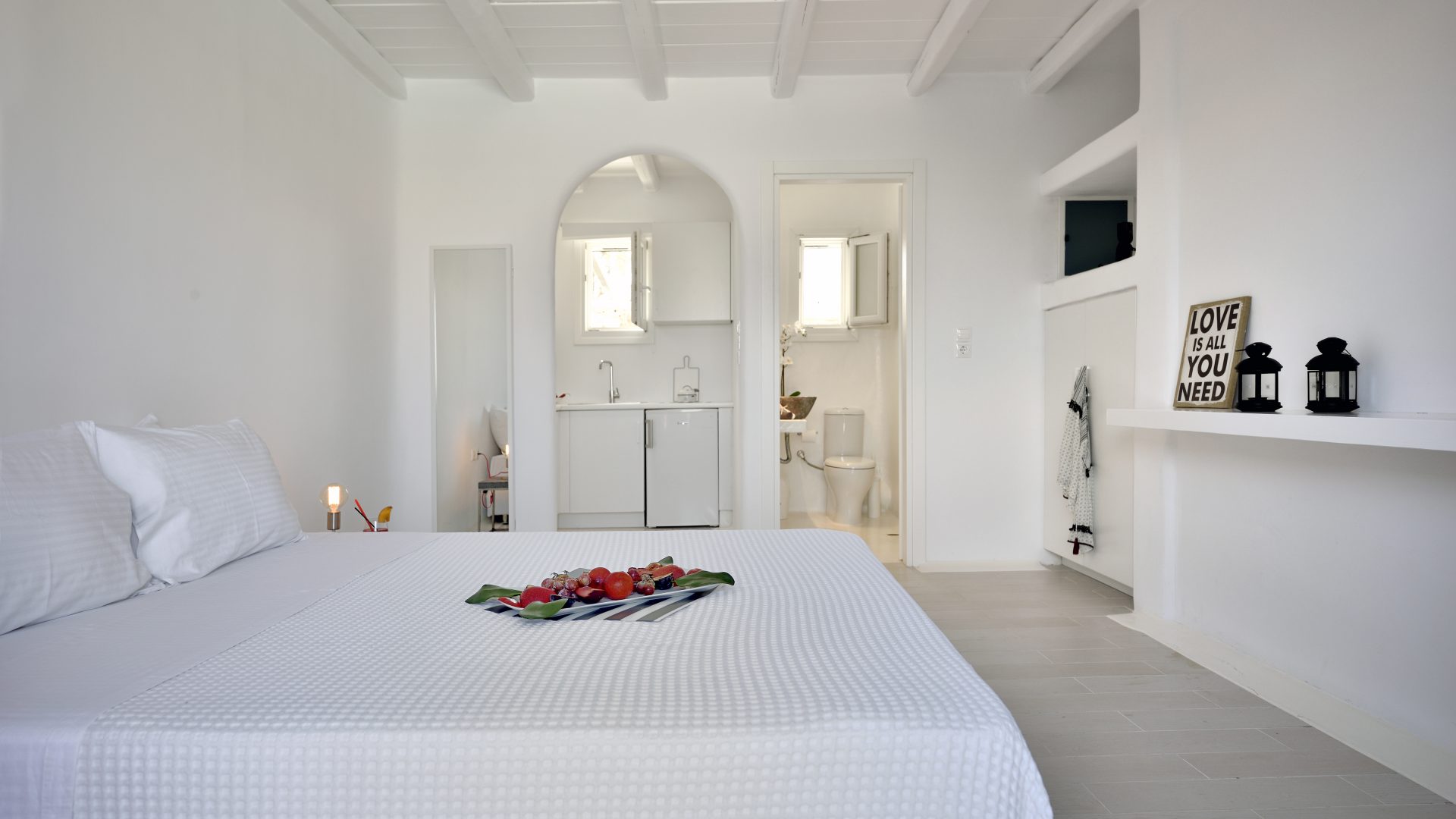 The town of Mykonos is located 4 km away, airport 5 km away and the new port 6 km away.