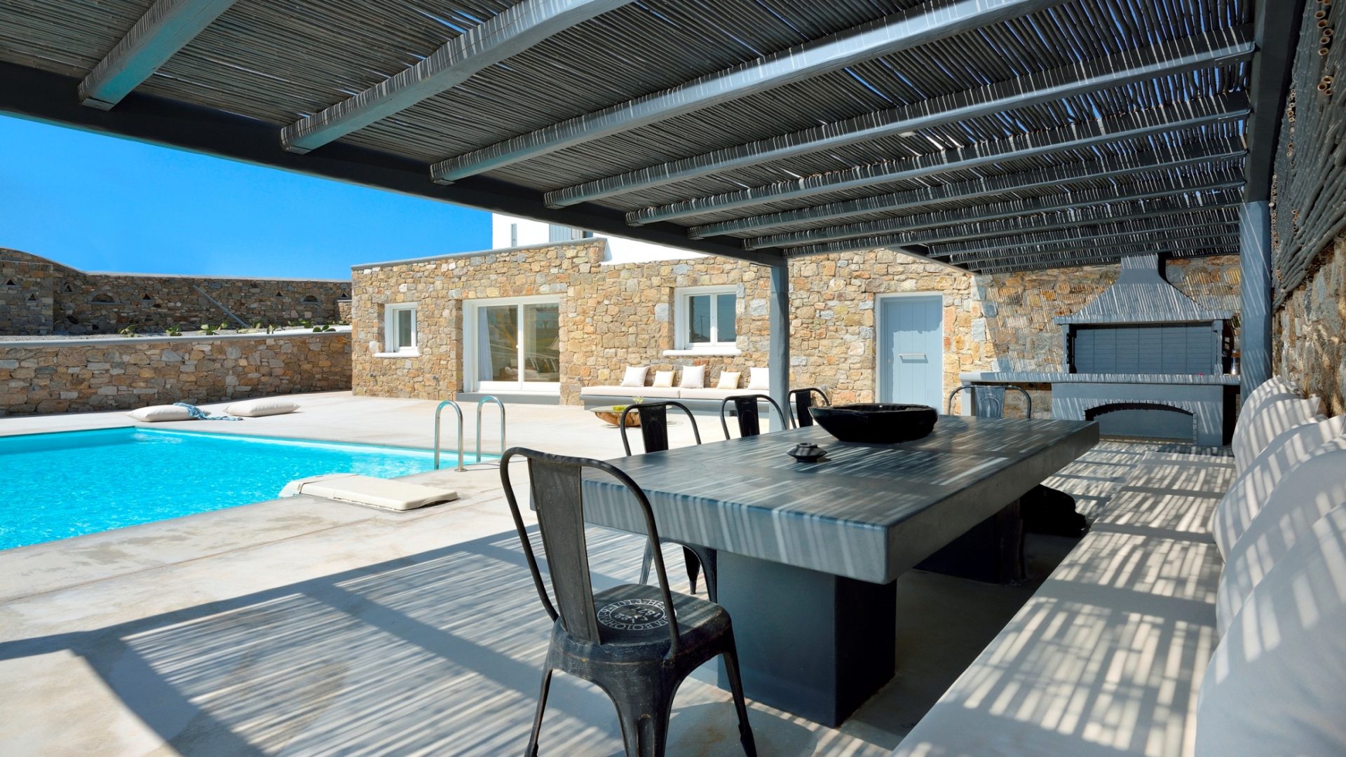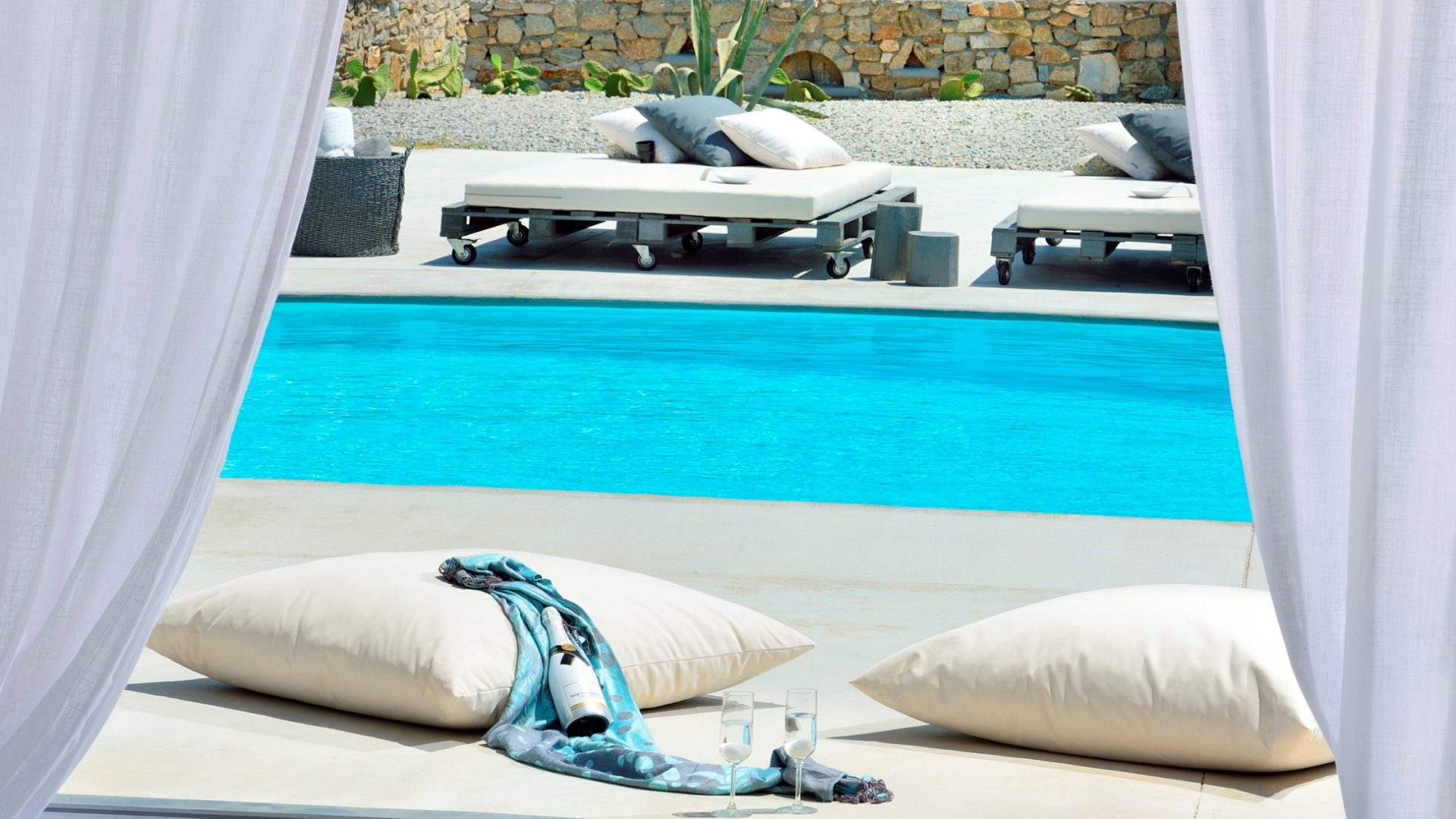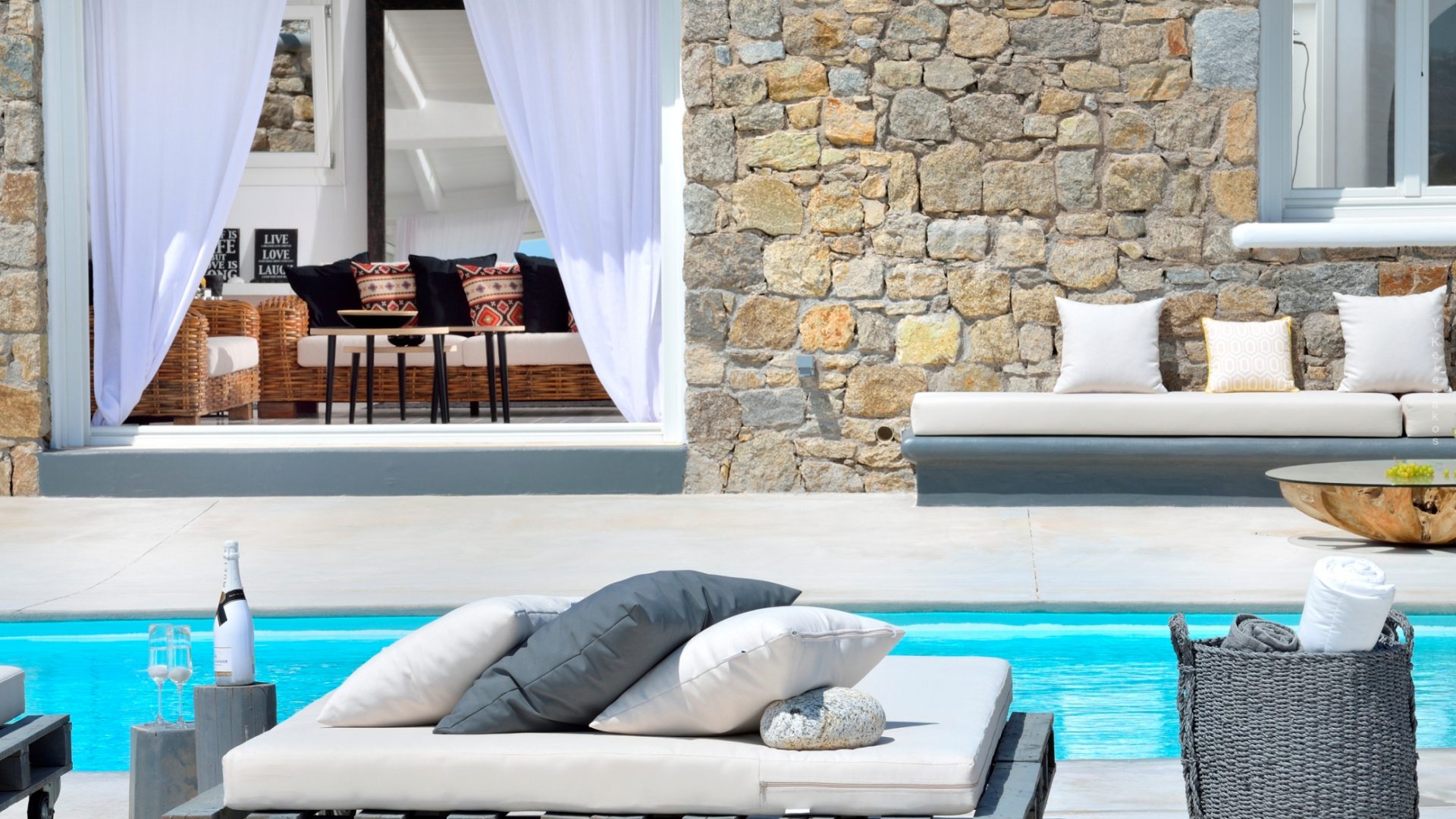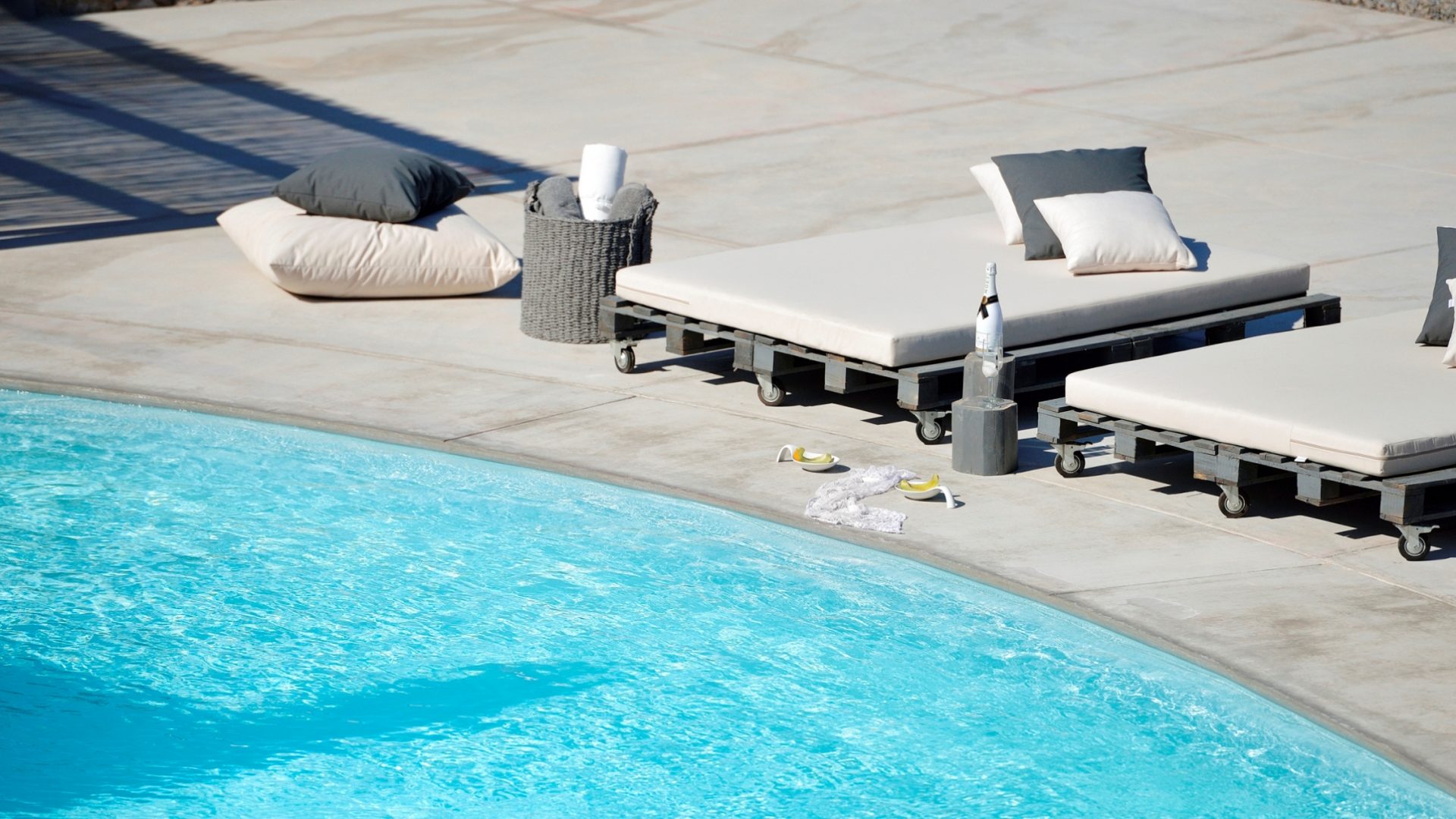 Outside there are pools, barbeque areas, built couches, dining tables and chairs as well as pool towels.