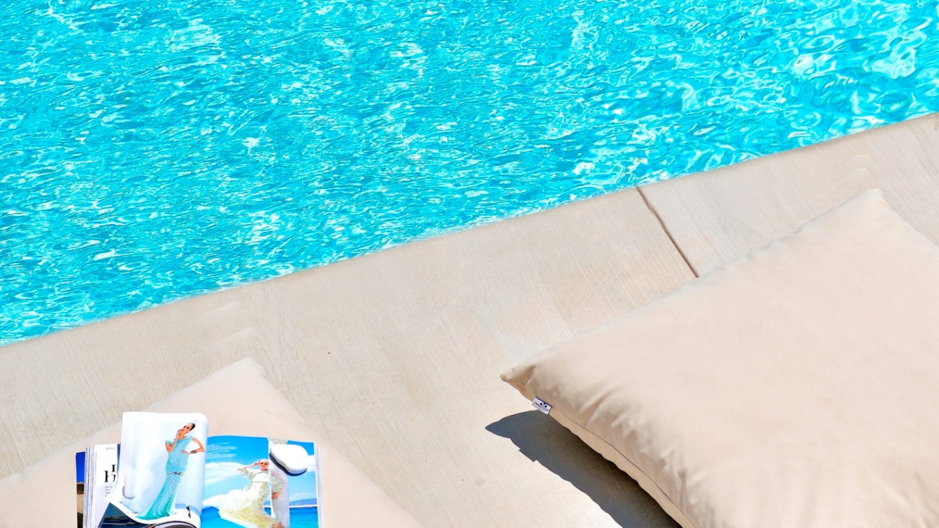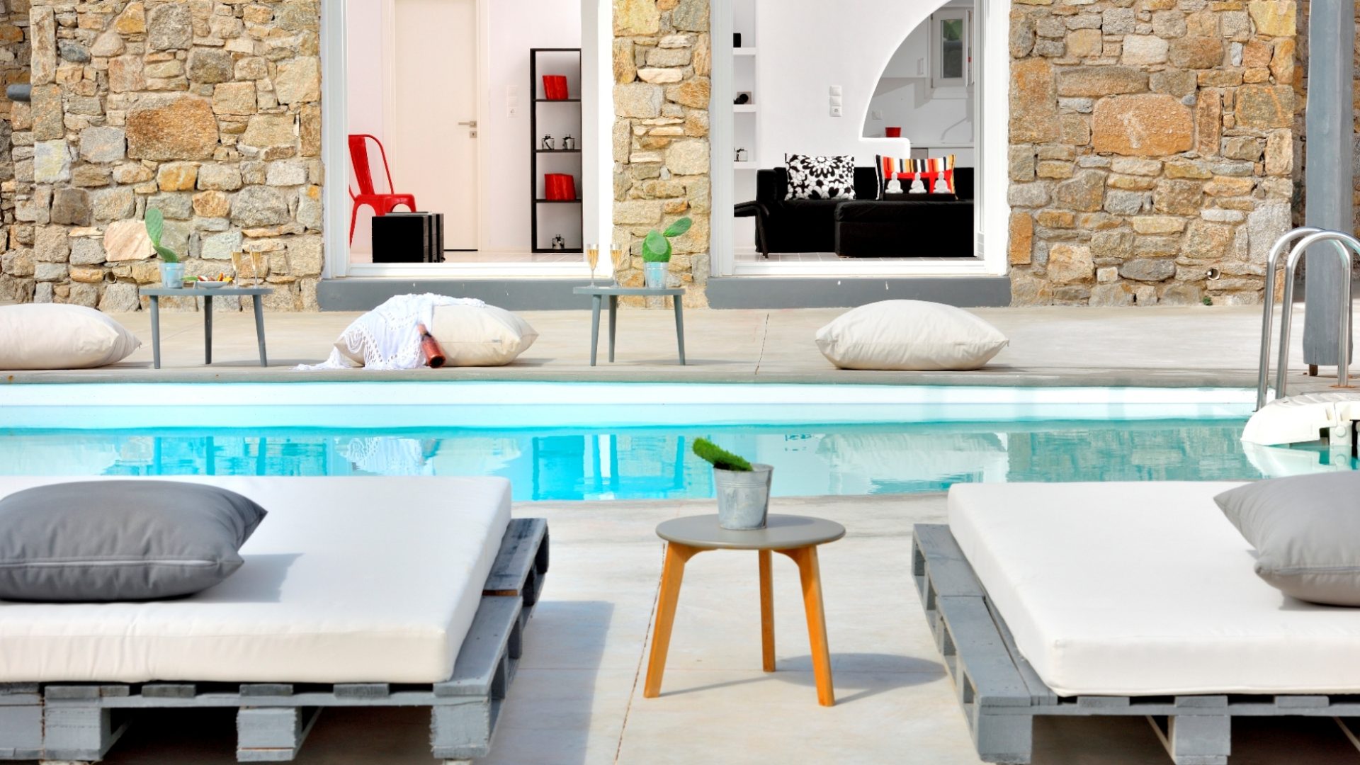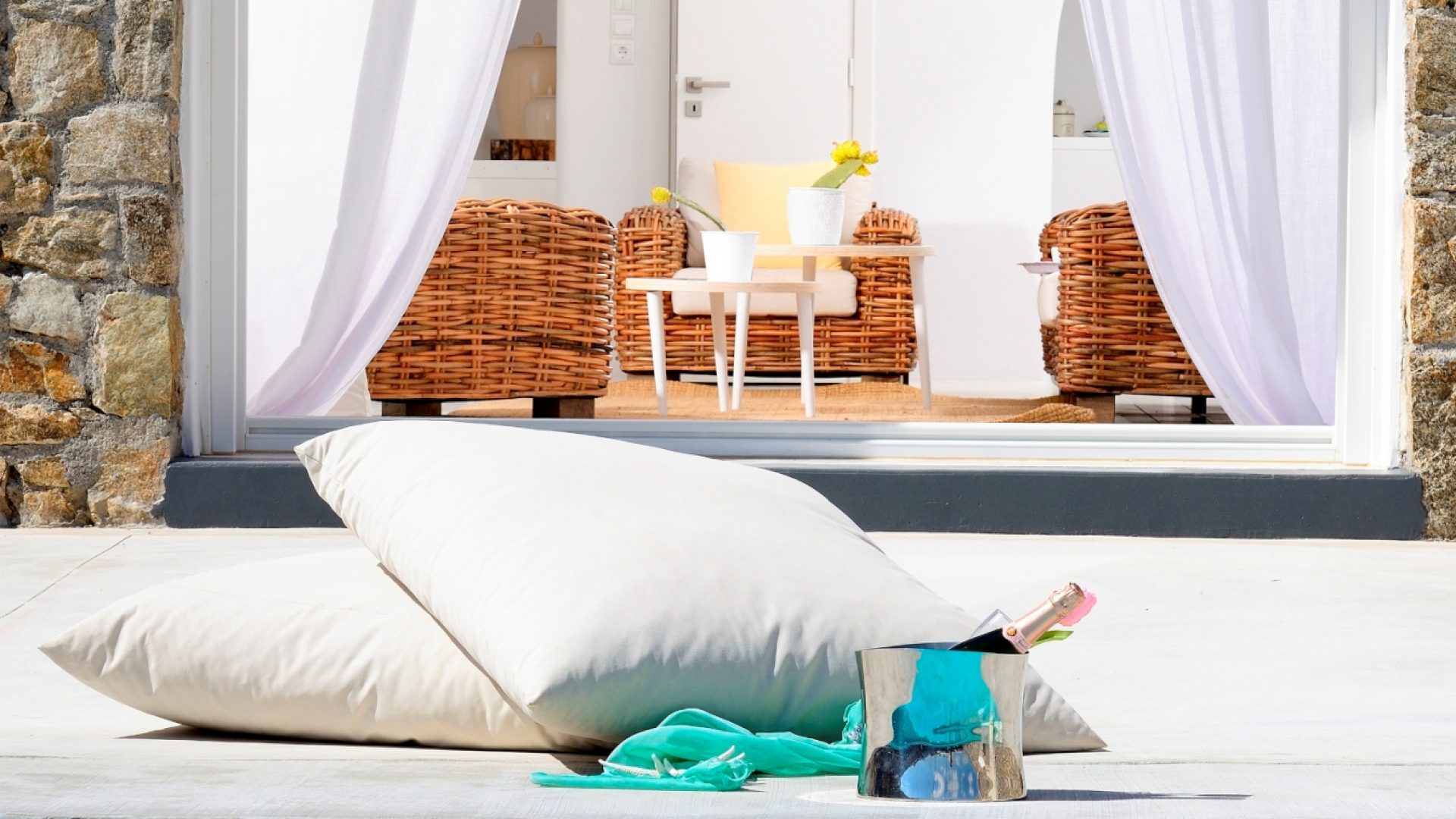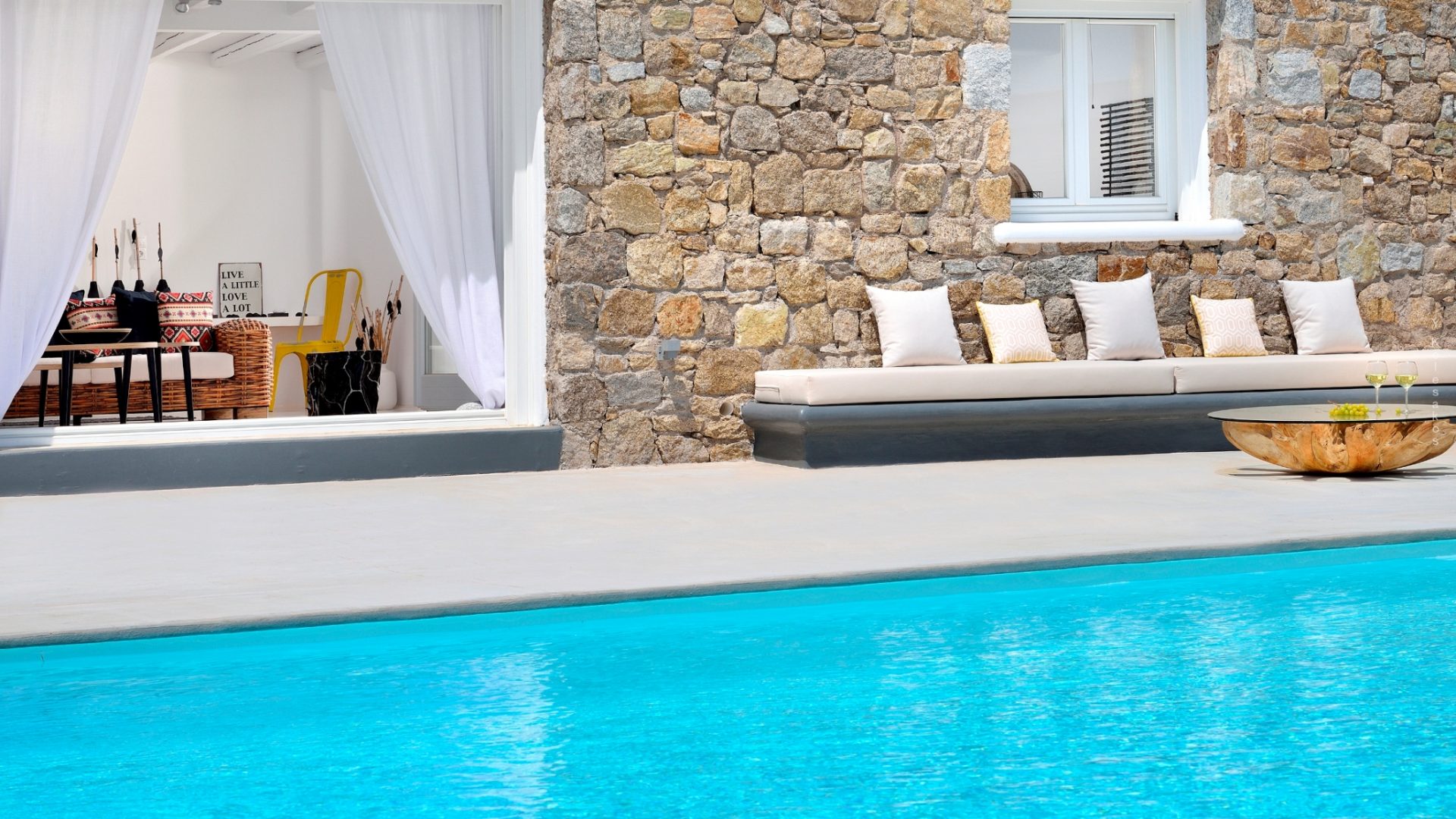 Outside there are pools, barbeque areas, built couches, dining tables and chairs as well as pool towels.