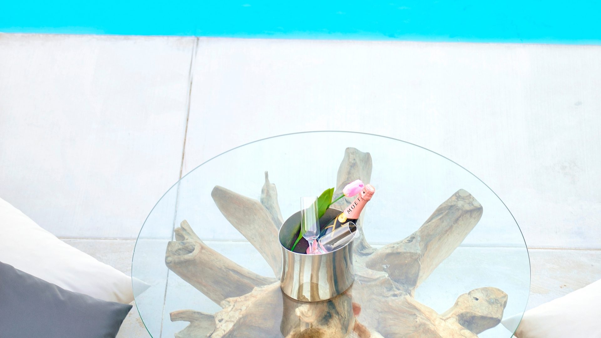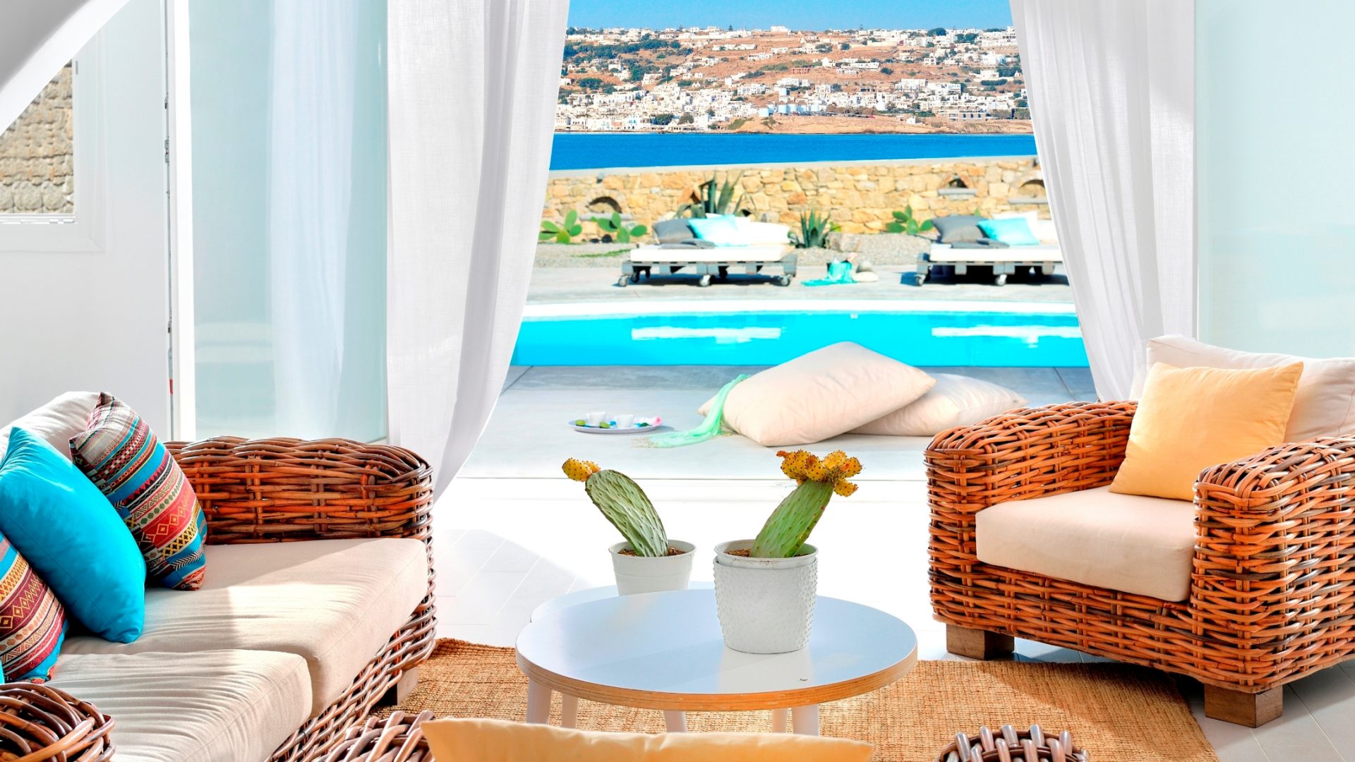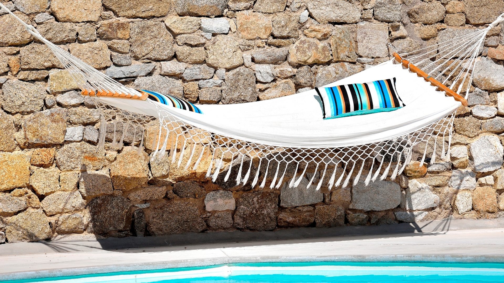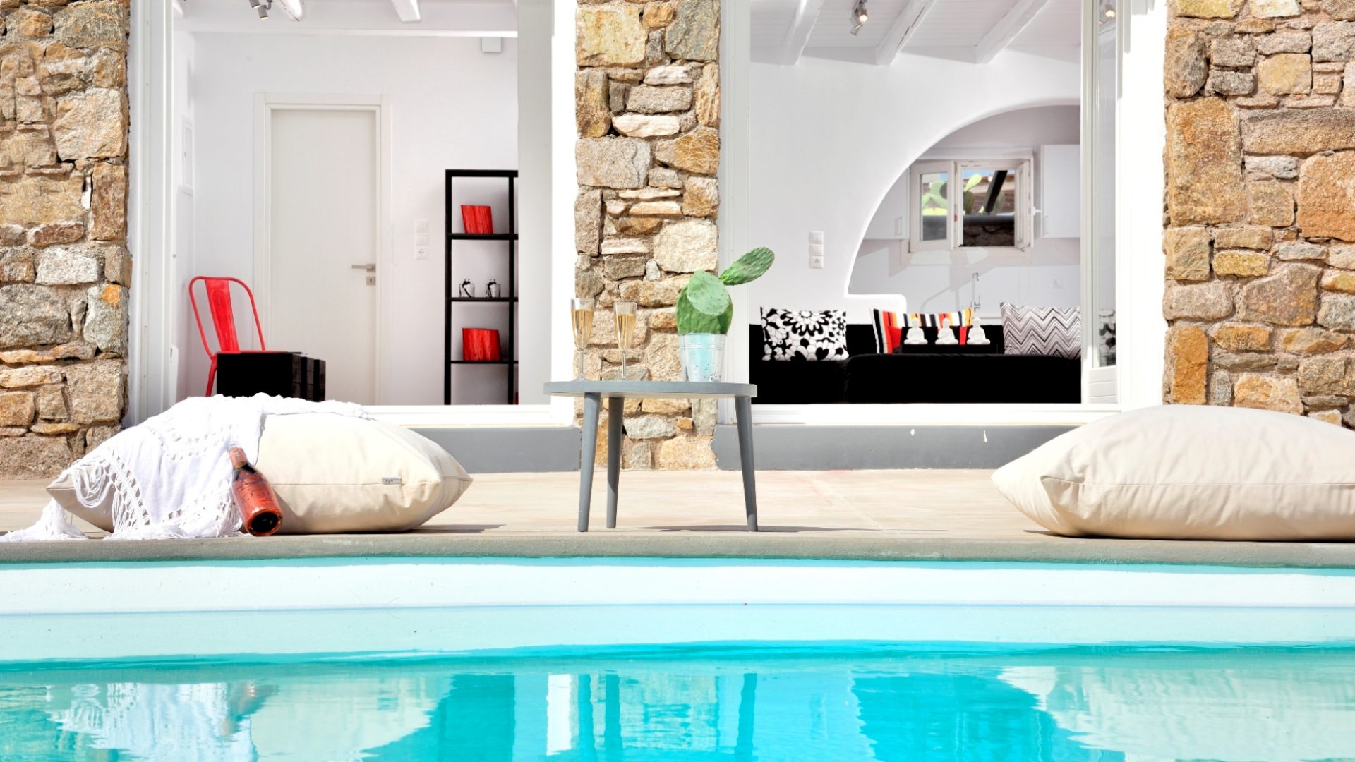 Outside there are pools, barbeque areas, built couches, dining tables and chairs as well as pool towels.