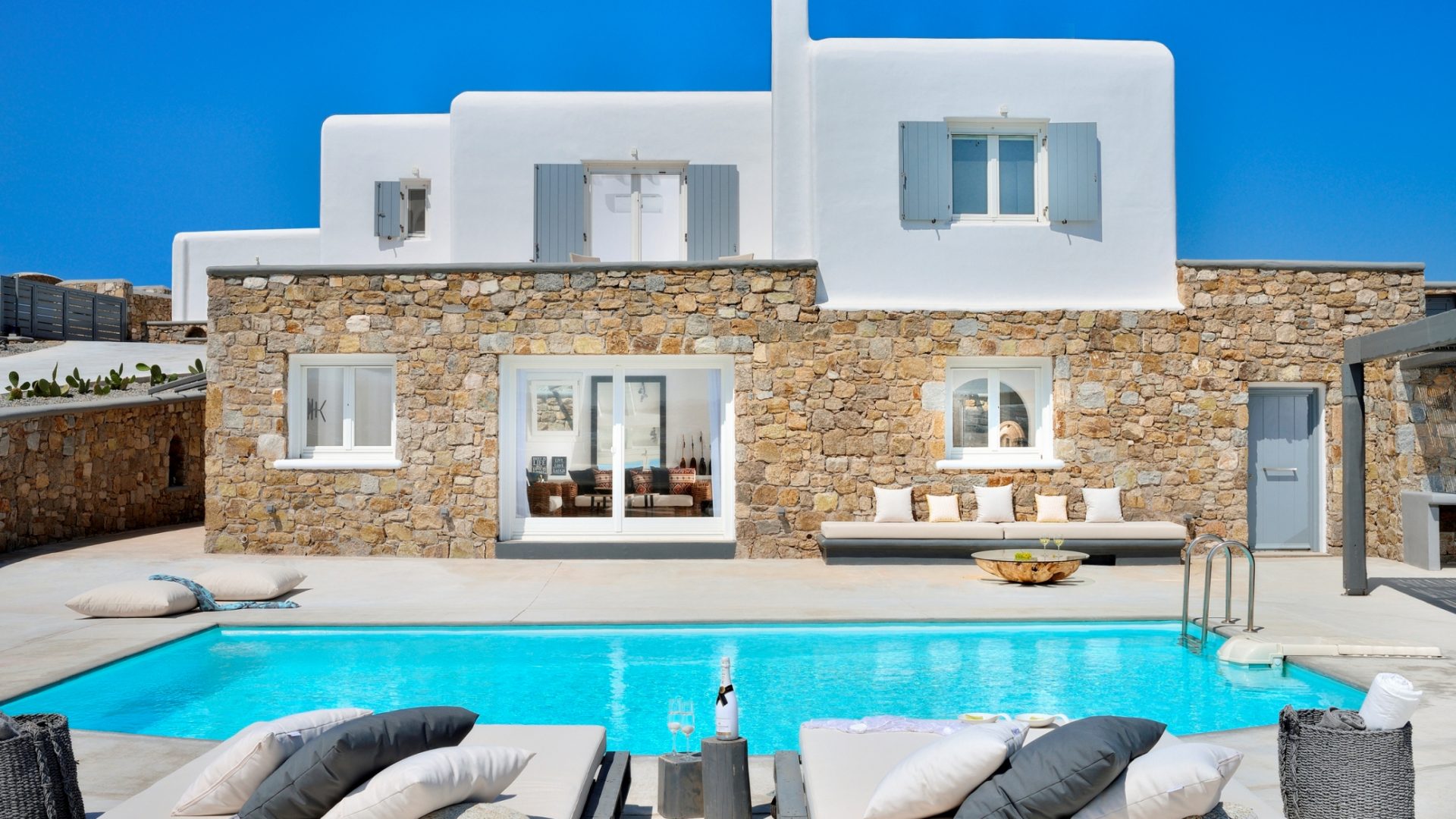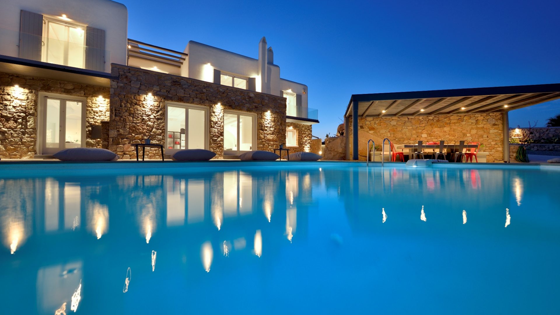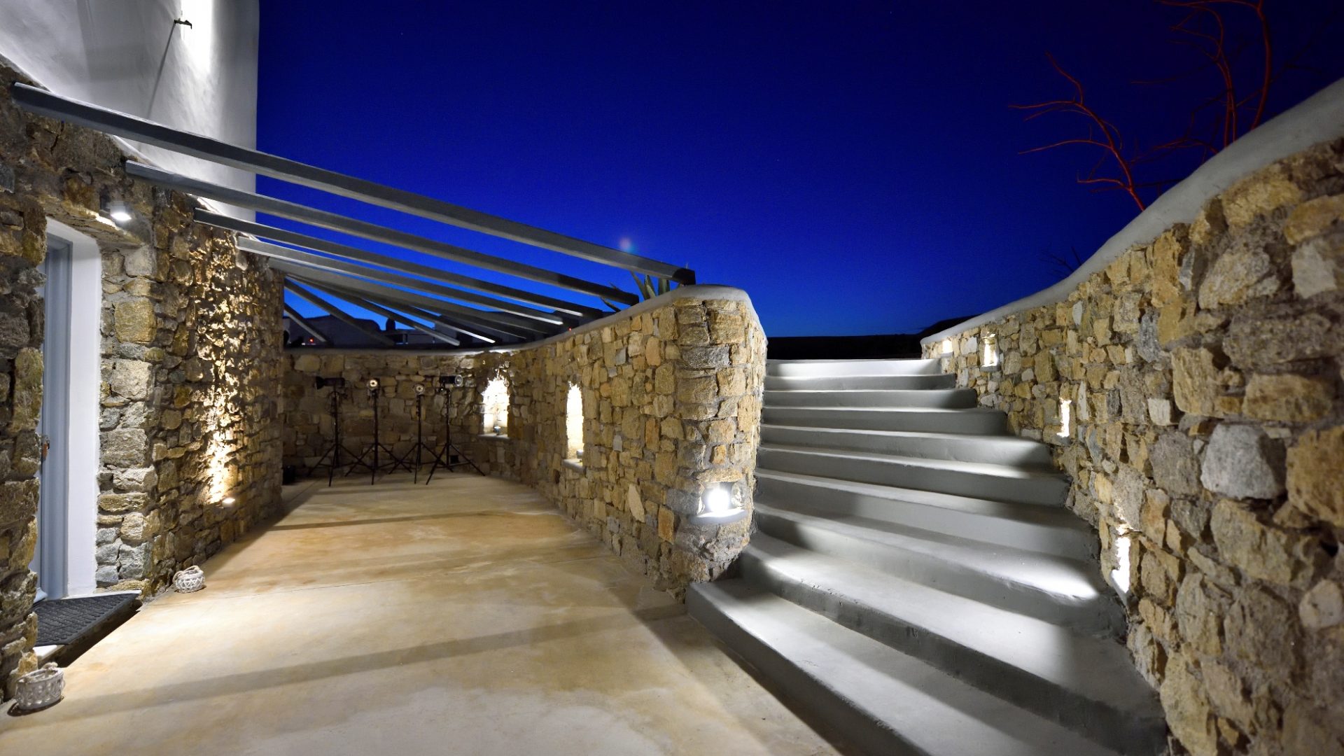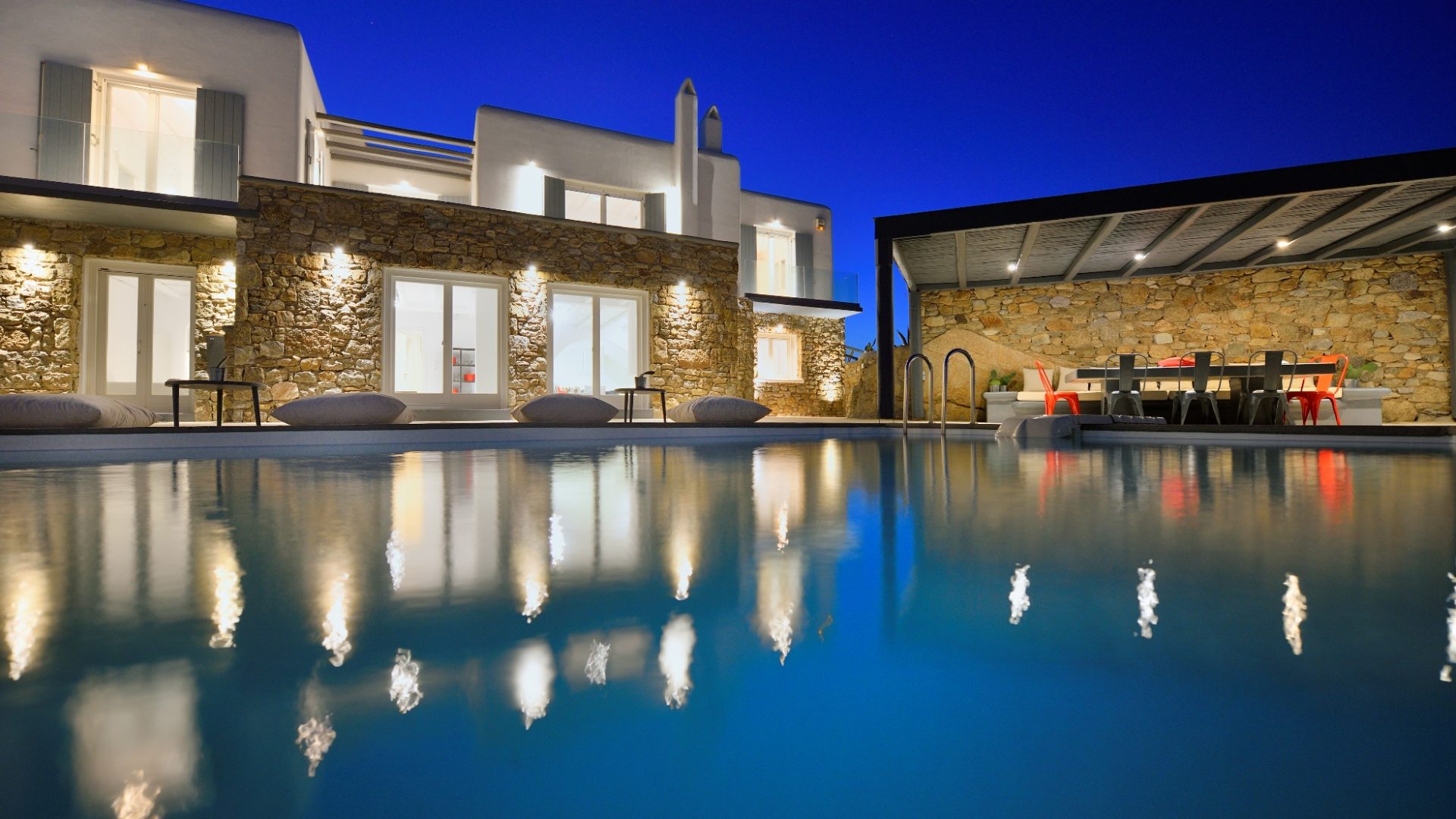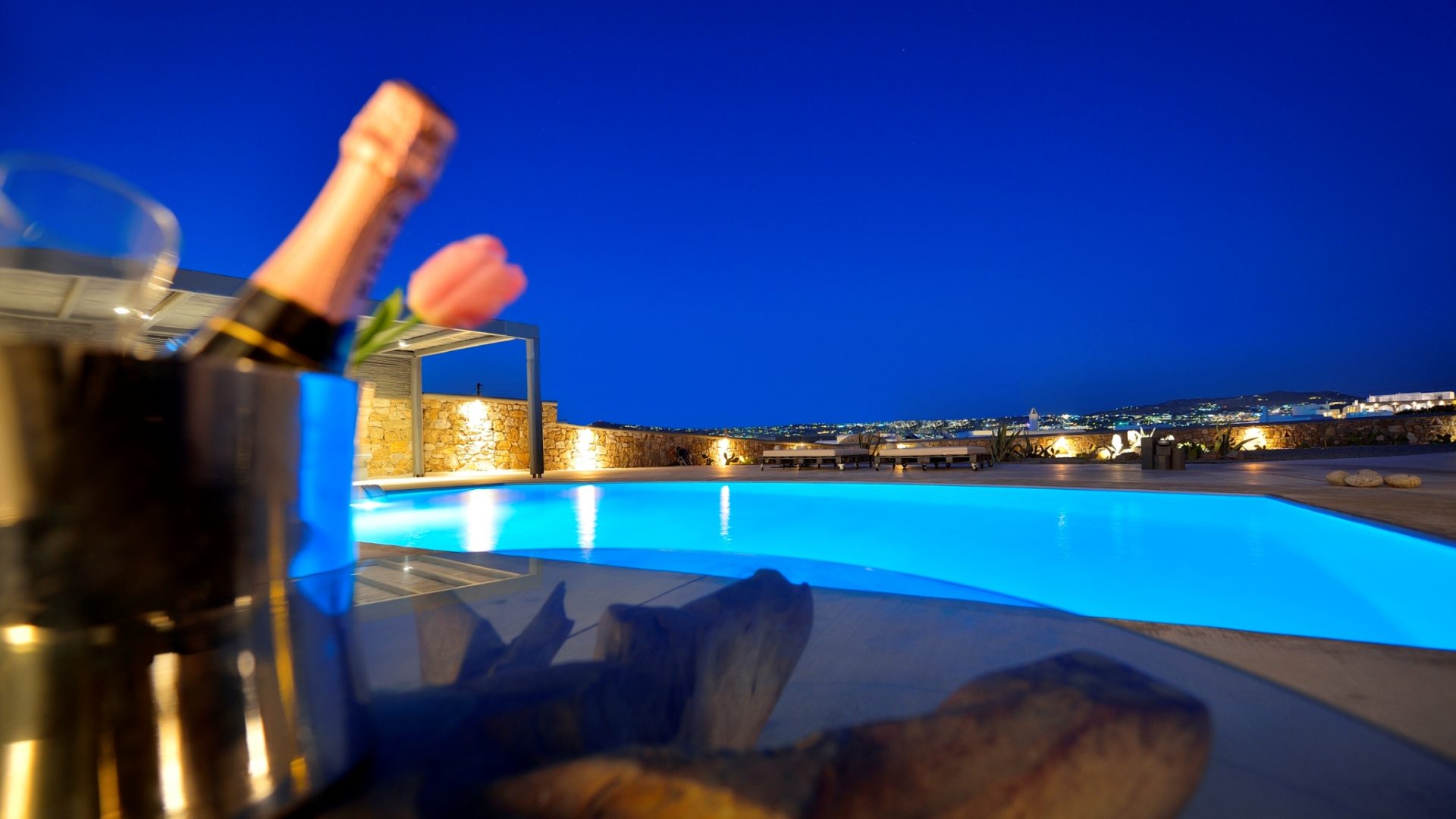 Diamond Villa is a 12-bedroom luxurious villa, located in Kanalia, only 150 meters from the sea. Built in a residence site of 4.800 m2, it has a view of Mykonos Town, Hora and Tinos Island. The villa features 12 bedrooms, 12 bathrooms, 1 extra sitting room with a sofa bed , 3 WC and large indoor and outdoor spaces.