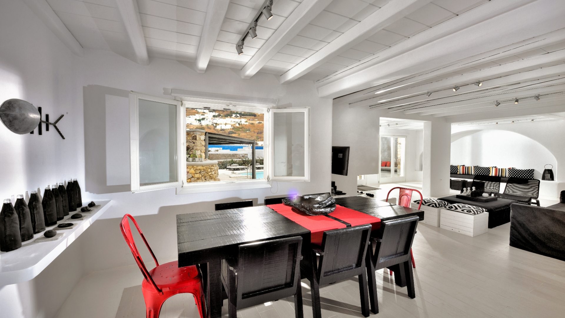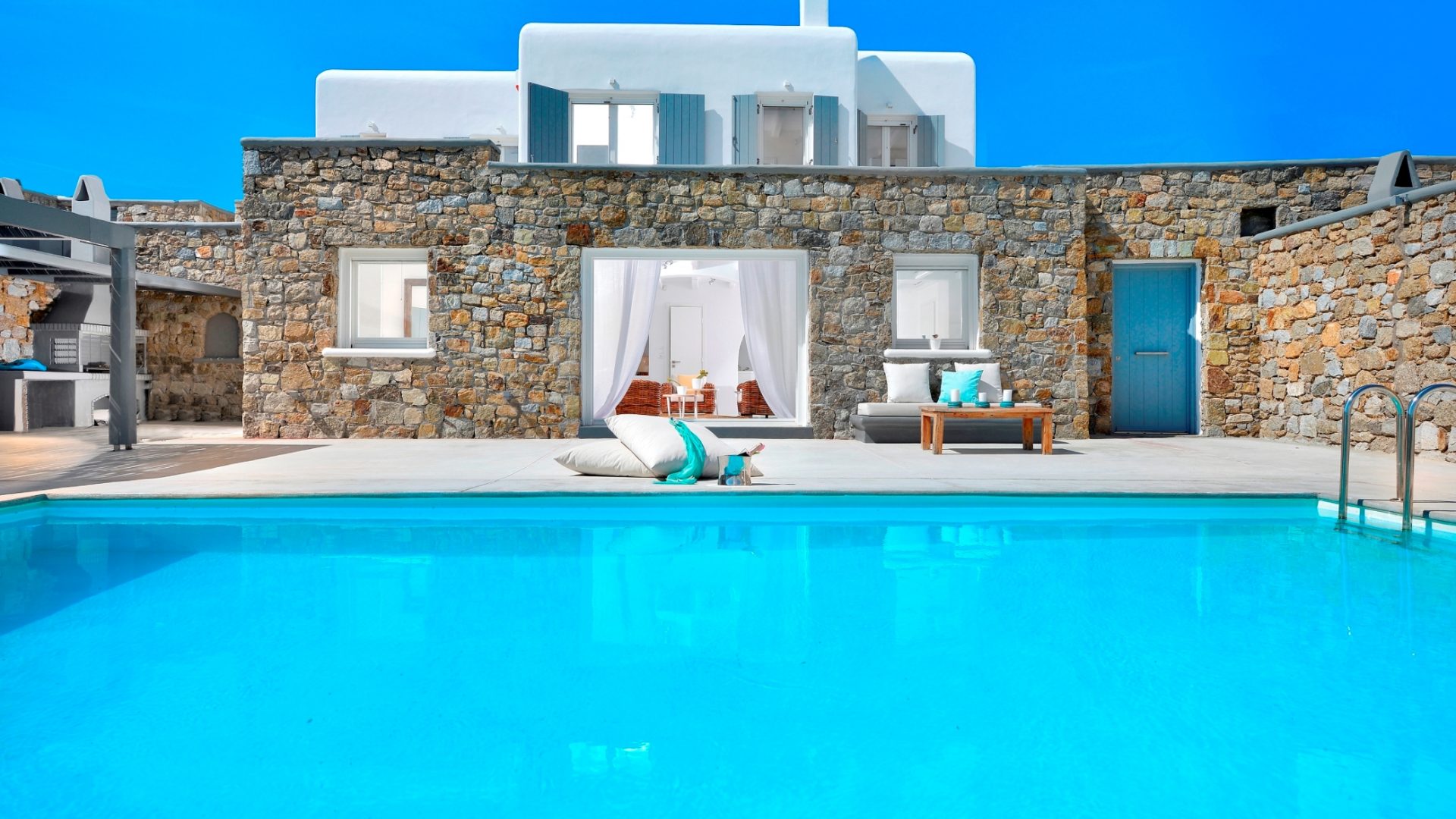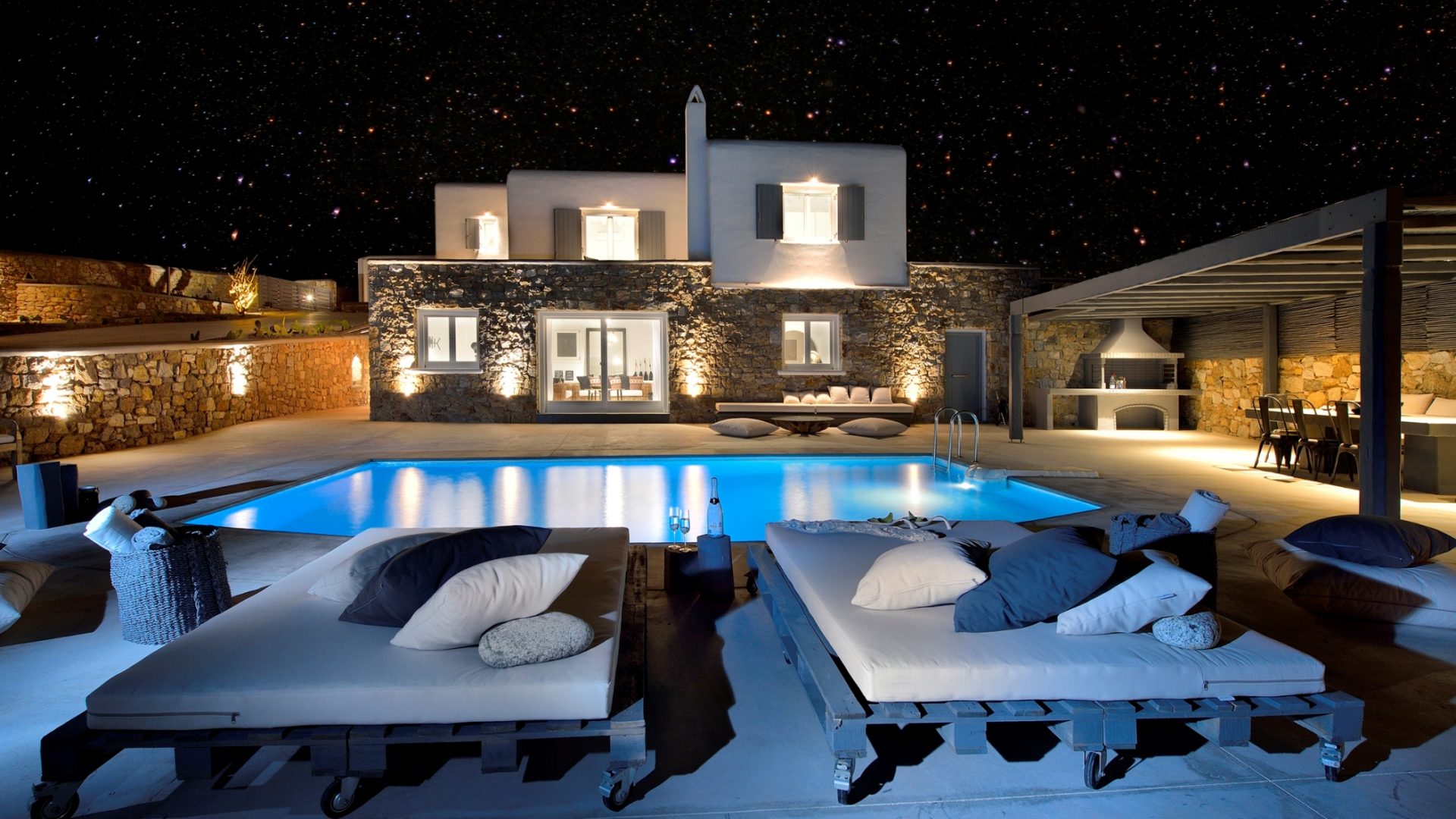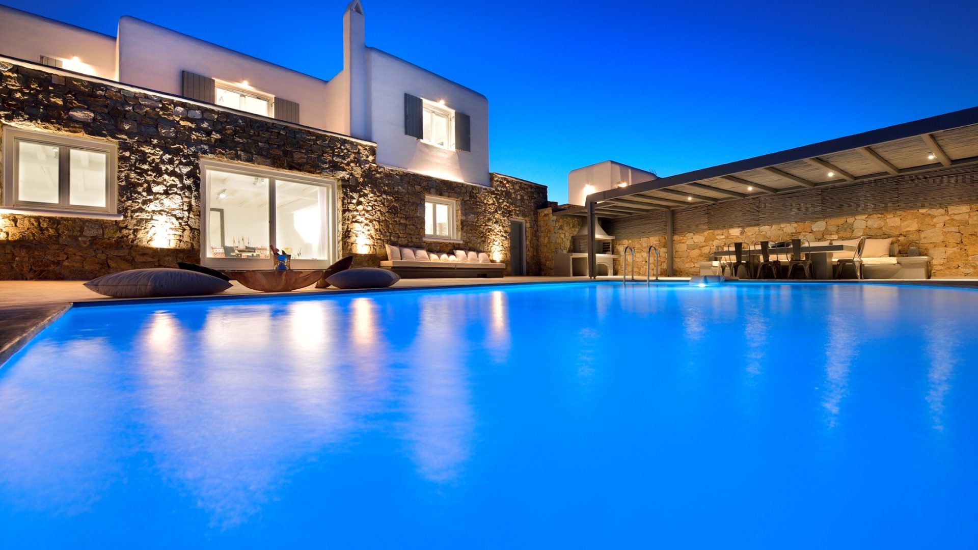 Diamond Villa is a 12-bedroom luxurious villa, located in Kanalia, only 150 meters from the sea. Built in a residence site of 4.800 m2, it has a view of Mykonos Town, Hora and Tinos Island. The villa features 12 bedrooms, 12 bathrooms, 1 extra sitting room with a sofa bed , 3 WC and large indoor and outdoor spaces.