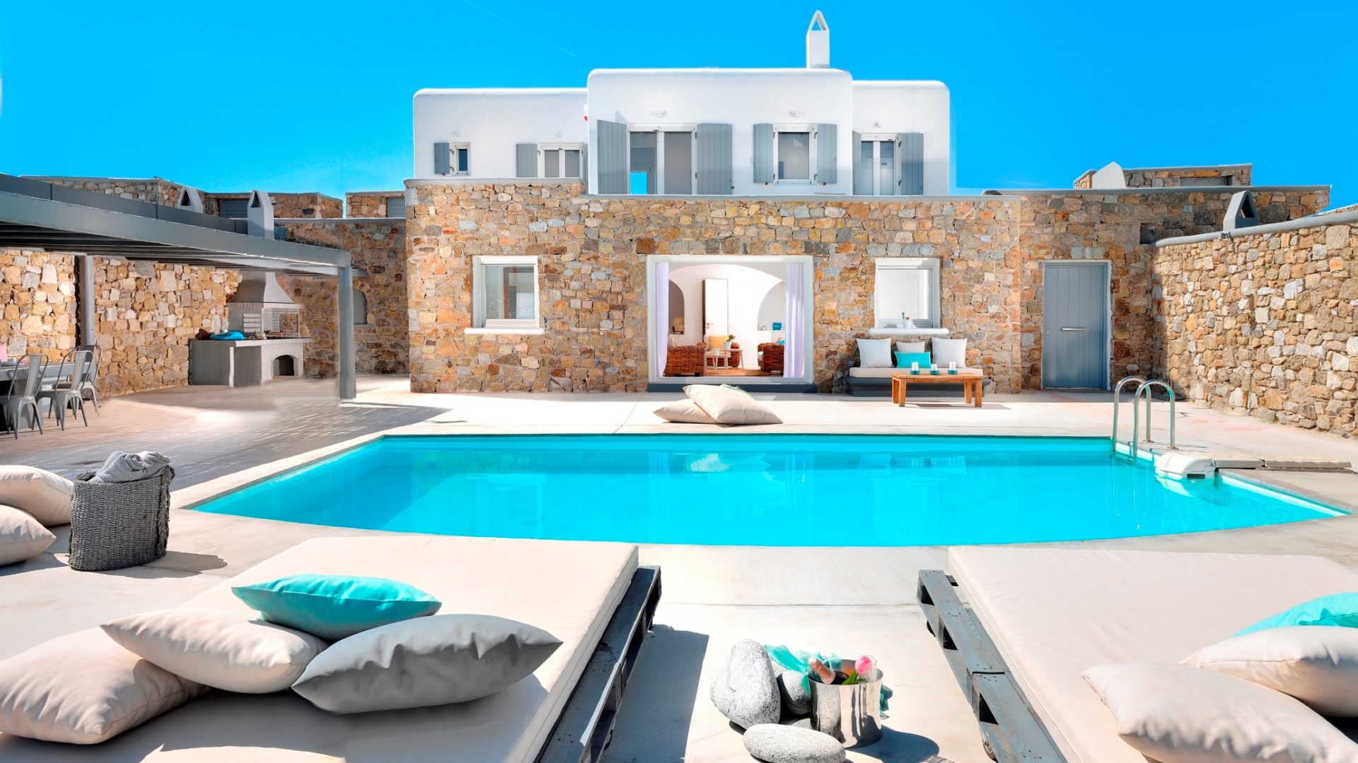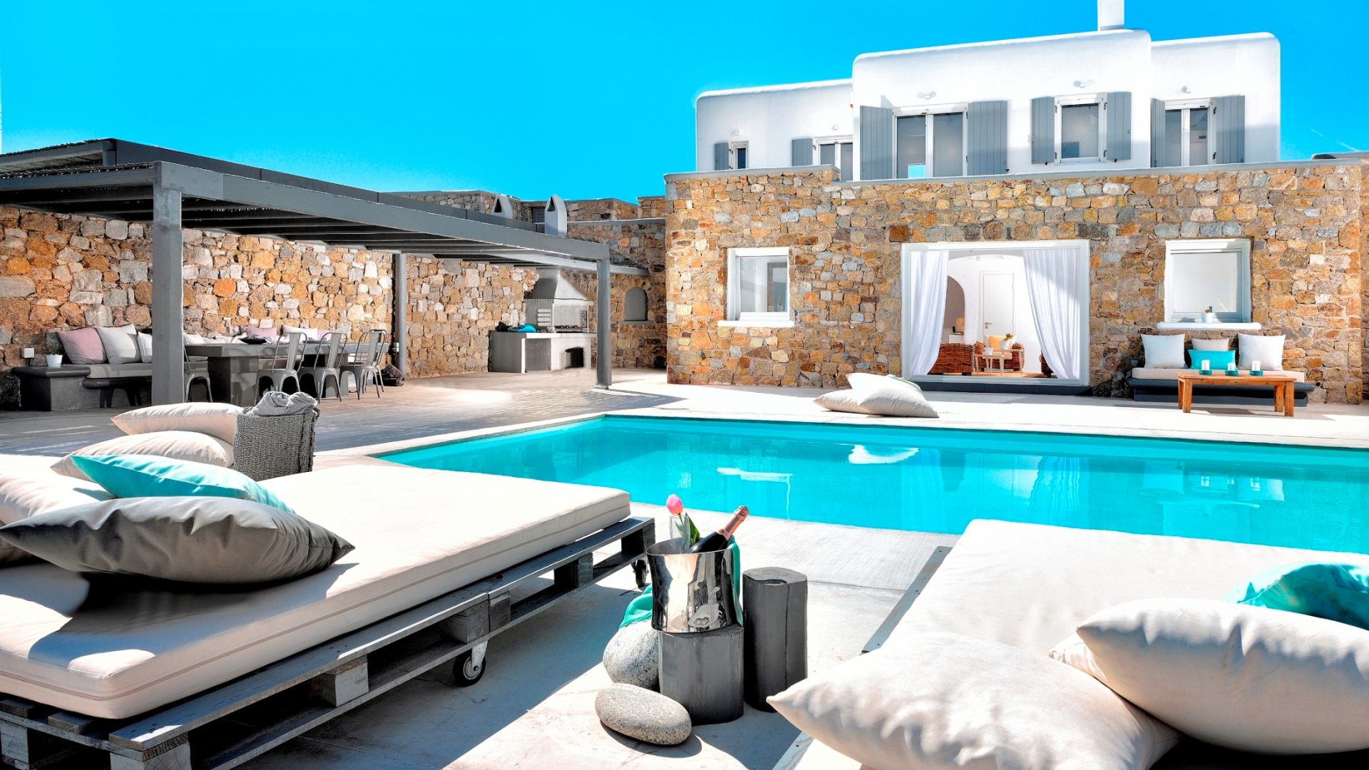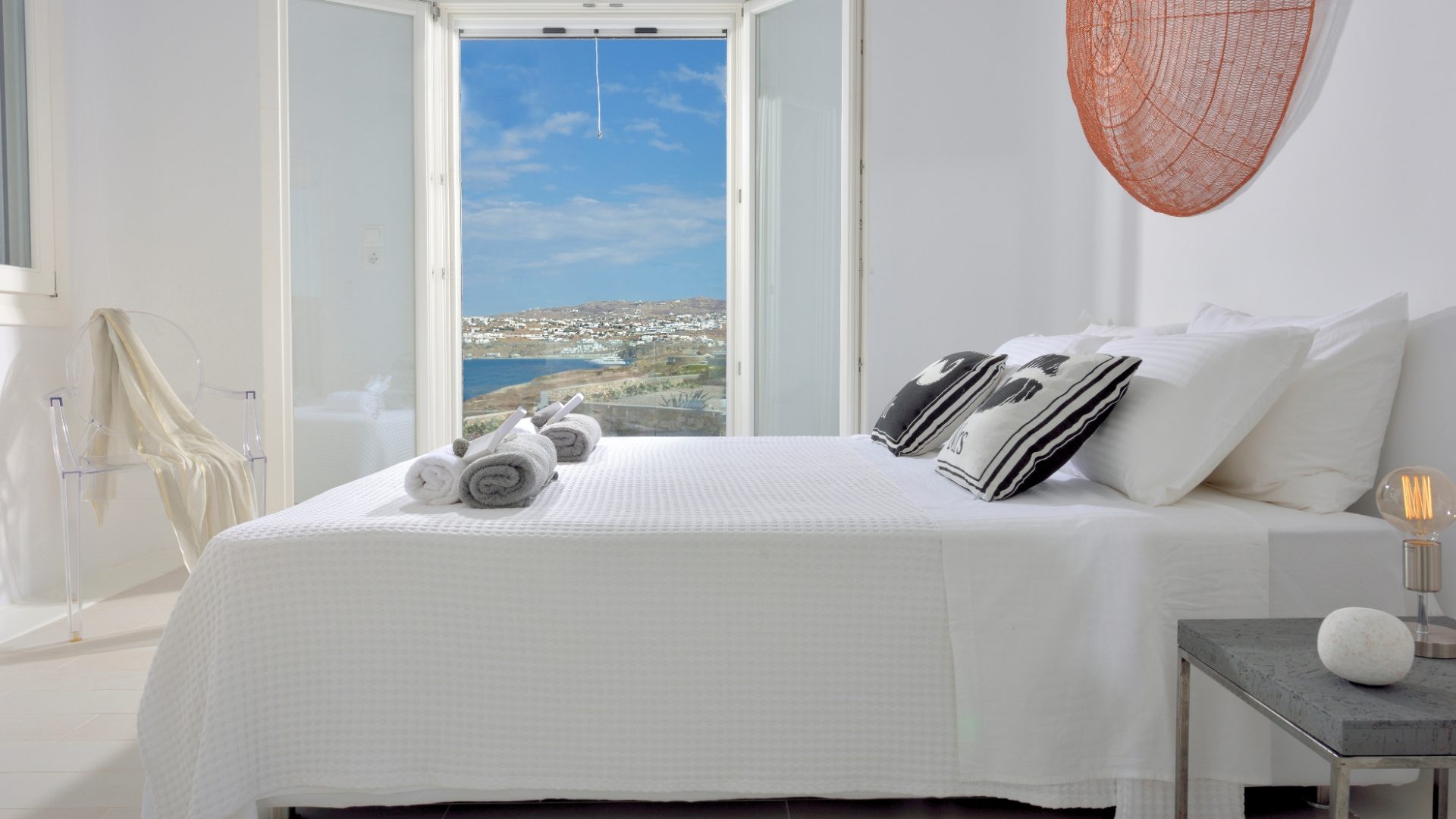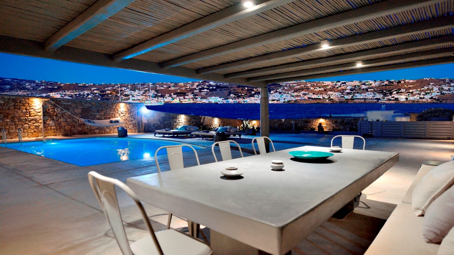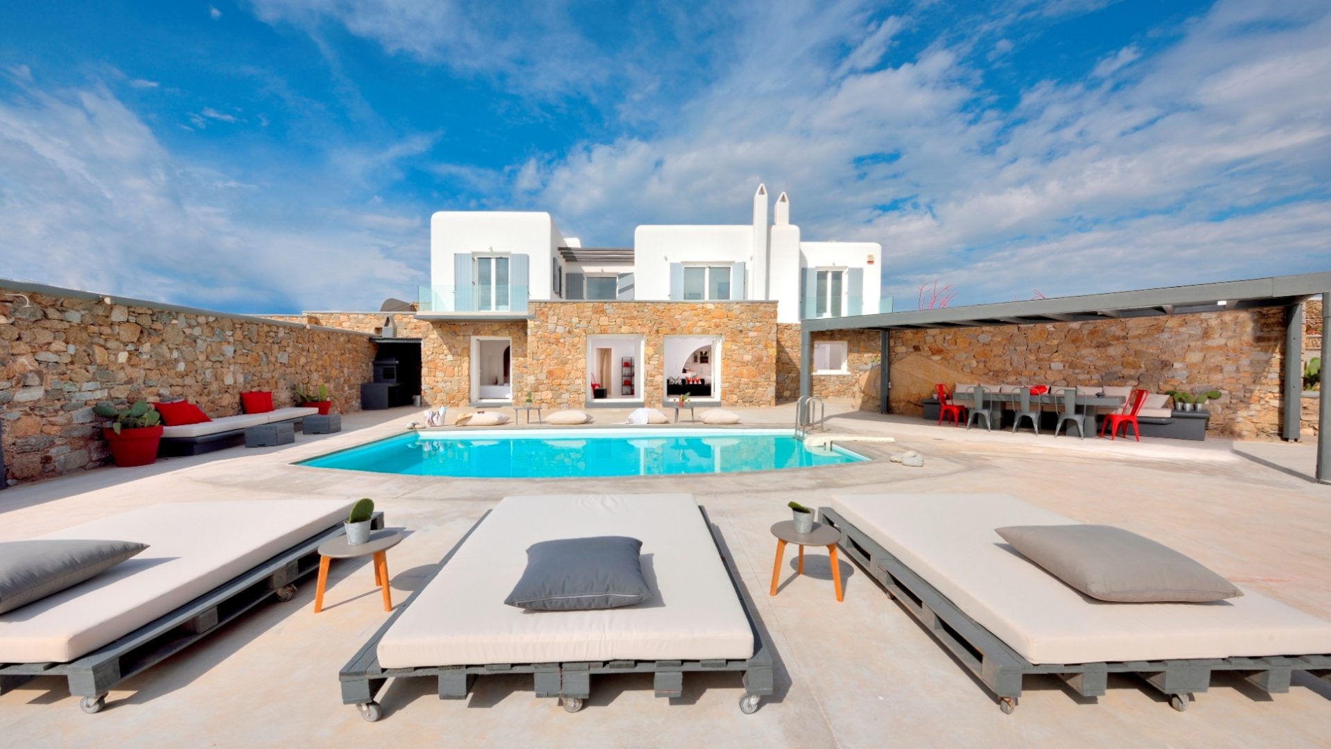 Diamond Villa is a 12-bedroom luxurious villa, located in Kanalia, only 150 meters from the sea. Built in a residence site of 4.800 m2, it has a view of Mykonos Town, Hora and Tinos Island. The villa features 12 bedrooms, 12 bathrooms, 1 extra sitting room with a sofa bed , 3 WC and large indoor and outdoor spaces.