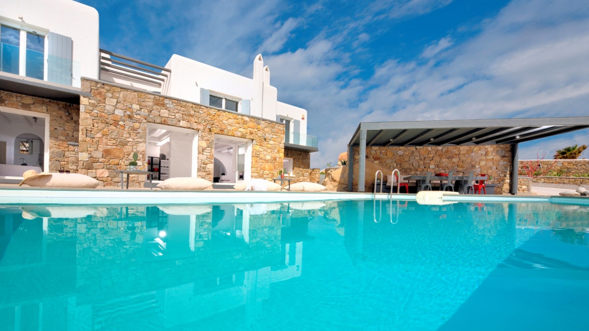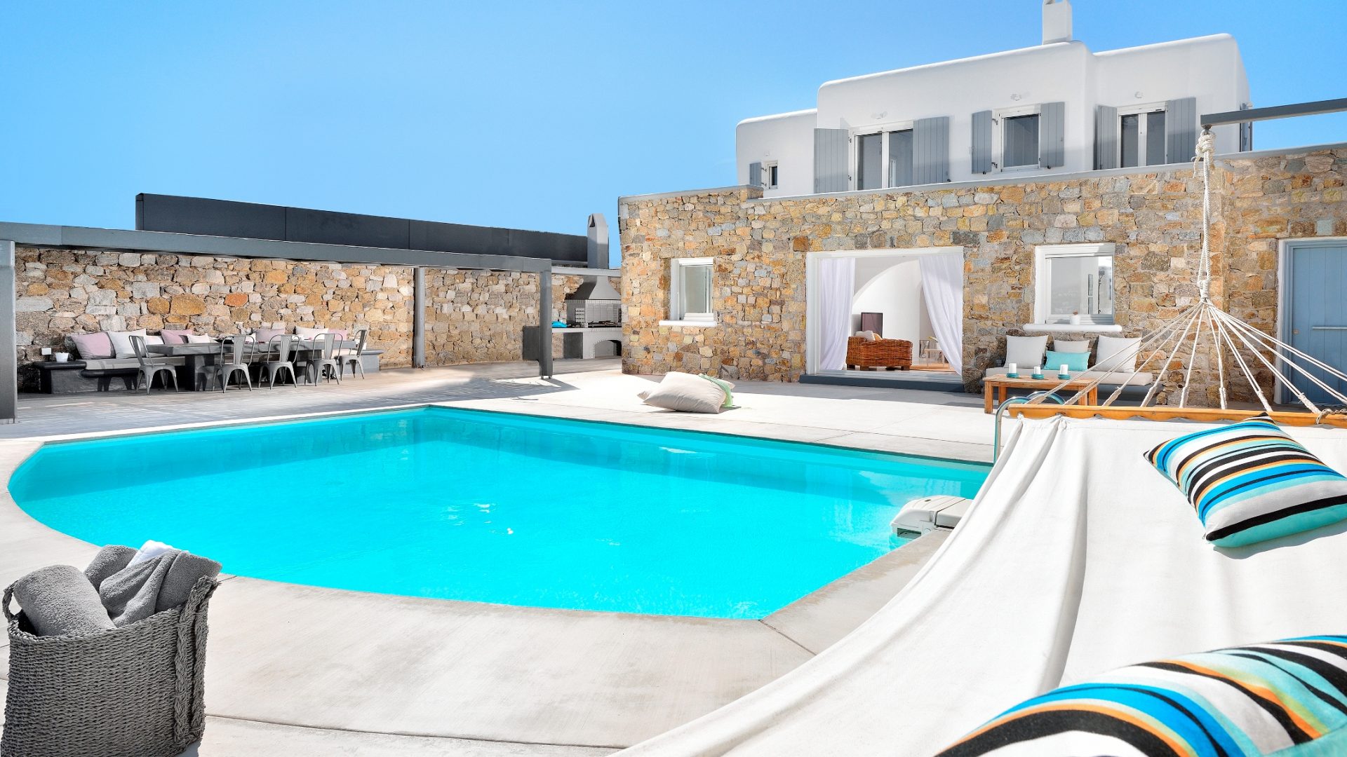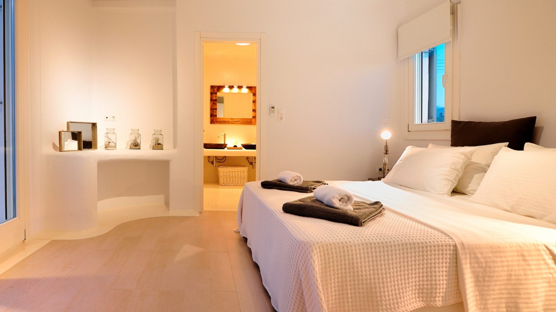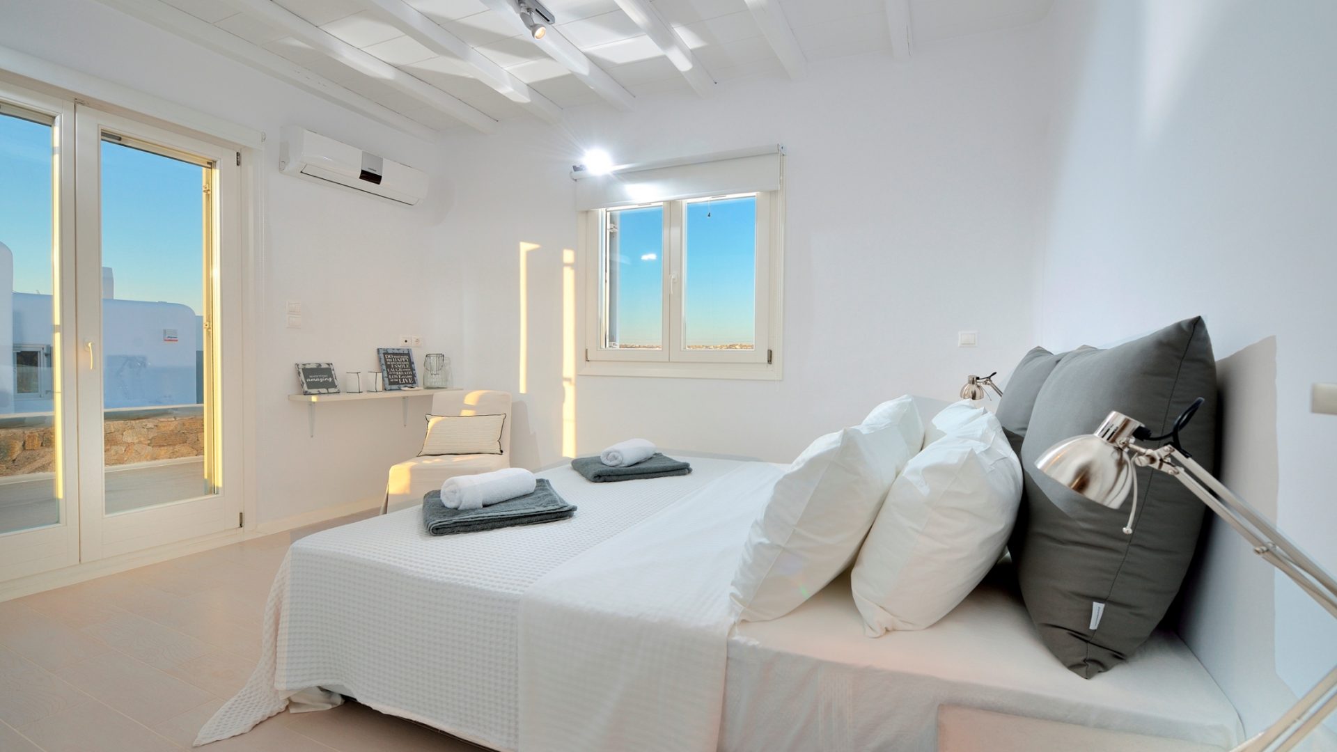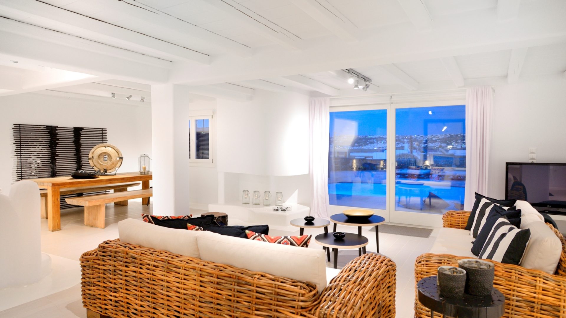Diamond Villa is a 12-bedroom luxurious villa, located in Kanalia, only 150 meters from the sea. Built in a residence site of 4.800 m2, it has a view of Mykonos Town, Hora and Tinos Island. The villa features 12 bedrooms, 12 bathrooms, 1 extra sitting room with a sofa bed , 3 WC and large indoor and outdoor spaces.