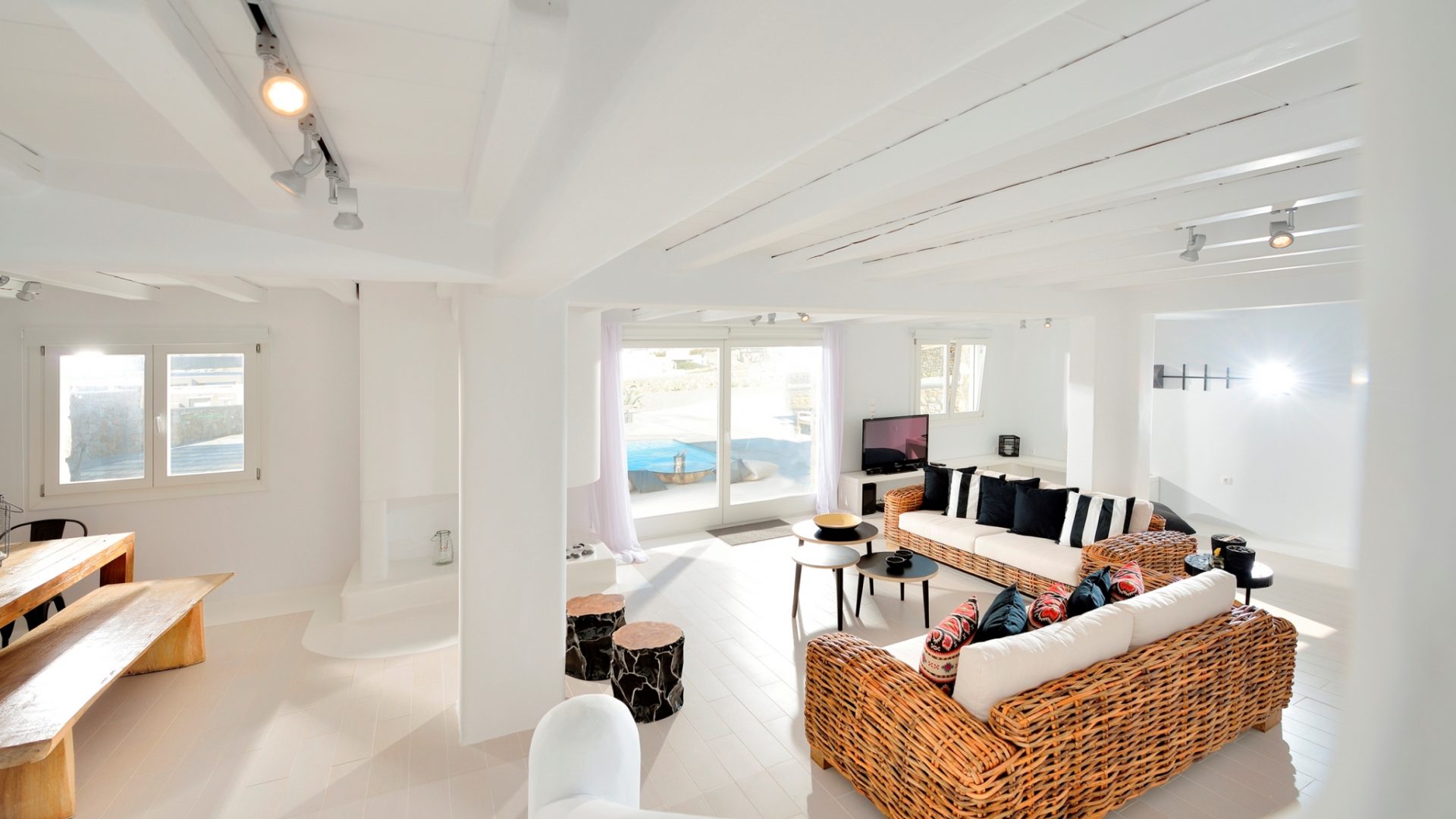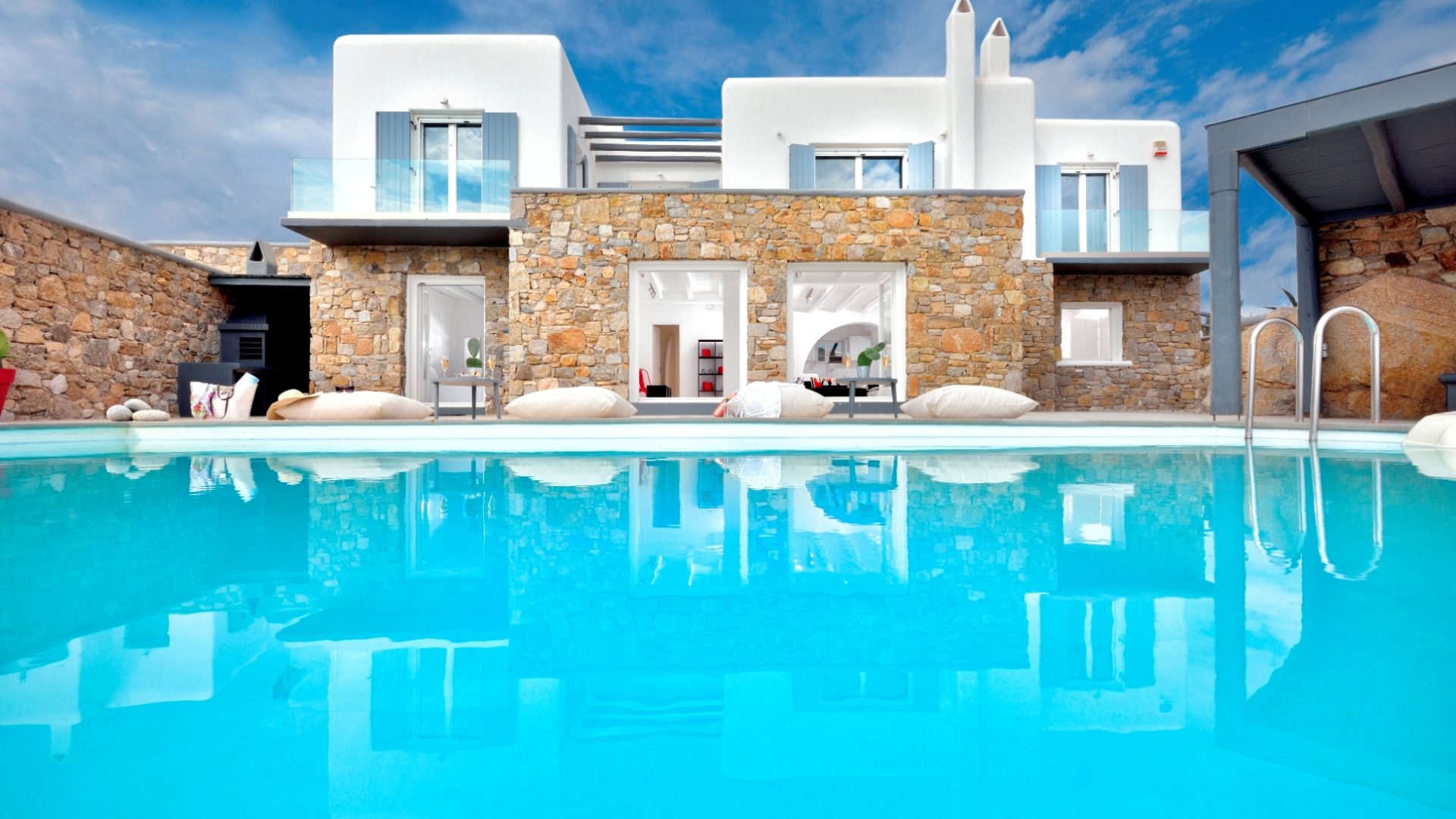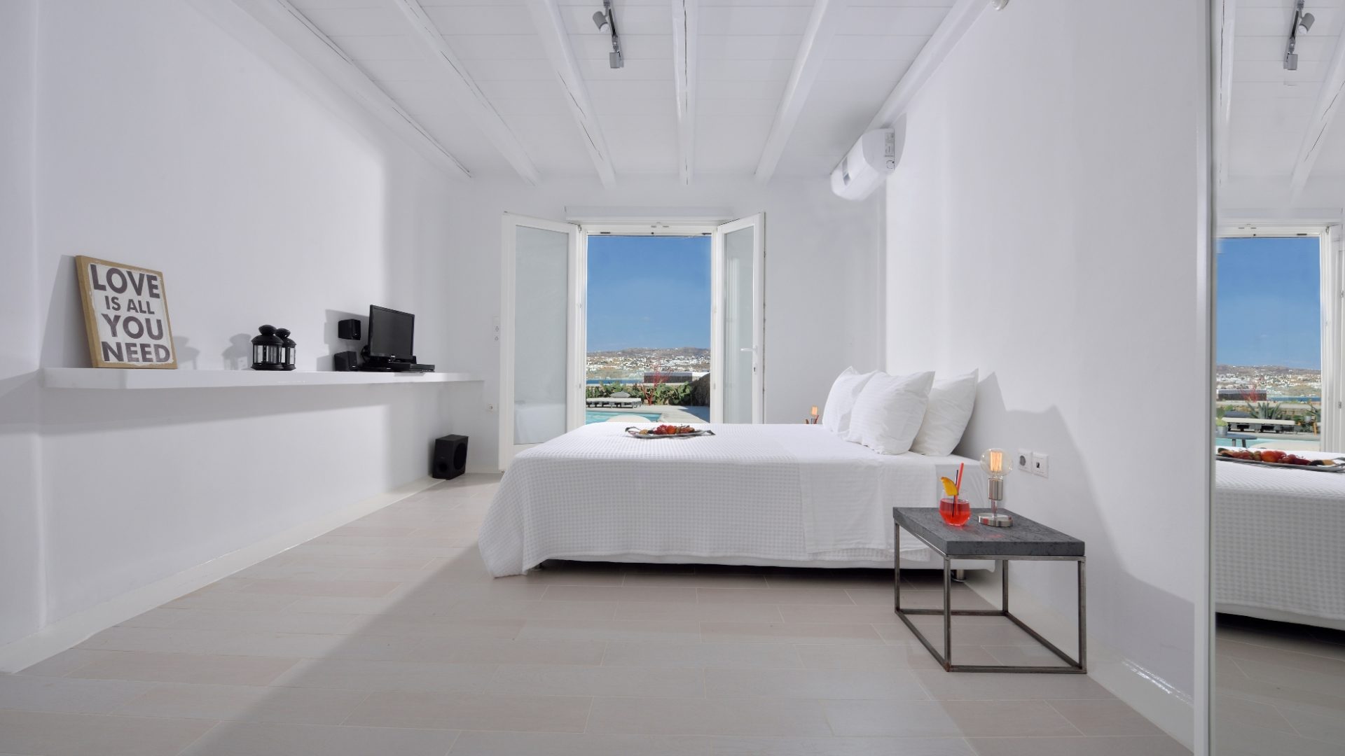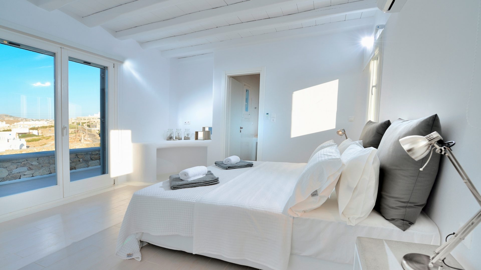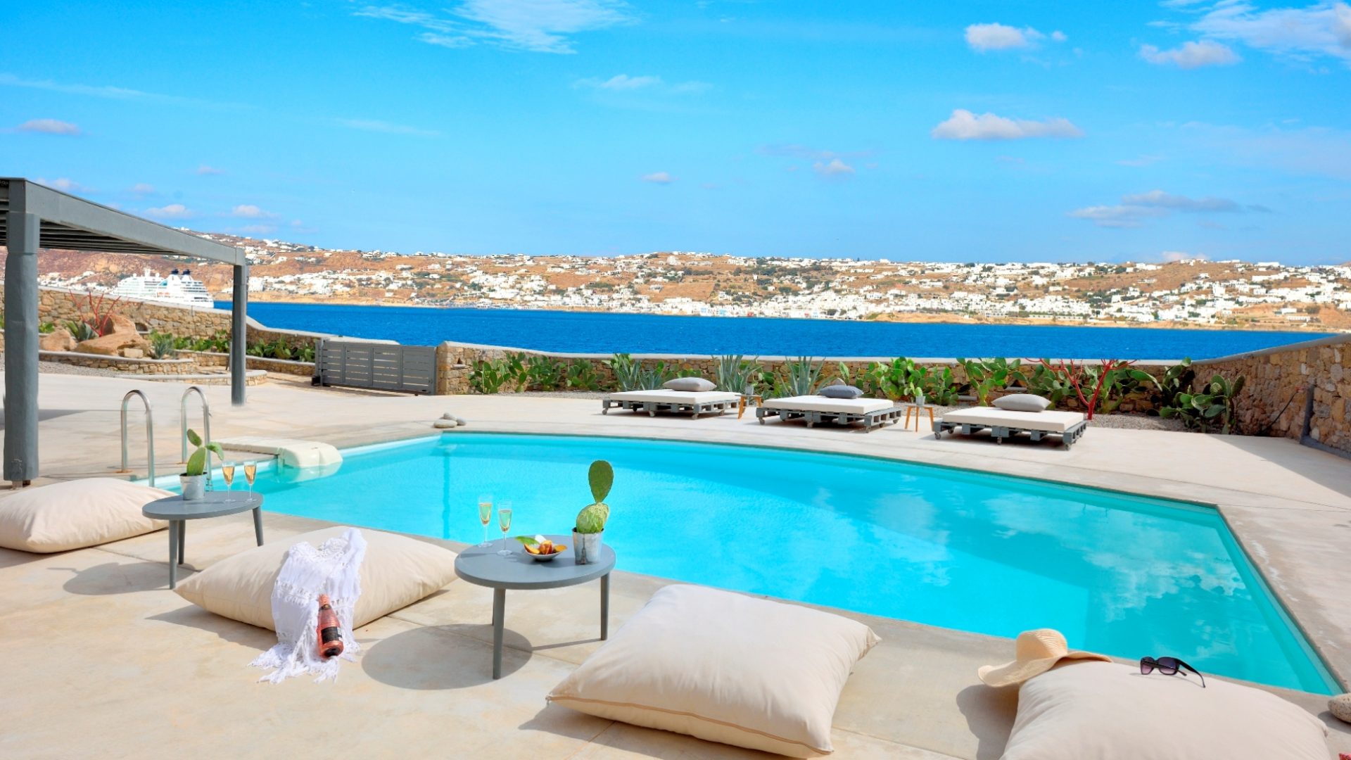 Diamond Villa is a 12-bedroom luxurious villa, located in Kanalia, only 150 meters from the sea. Built in a residence site of 4.800 m2, it has a view of Mykonos Town, Hora and Tinos Island. The villa features 12 bedrooms, 12 bathrooms, 1 extra sitting room with a sofa bed , 3 WC and large indoor and outdoor spaces.