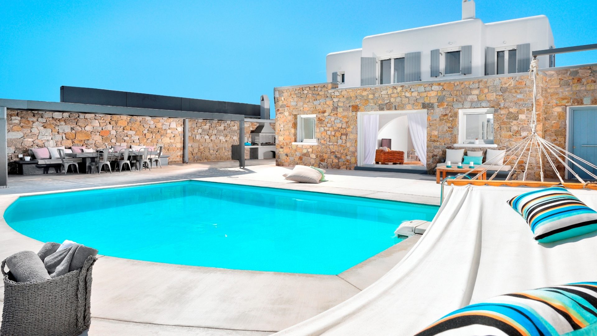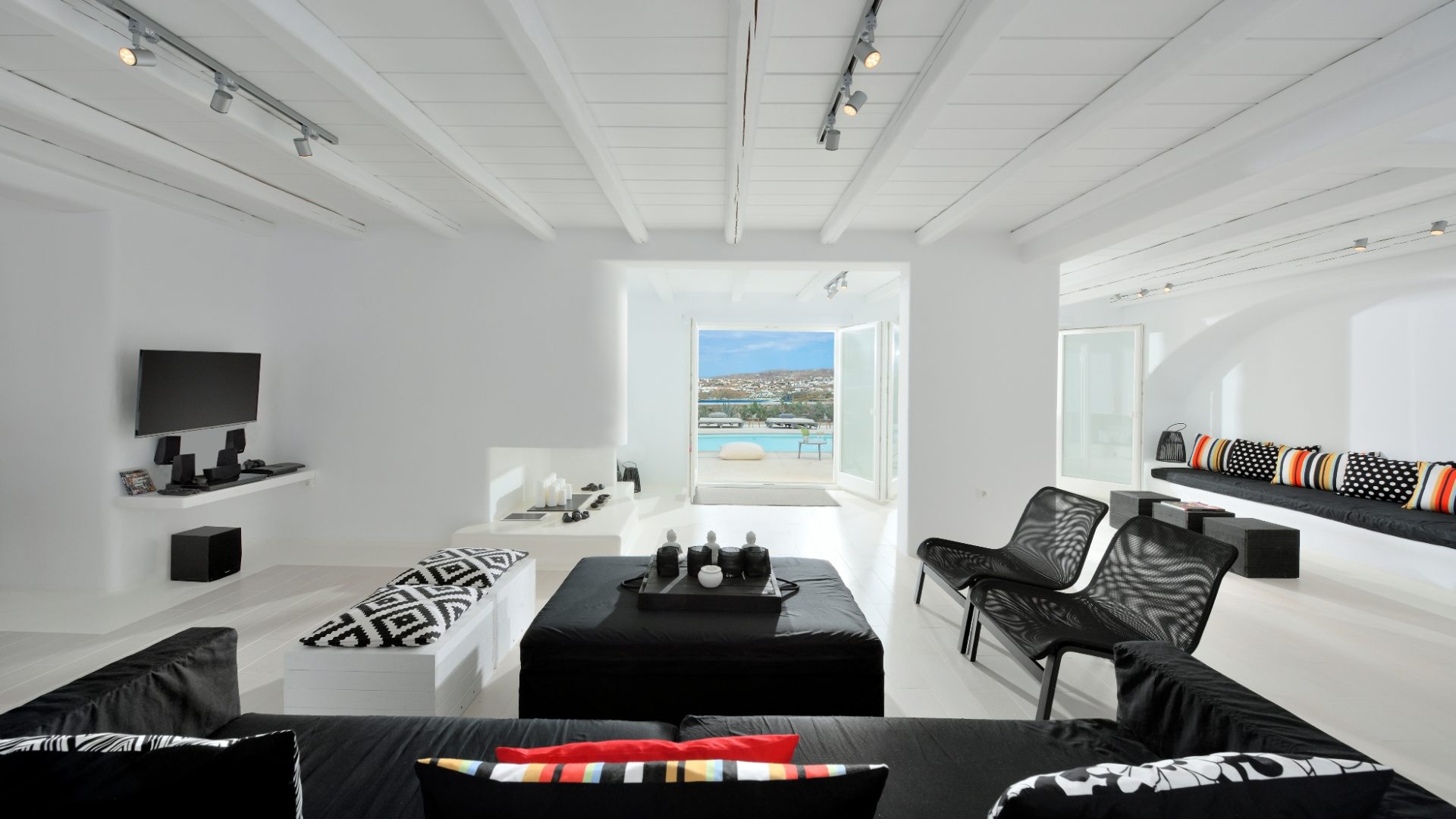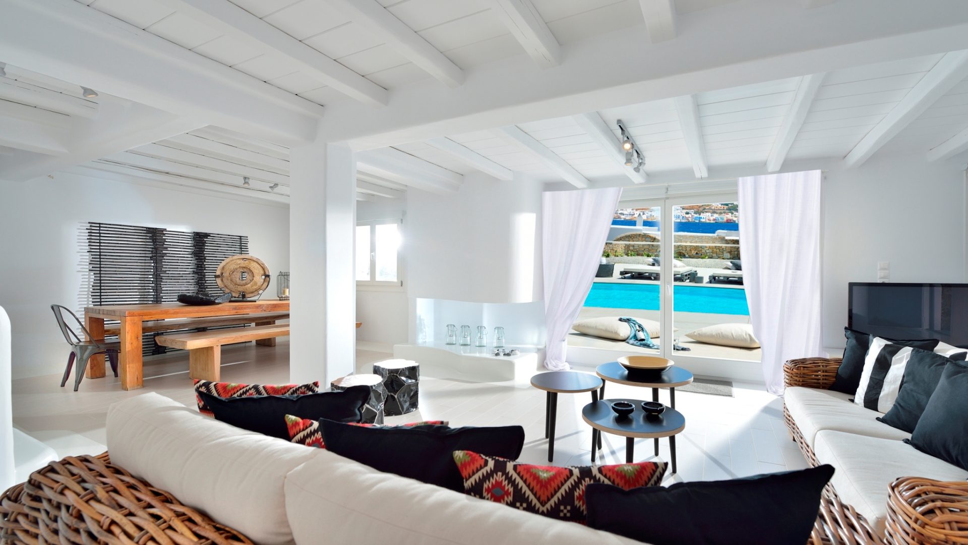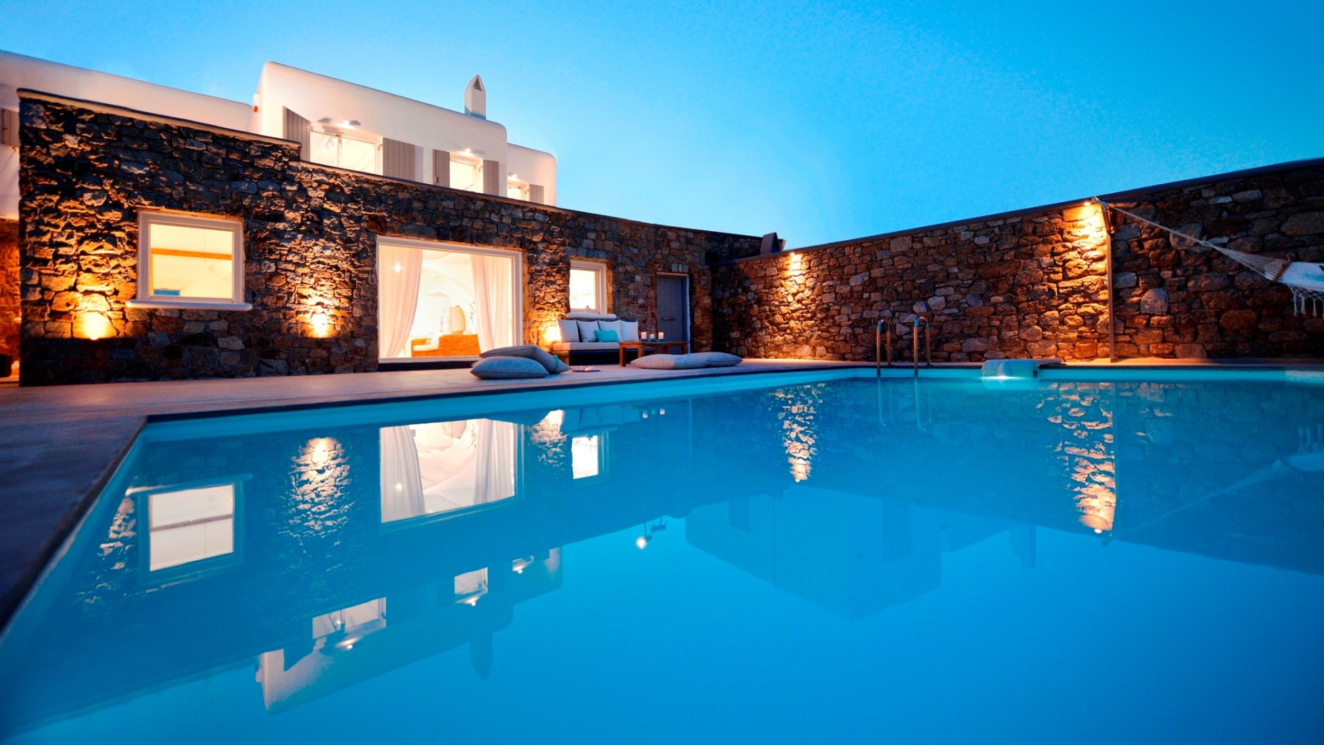 Diamond Villa is a 12-bedroom luxurious villa, located in Kanalia, only 150 meters from the sea. Built in a residence site of 4.800 m2, it has a view of Mykonos Town, Hora and Tinos Island. The villa features 12 bedrooms, 12 bathrooms, 1 extra sitting room with a sofa bed , 3 WC and large indoor and outdoor spaces.