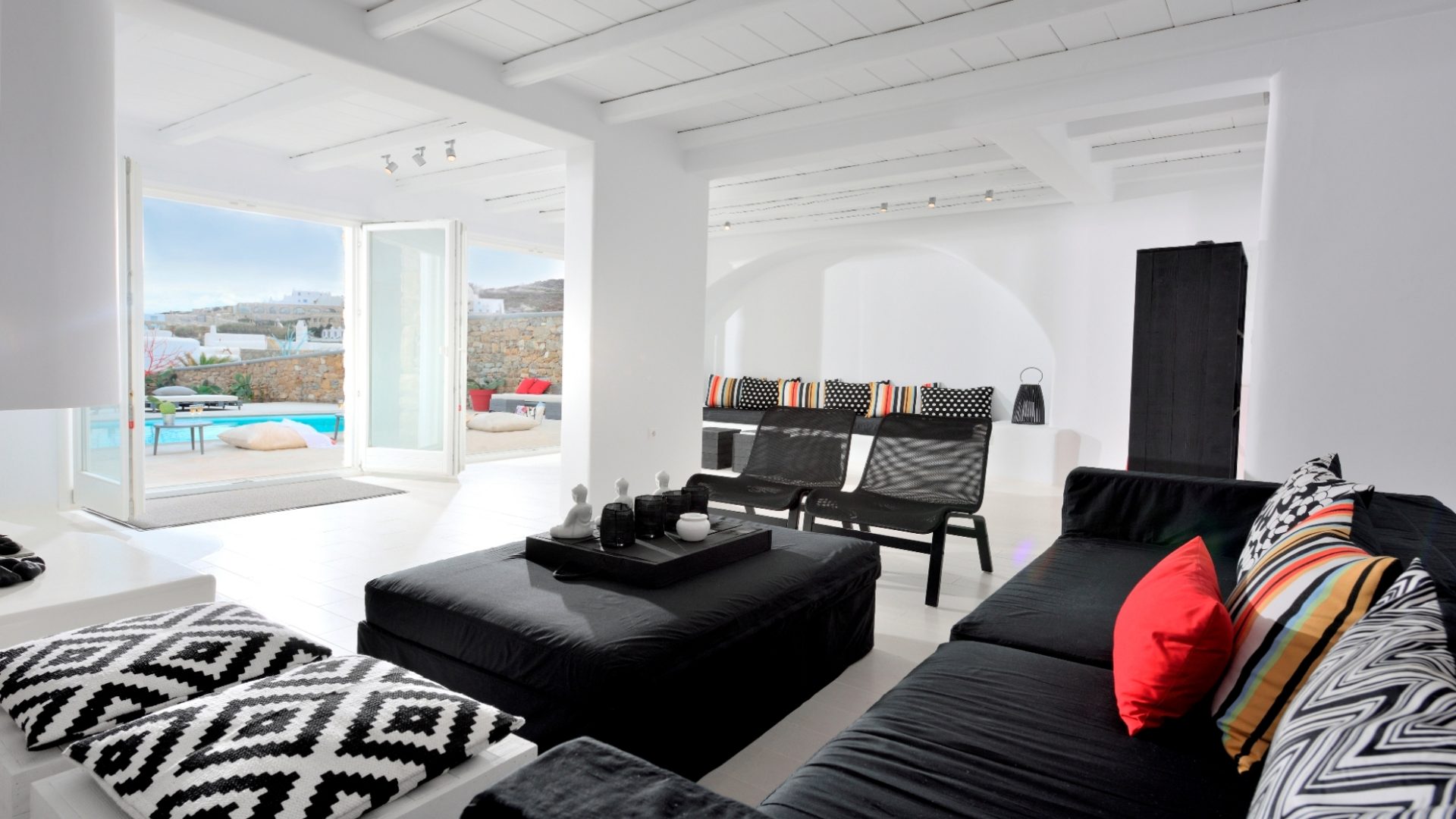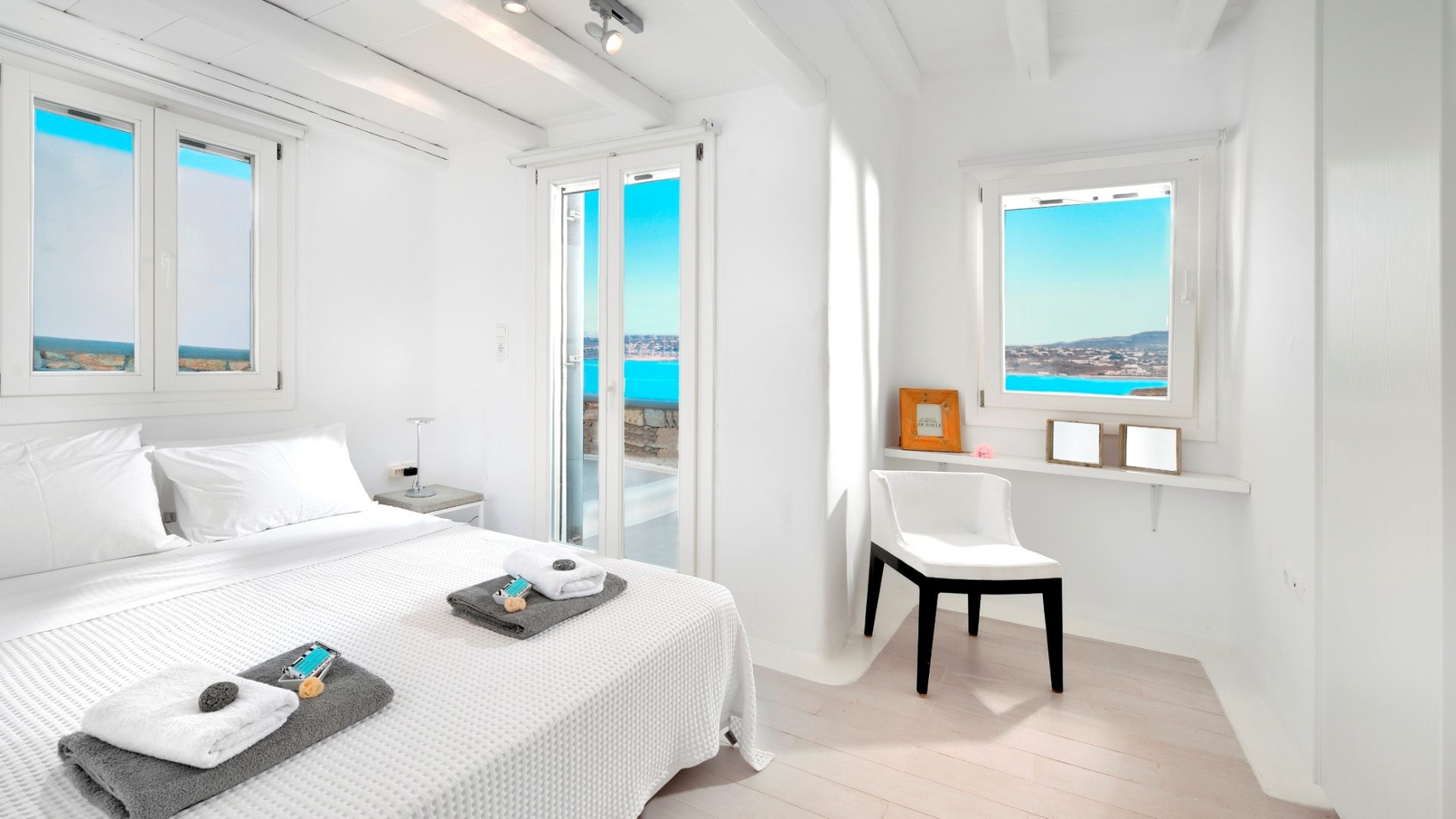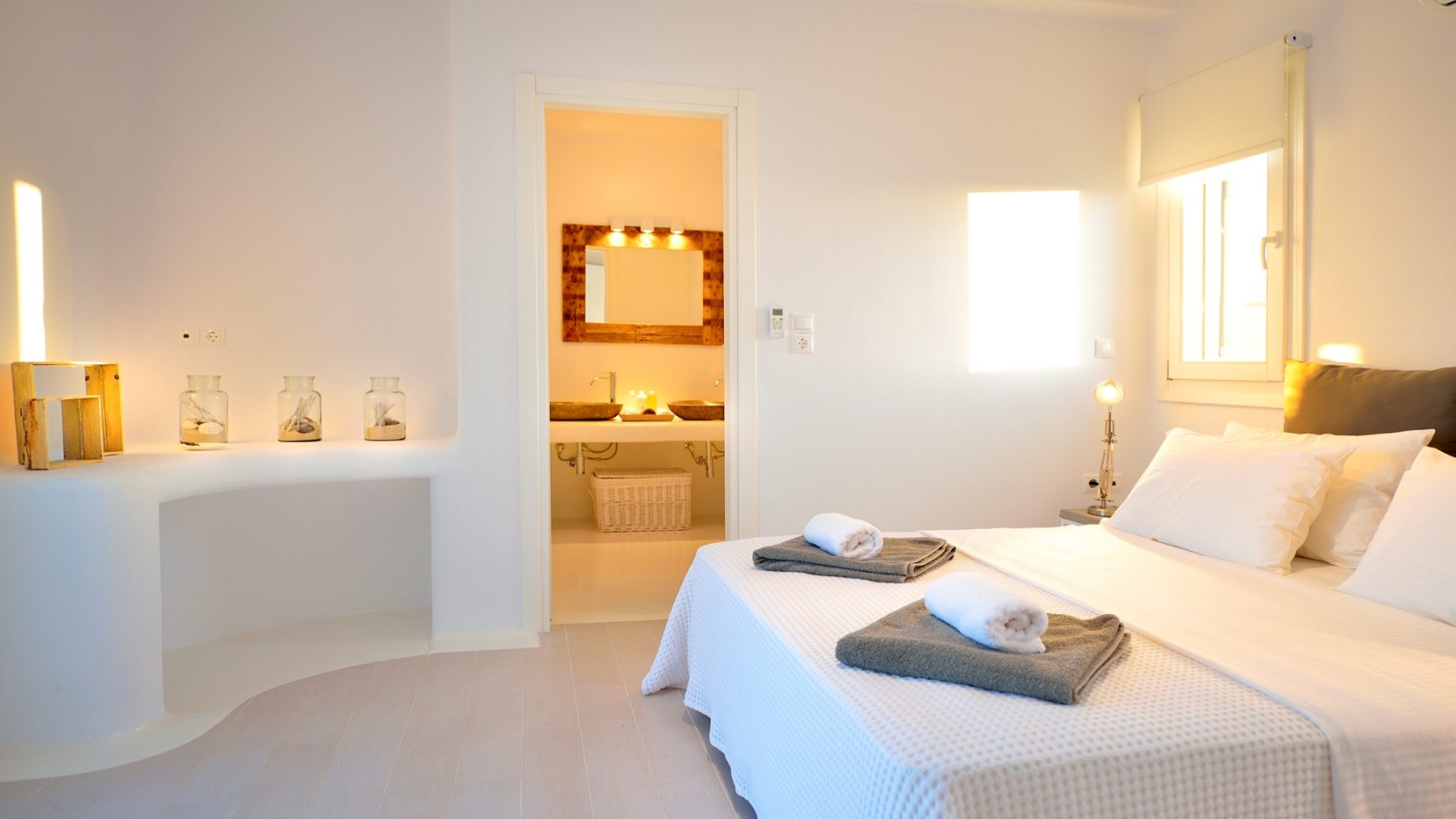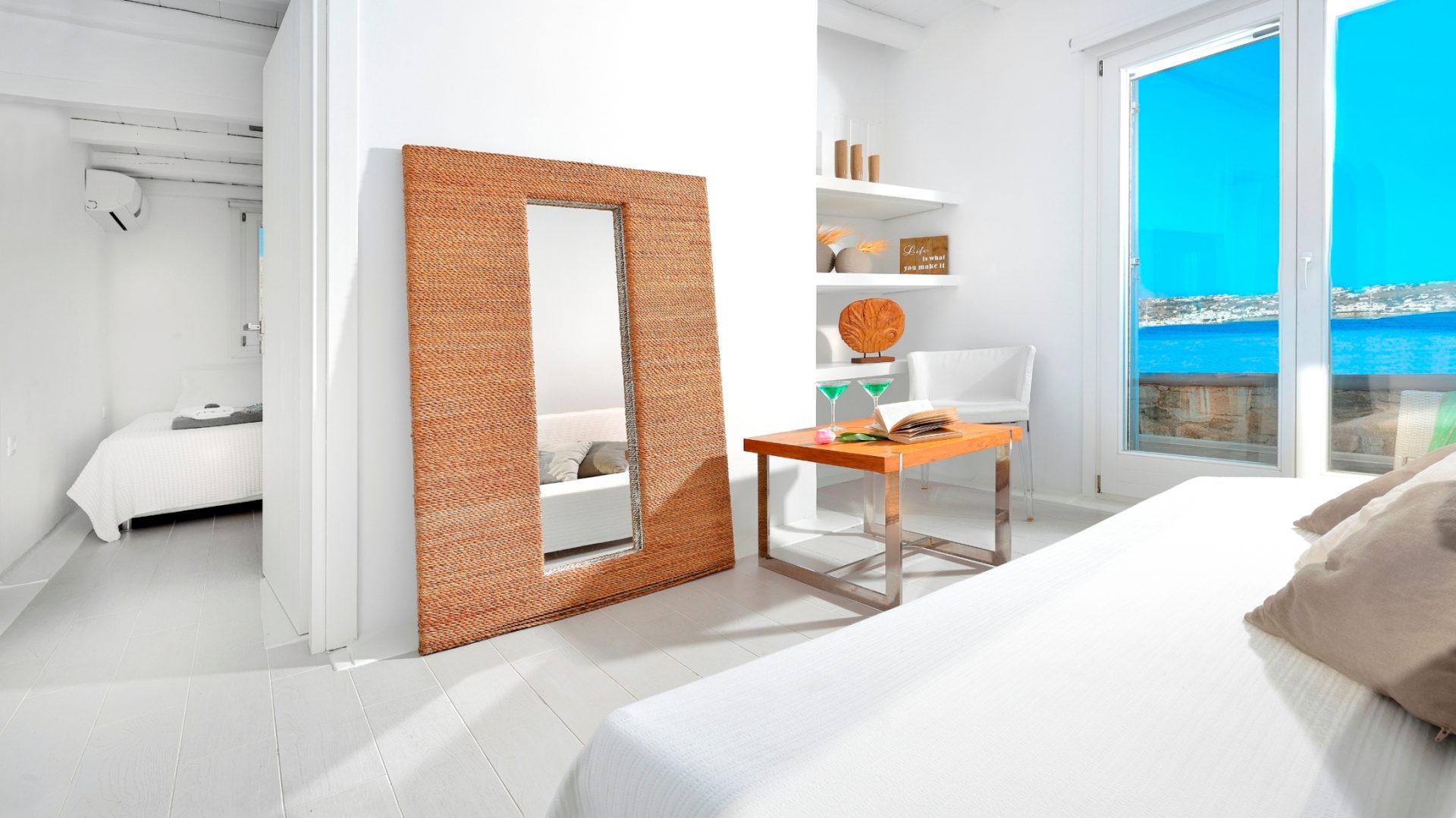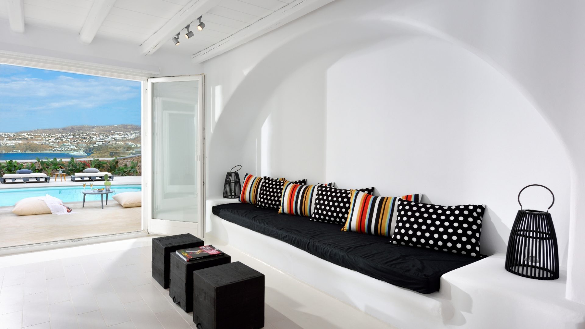 Diamond Villa is a 12-bedroom luxurious villa, located in Kanalia, only 150 meters from the sea. Built in a residence site of 4.800 m2, it has a view of Mykonos Town, Hora and Tinos Island. The villa features 12 bedrooms, 12 bathrooms, 1 extra sitting room with a sofa bed , 3 WC and large indoor and outdoor spaces.