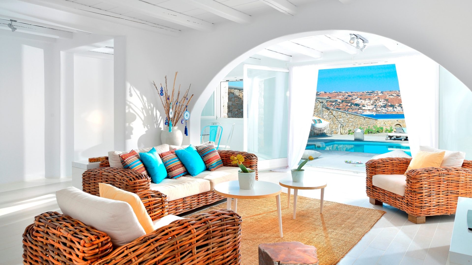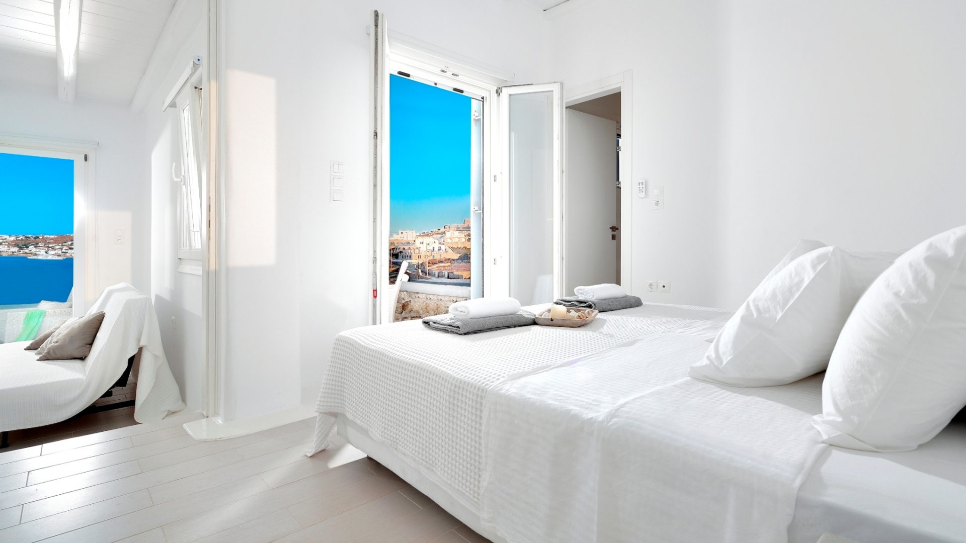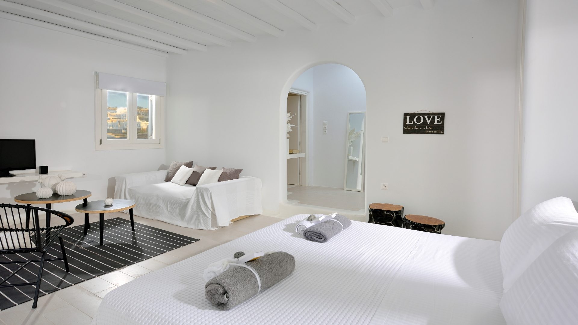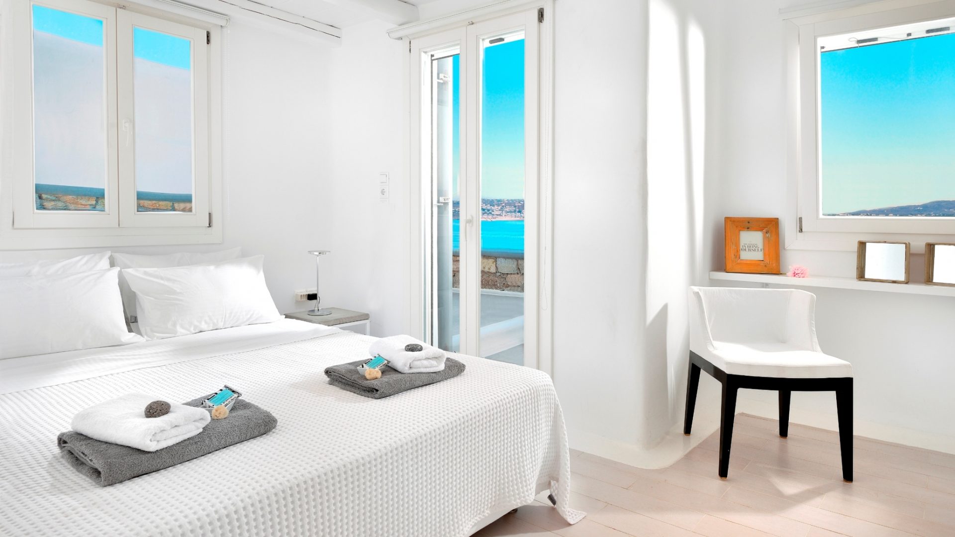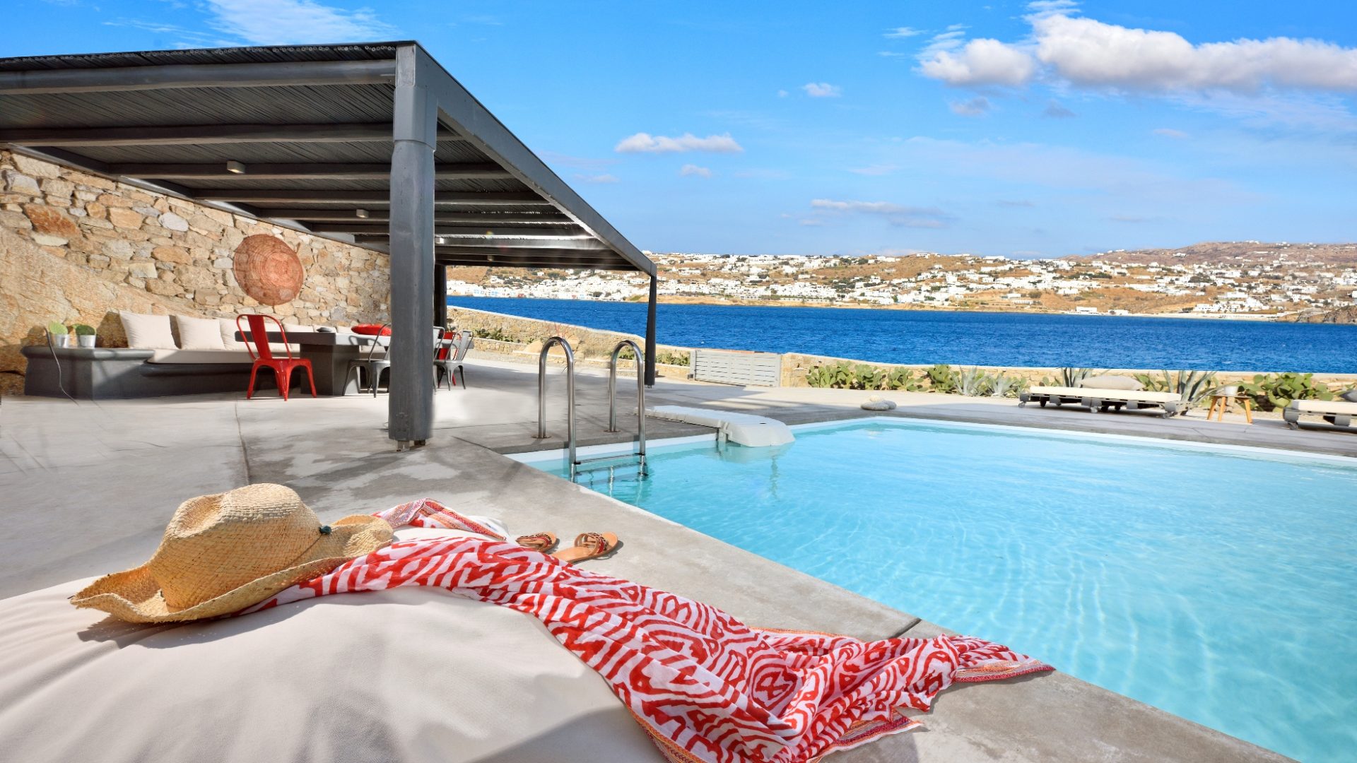 Diamond Villa is a 12-bedroom luxurious villa, located in Kanalia, only 150 meters from the sea. Built in a residence site of 4.800 m2, it has a view of Mykonos Town, Hora and Tinos Island. The villa features 12 bedrooms, 12 bathrooms, 1 extra sitting room with a sofa bed , 3 WC and large indoor and outdoor spaces.