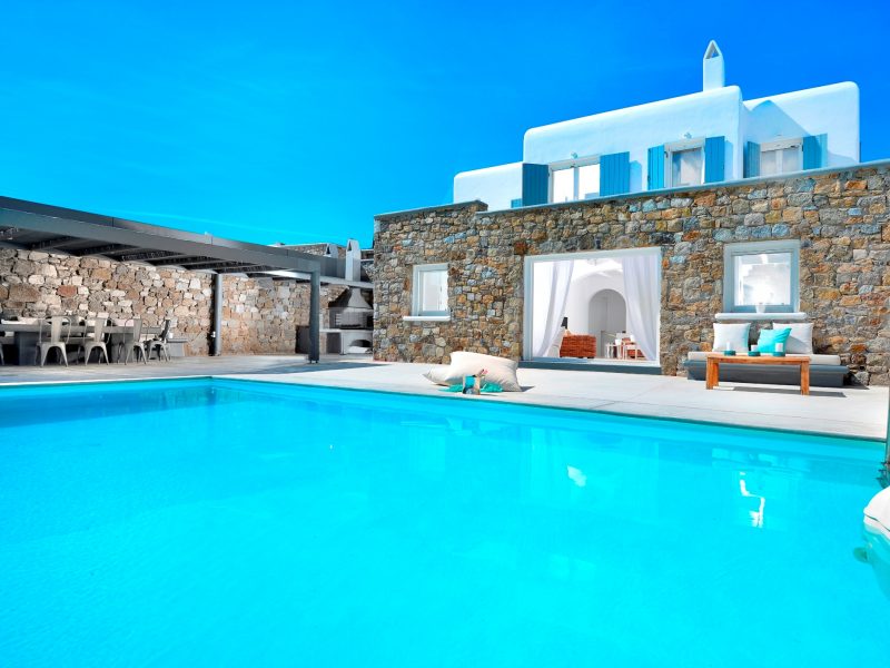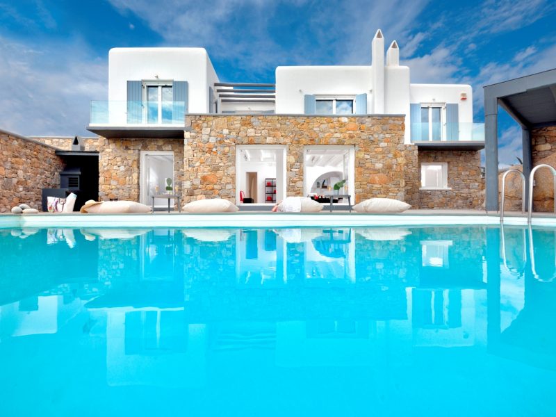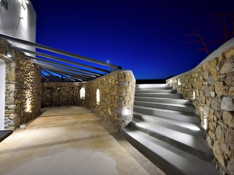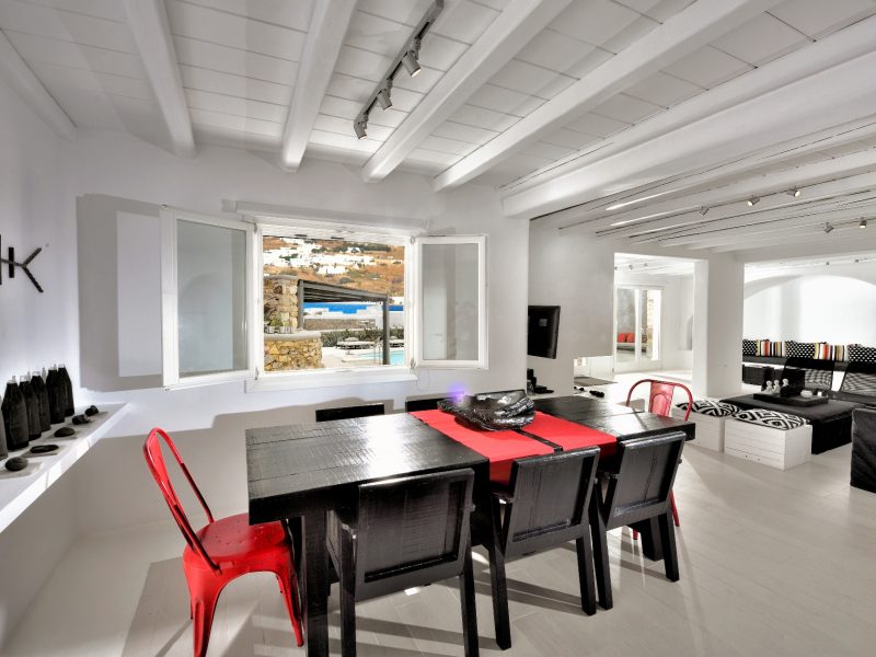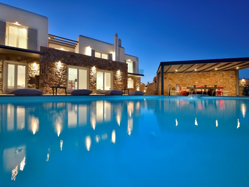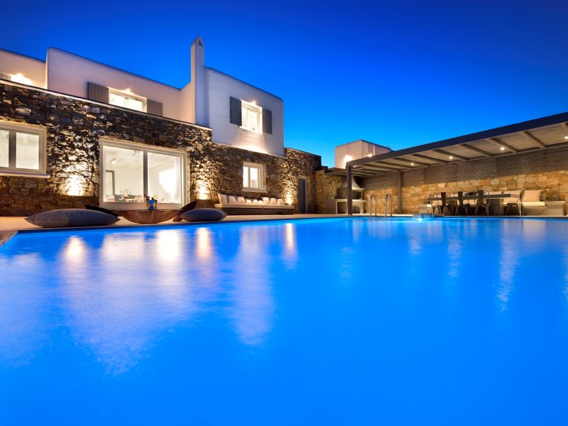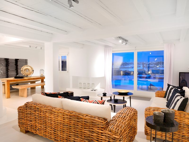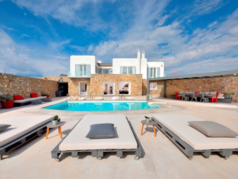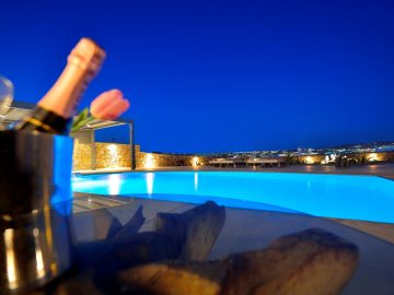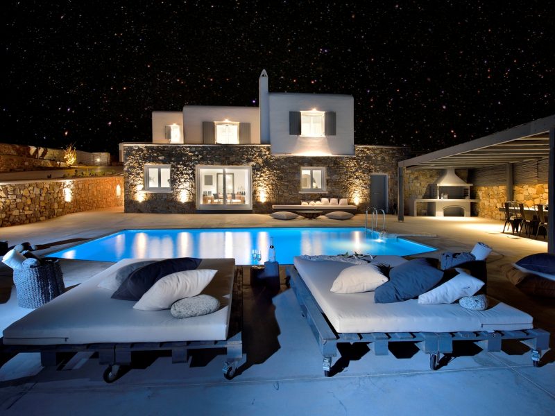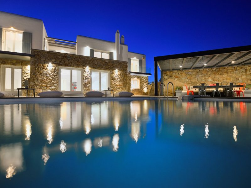 Diamond Villa is a 12-bedroom luxurious villa, located in Kanalia, only 150 meters from the sea. Built in a residence site of 4.800 m2, it has a view of Mykonos Town, Hora and Tinos Island. The villa features 12 bedrooms, 12 bathrooms, 1 extra sitting room with a sofa bed , 3 WC and large indoor and outdoor spaces.