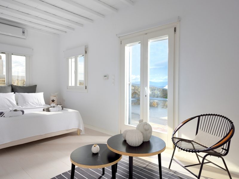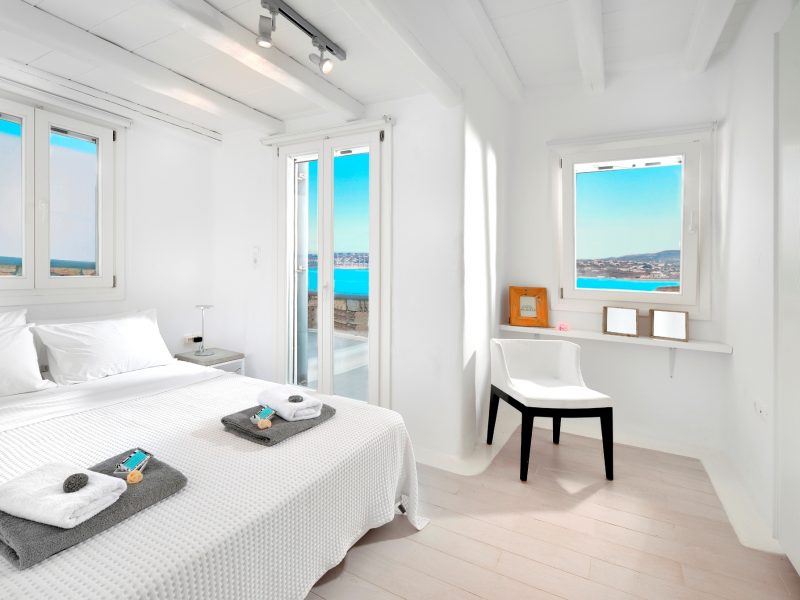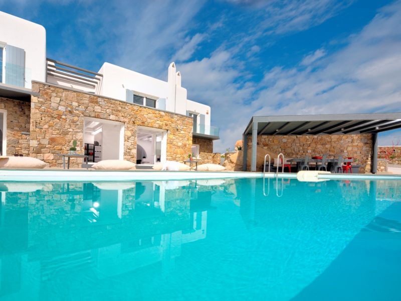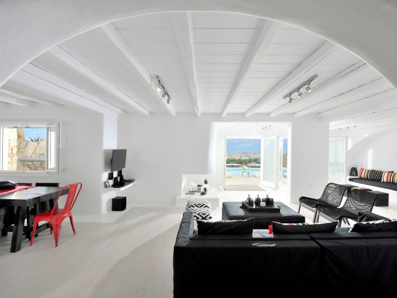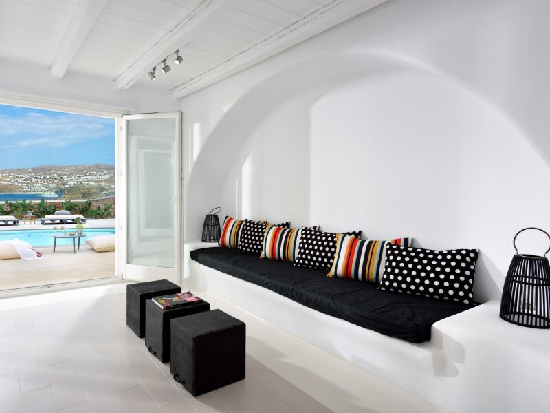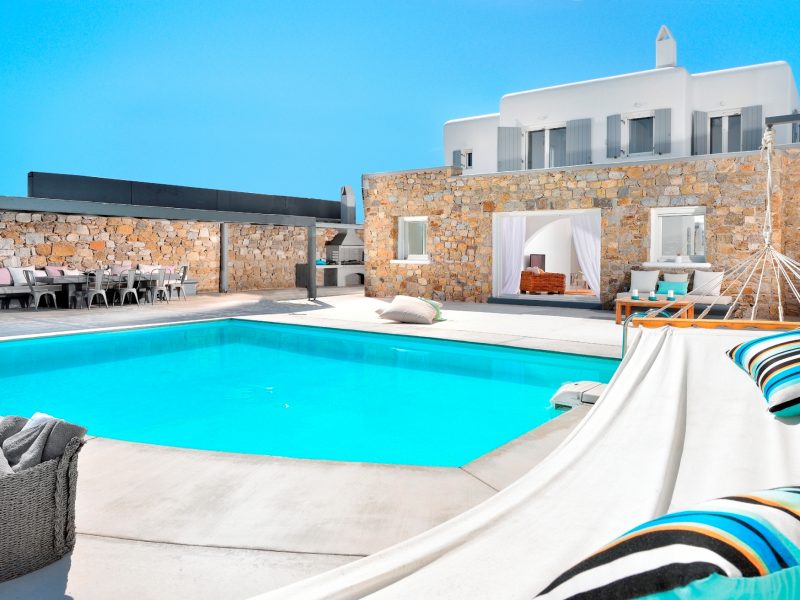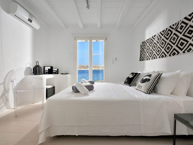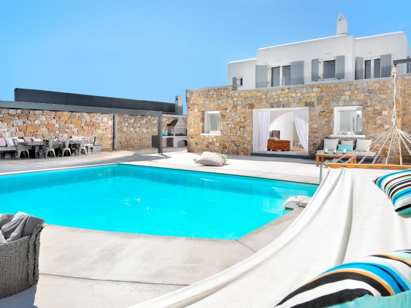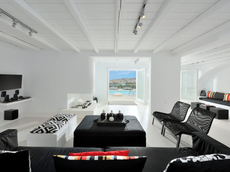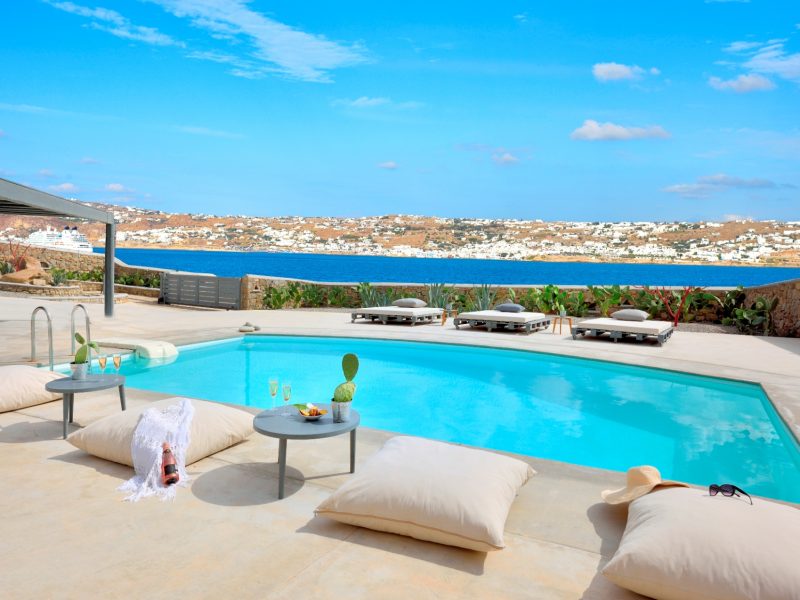 Diamond Villa is a 12-bedroom luxurious villa, located in Kanalia, only 150 meters from the sea. Built in a residence site of 4.800 m2, it has a view of Mykonos Town, Hora and Tinos Island. The villa features 12 bedrooms, 12 bathrooms, 1 extra sitting room with a sofa bed , 3 WC and large indoor and outdoor spaces.