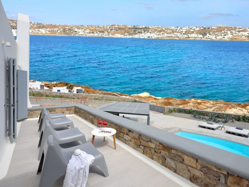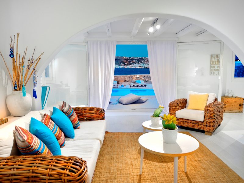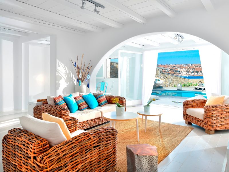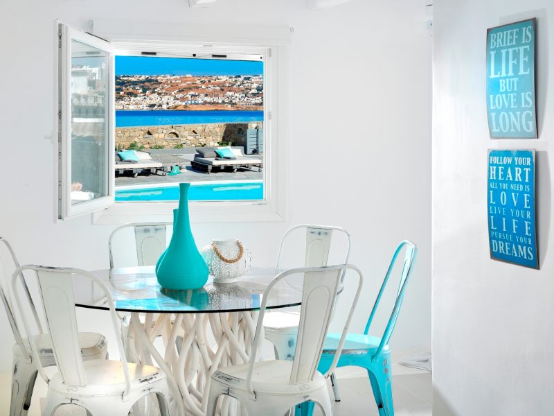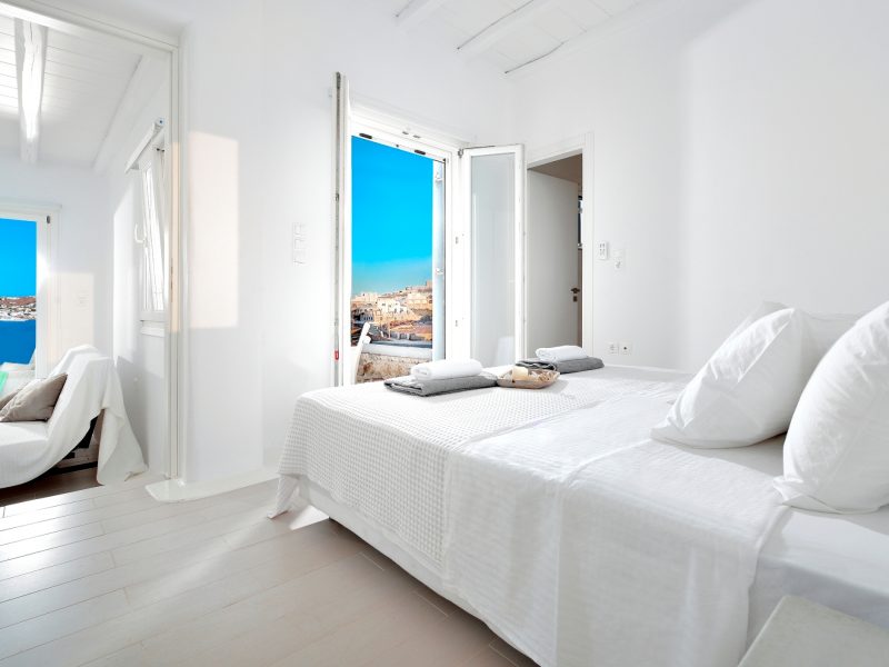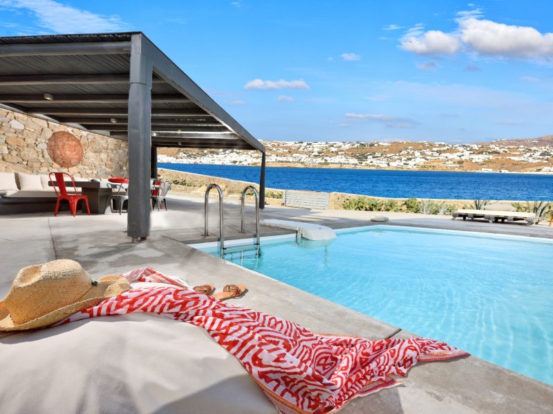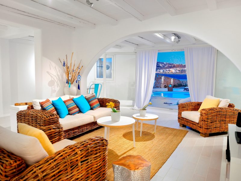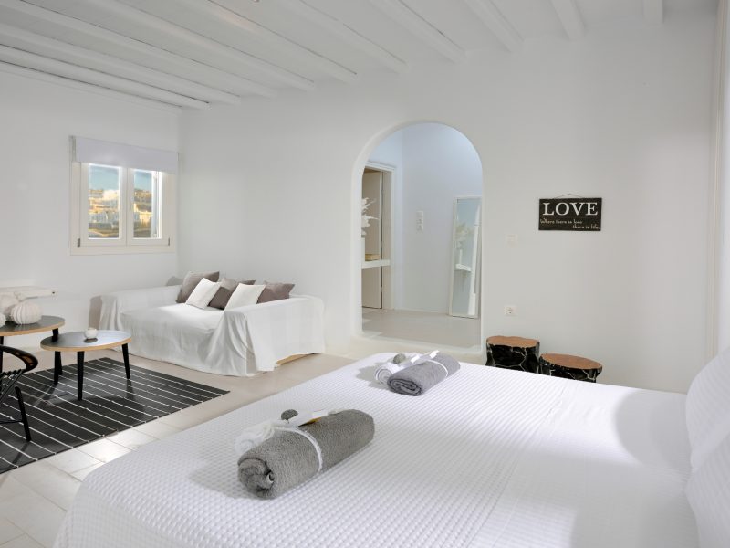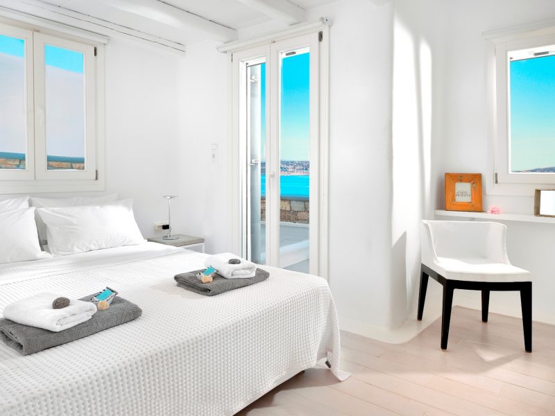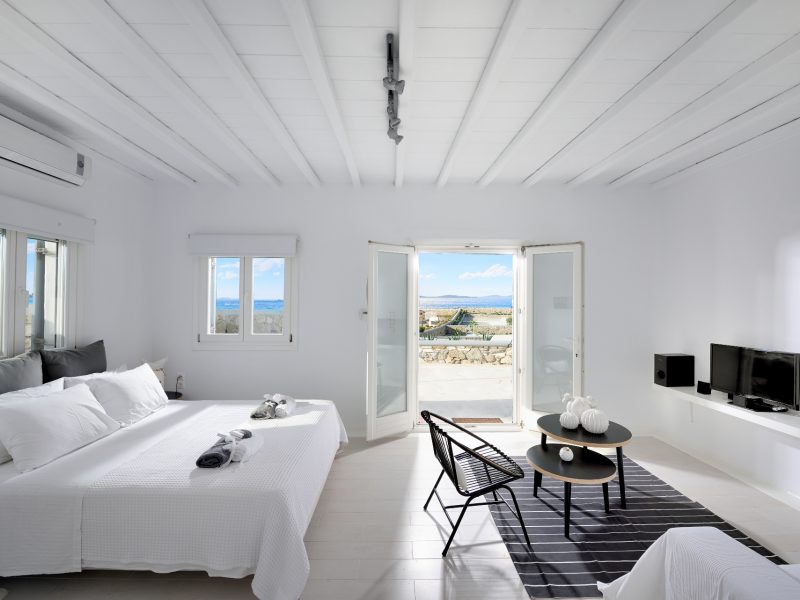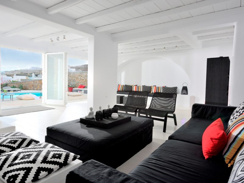 Diamond Villa is a 12-bedroom luxurious villa, located in Kanalia, only 150 meters from the sea. Built in a residence site of 4.800 m2, it has a view of Mykonos Town, Hora and Tinos Island. The villa features 12 bedrooms, 12 bathrooms, 1 extra sitting room with a sofa bed , 3 WC and large indoor and outdoor spaces.