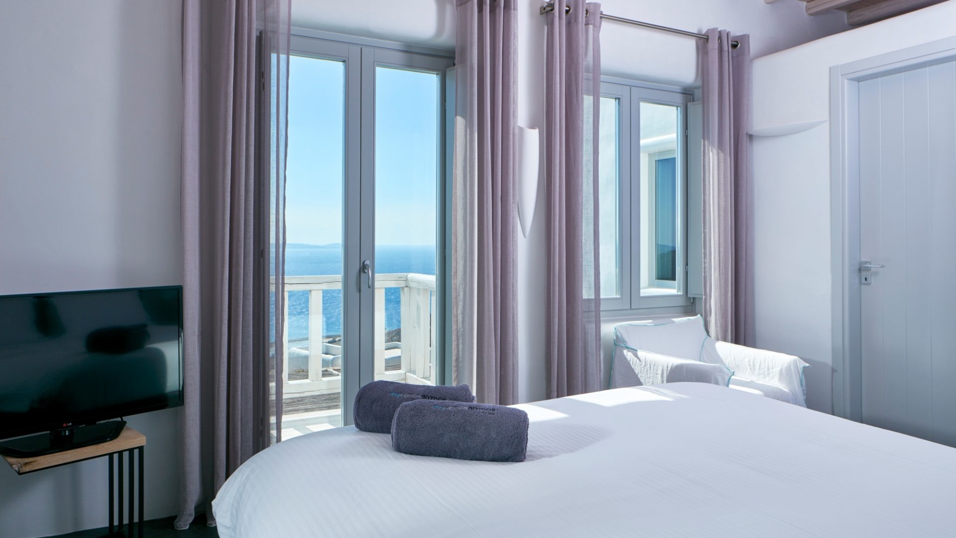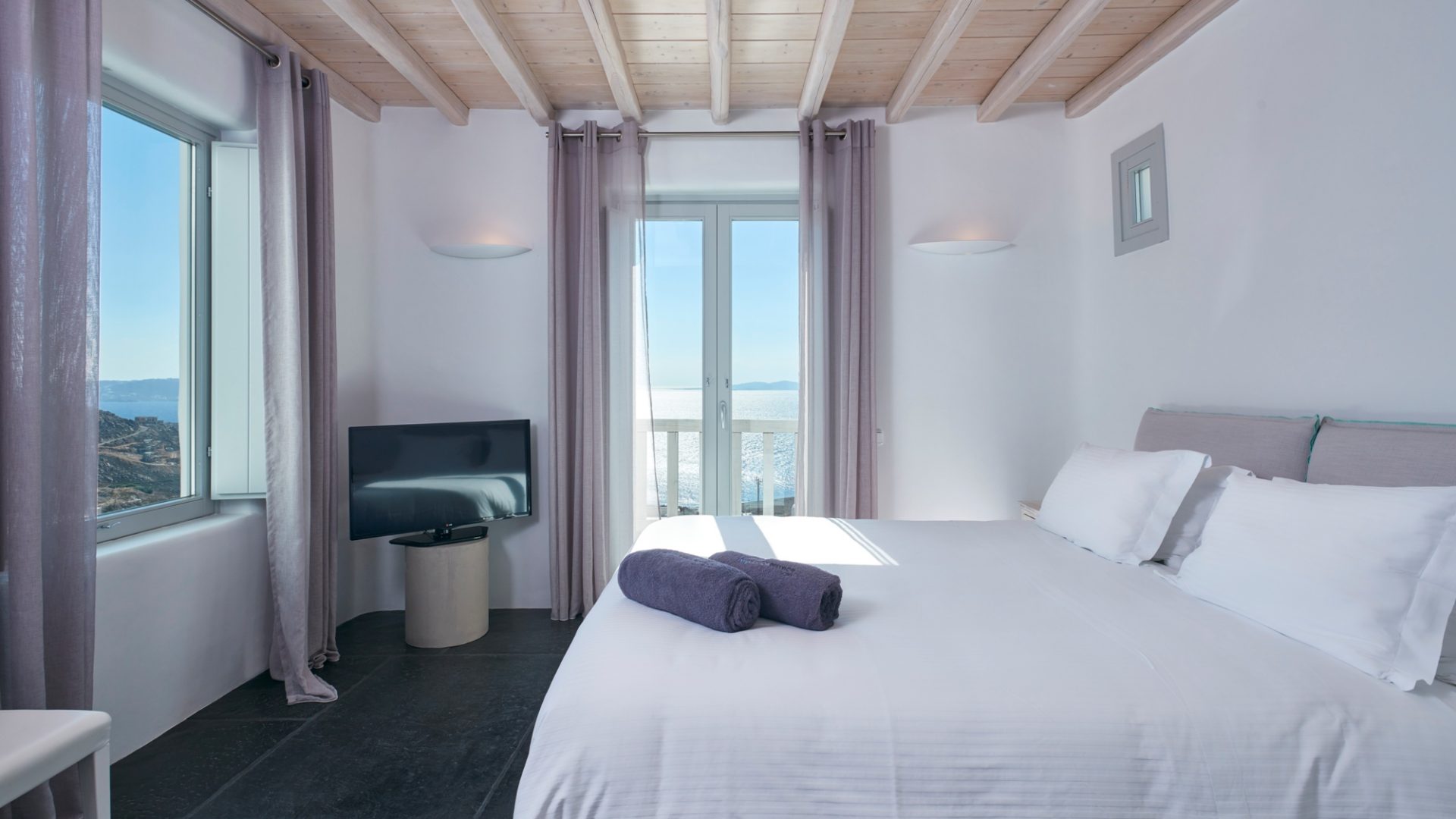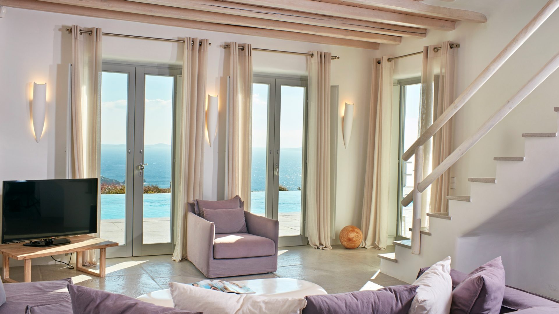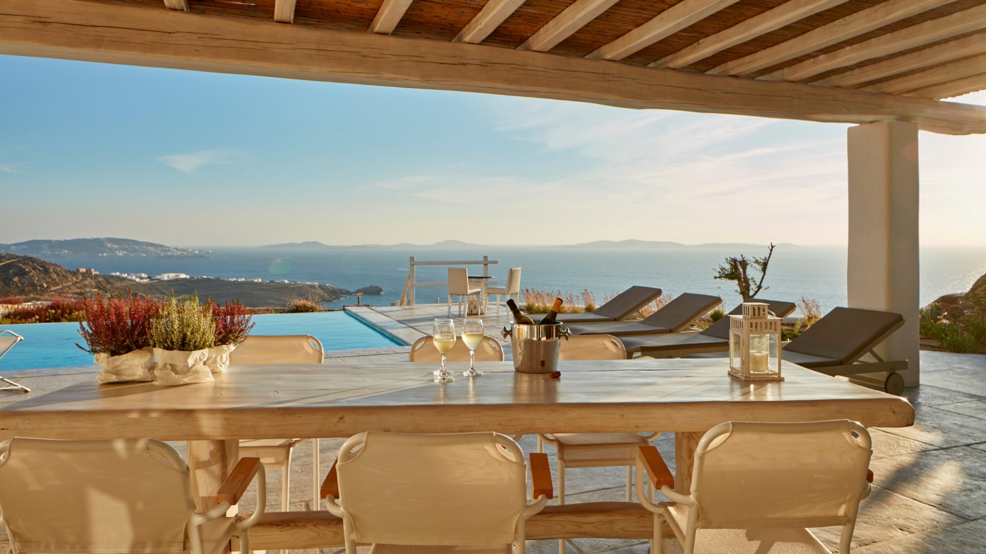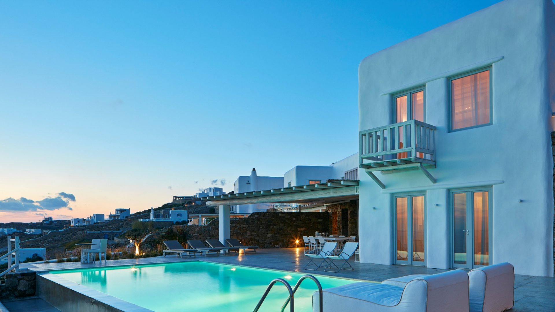 Create summer memories in Villa Regent, a newly built luxury villa in the Houlakia area of Mykonos, offering spectacular views of the sunset, the Aegean Sea and Delos island.