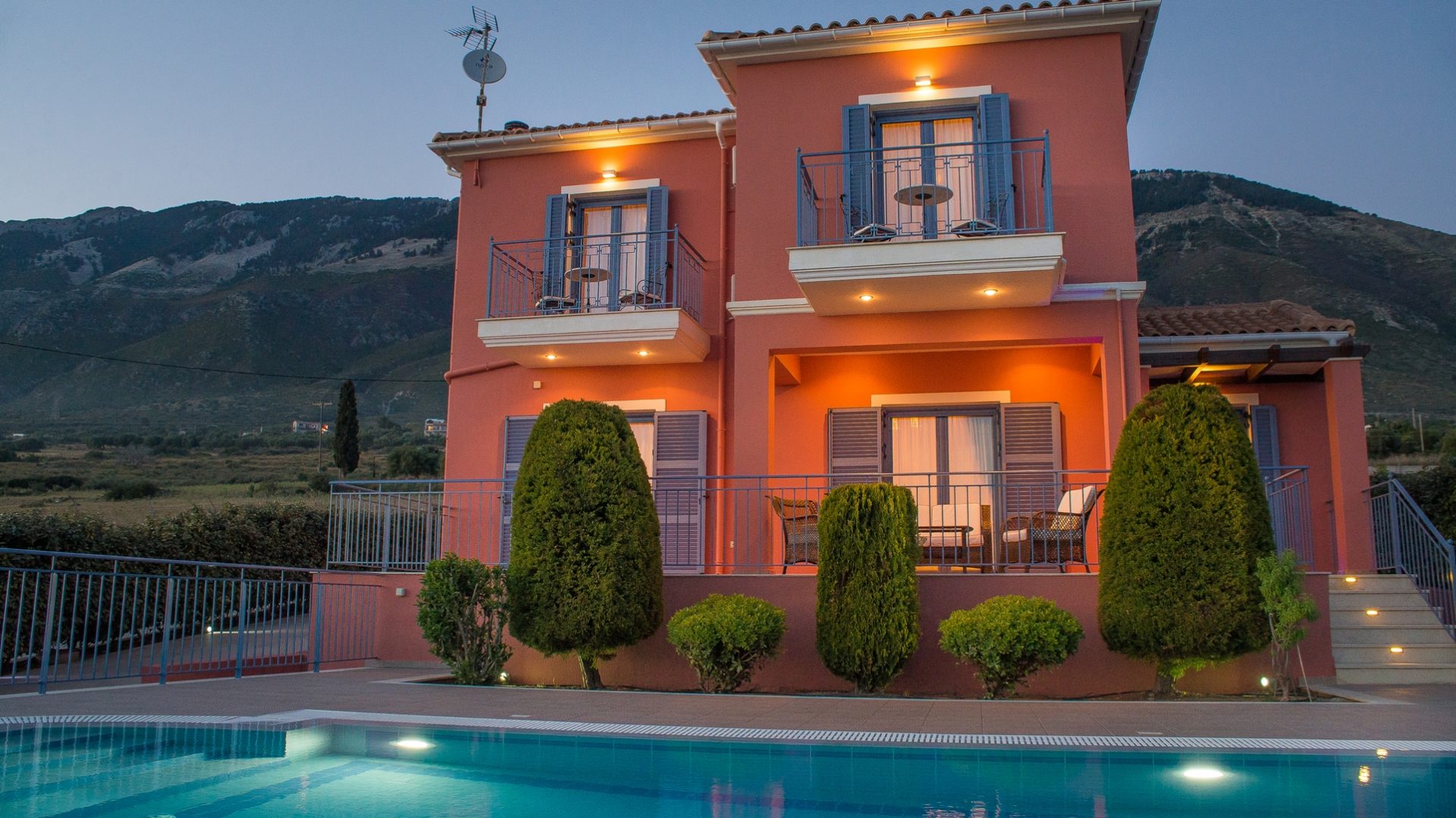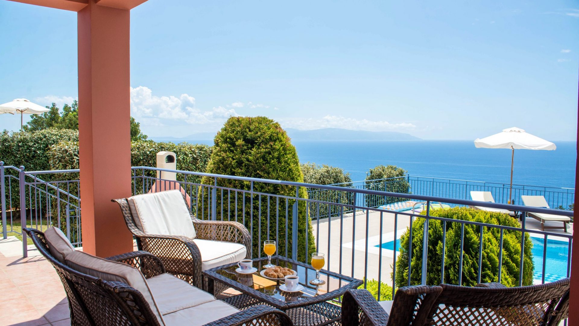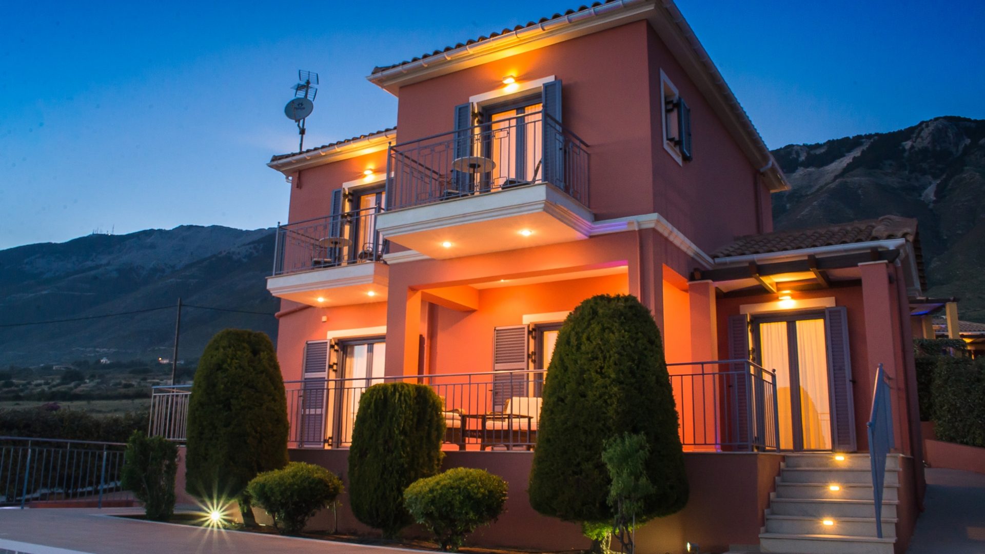 The view towards the Ionian sea, from every aspect of both villas, is breathtaking during both day and night.