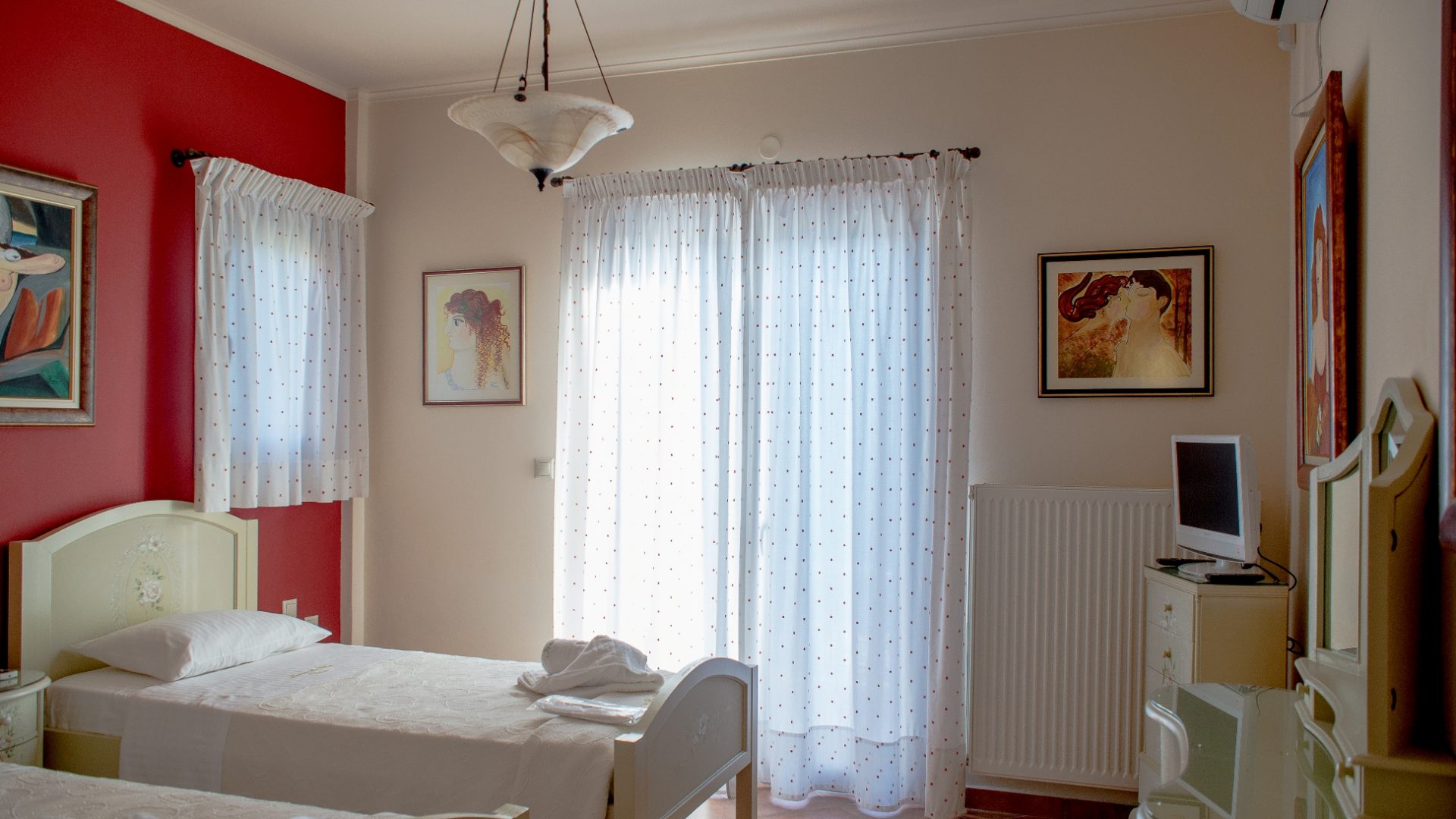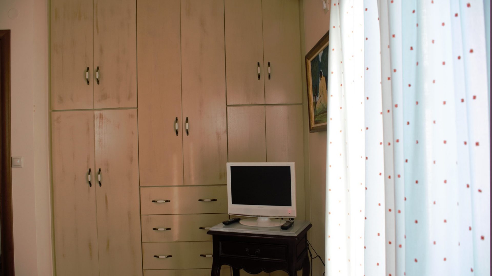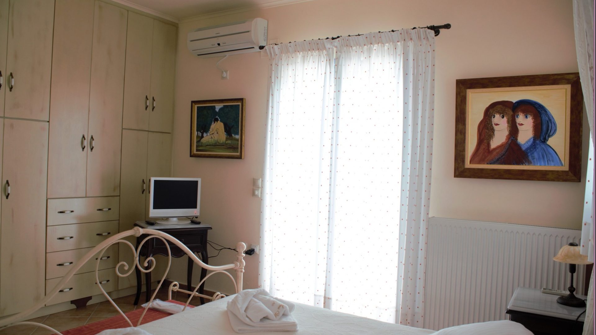 A/c, central heating, 3 television sets, satellite tv, vault, hair dryer, washing machine, pc, all the windows have a screen