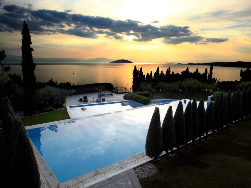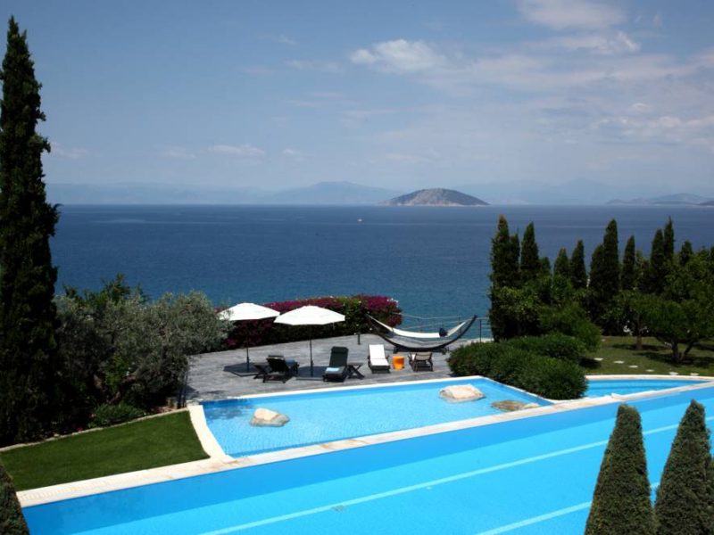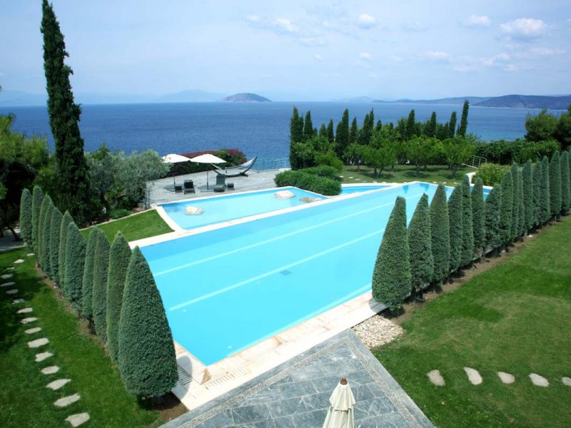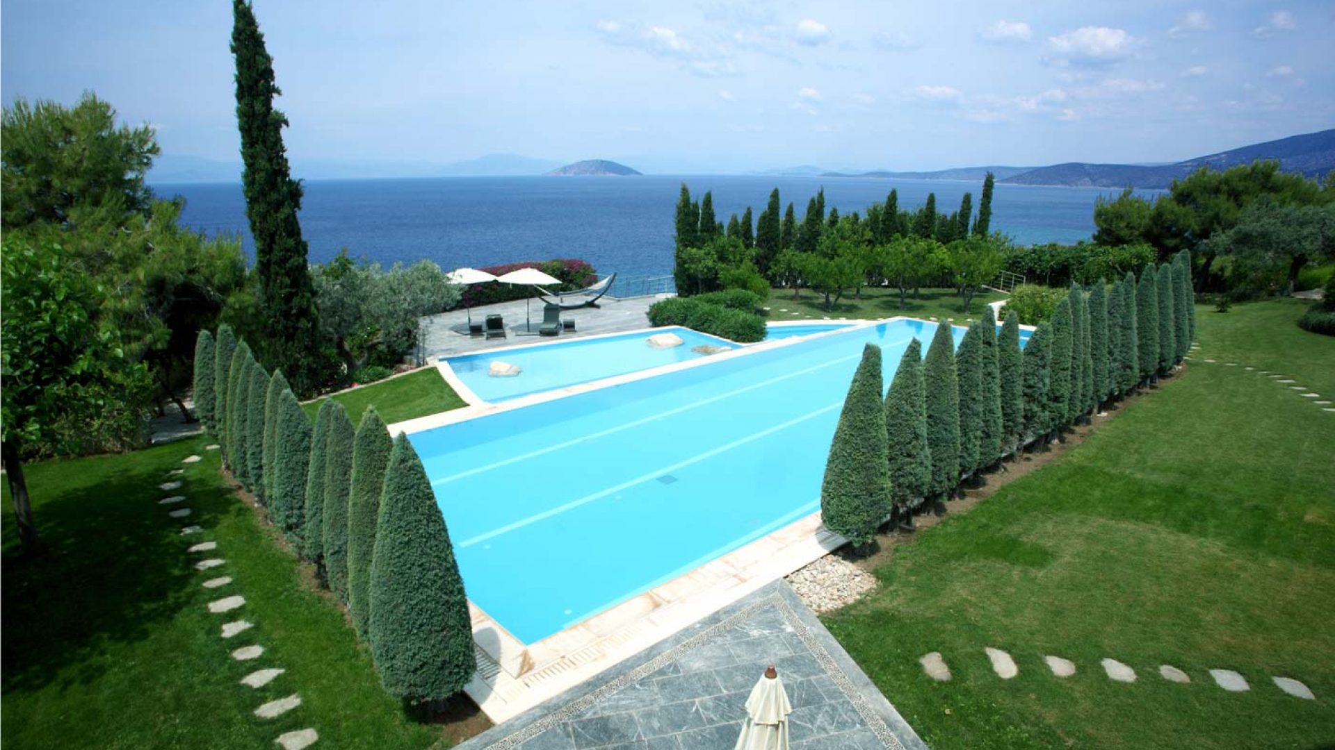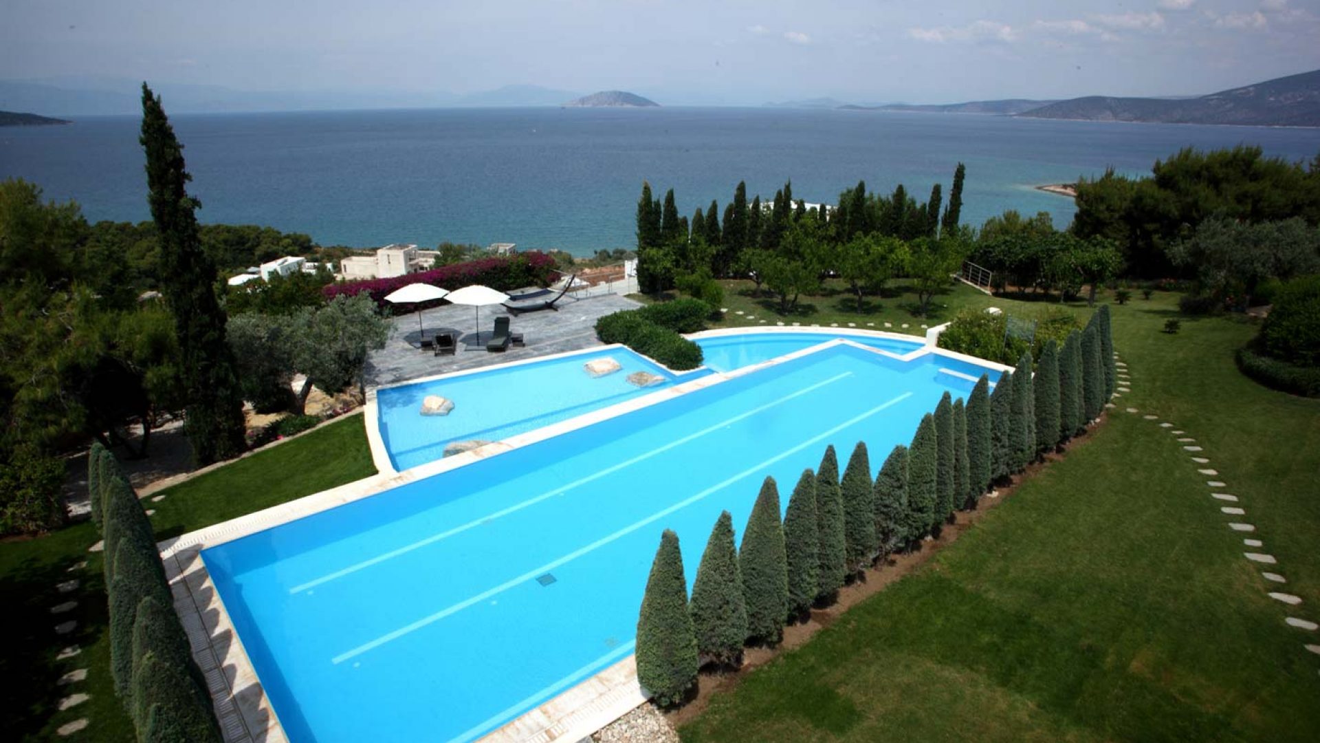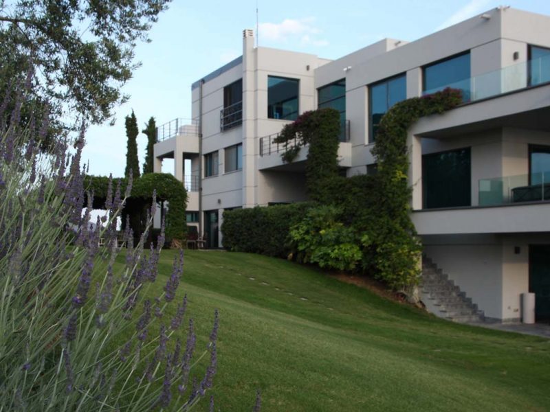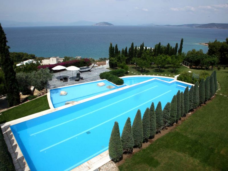 The luxury villa is simply presented to the highest of standards (the villa is 750m2 including terraces) and set in mature and fragrant grounds. 2 1/2 hours’ drive from Athens Int. Airport and a 35-minute flight to its private helicopter landing pad