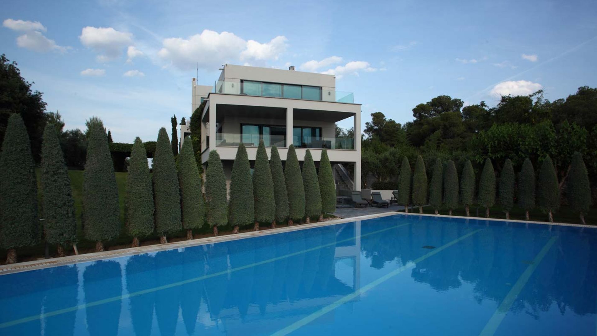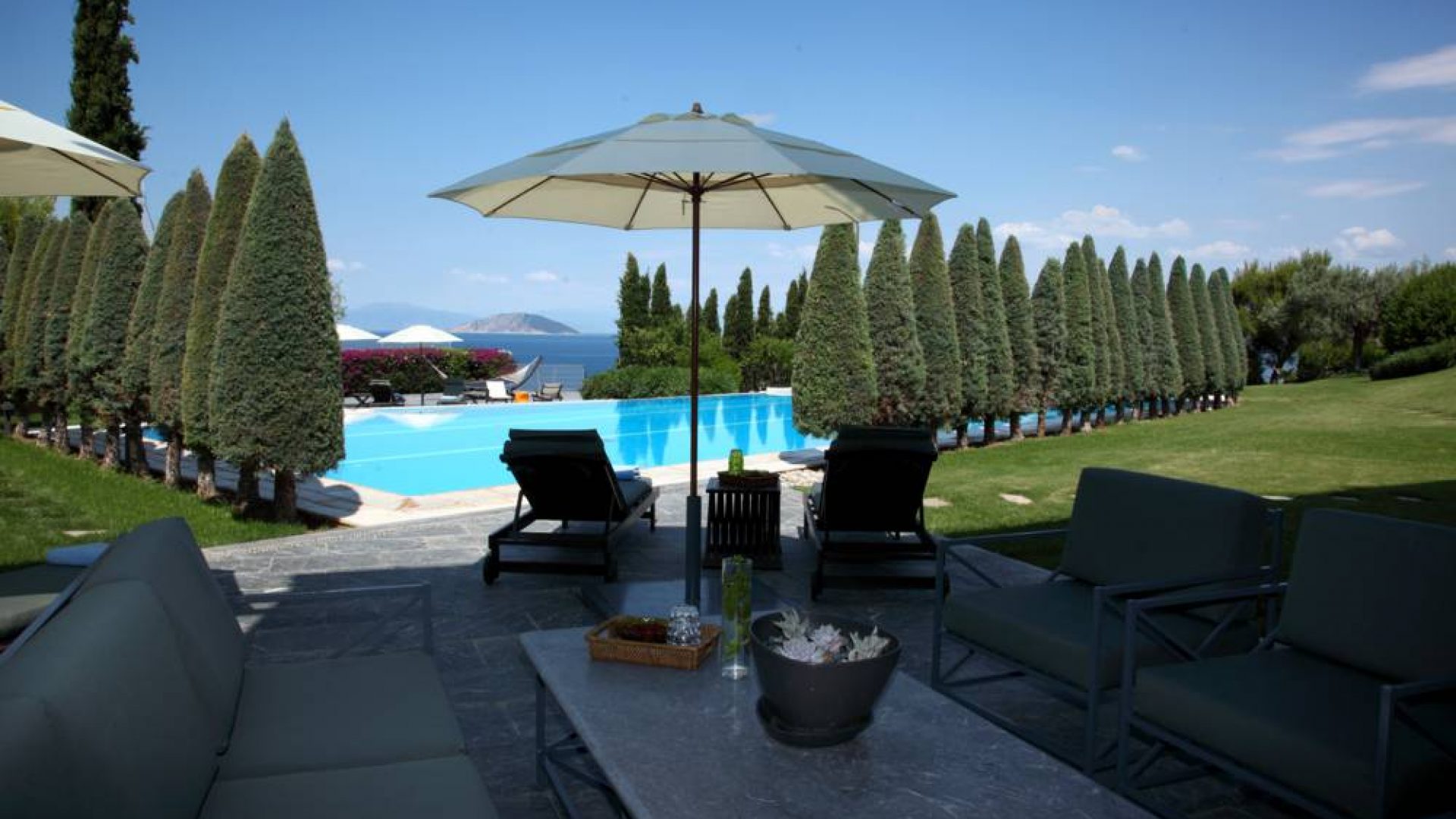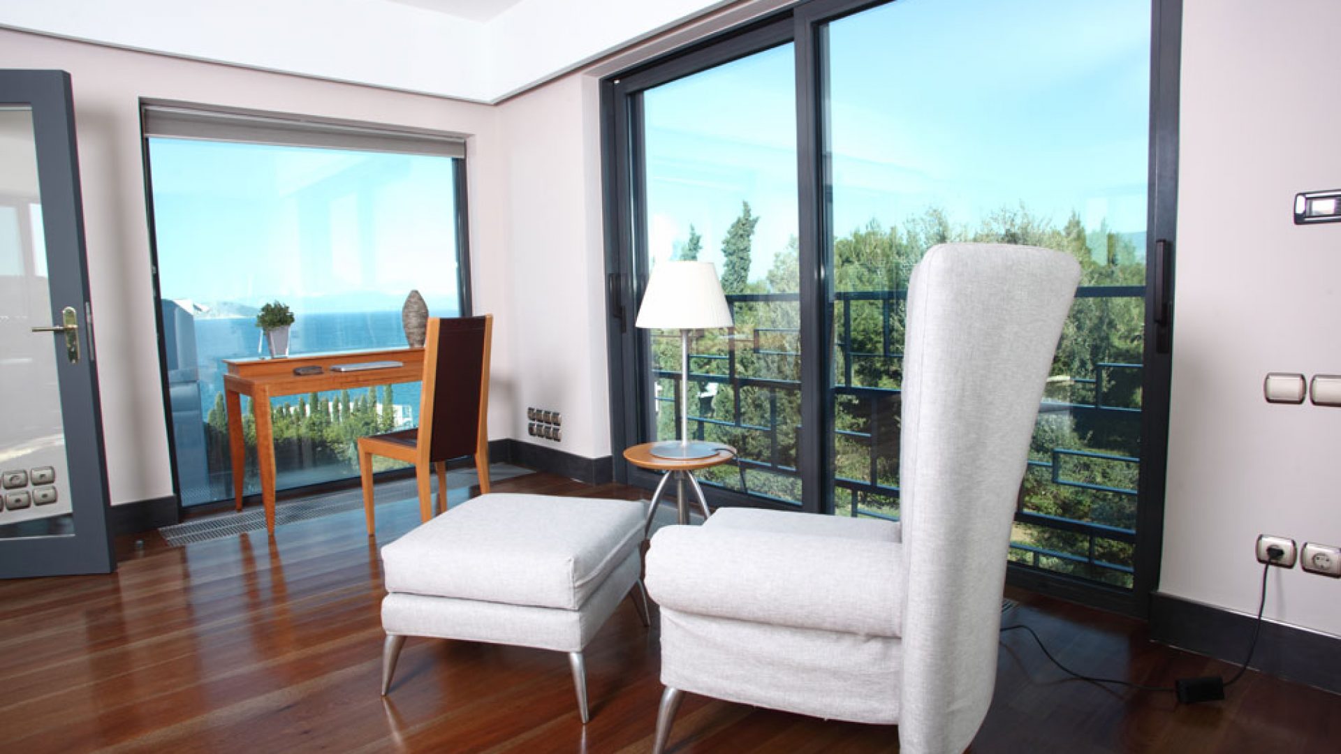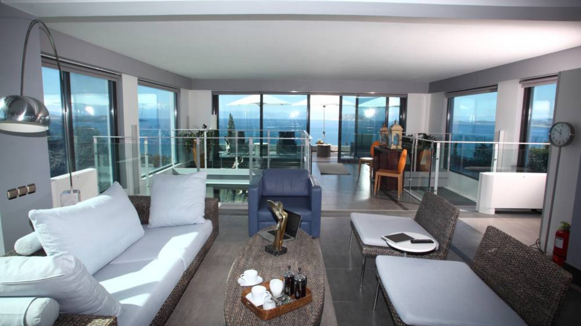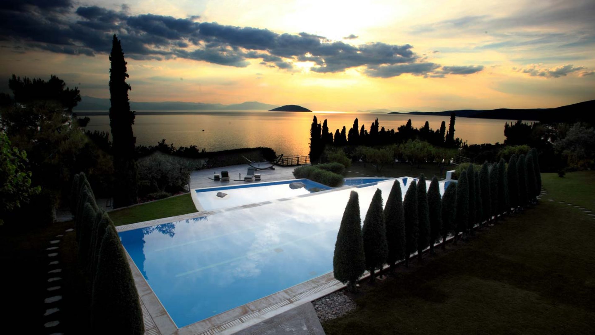 The luxury villa is simply presented to the highest of standards (the villa is 750m2 including terraces) and set in mature and fragrant grounds. 2 1/2 hours’ drive from Athens Int. Airport and a 35-minute flight to its private helicopter landing pad
