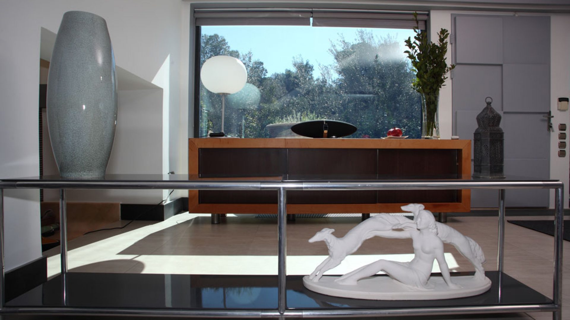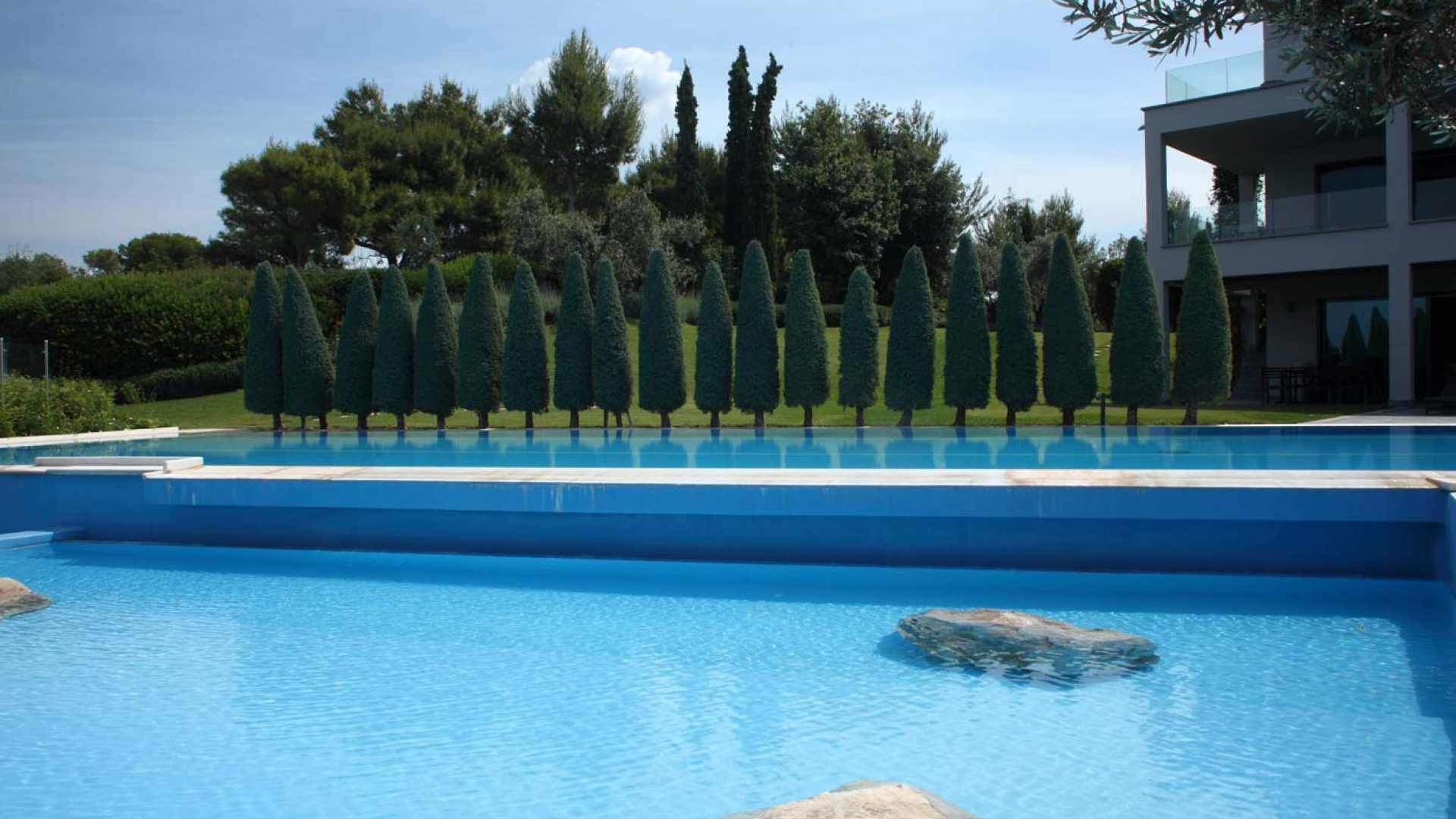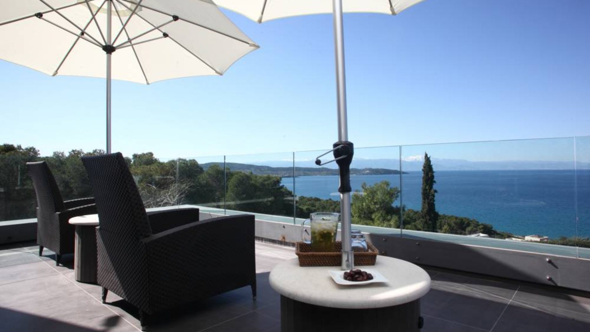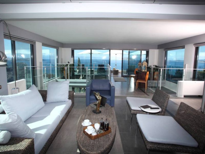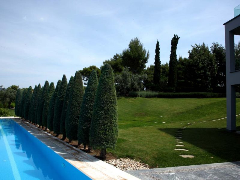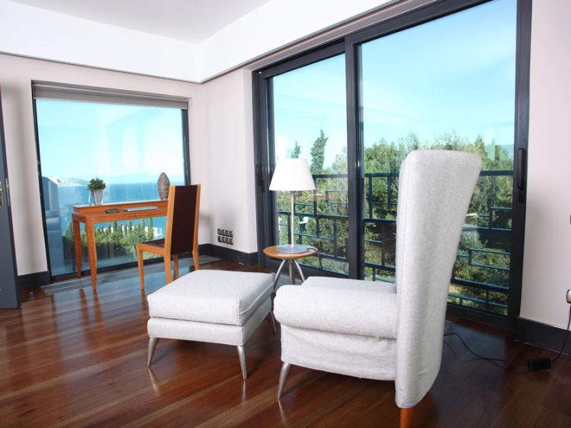The luxury villa is simply presented to the highest of standards (the villa is 750m2 including terraces) and set in mature and fragrant grounds. 2 1/2 hours’ drive from Athens Int. Airport and a 35-minute flight to its private helicopter landing pad