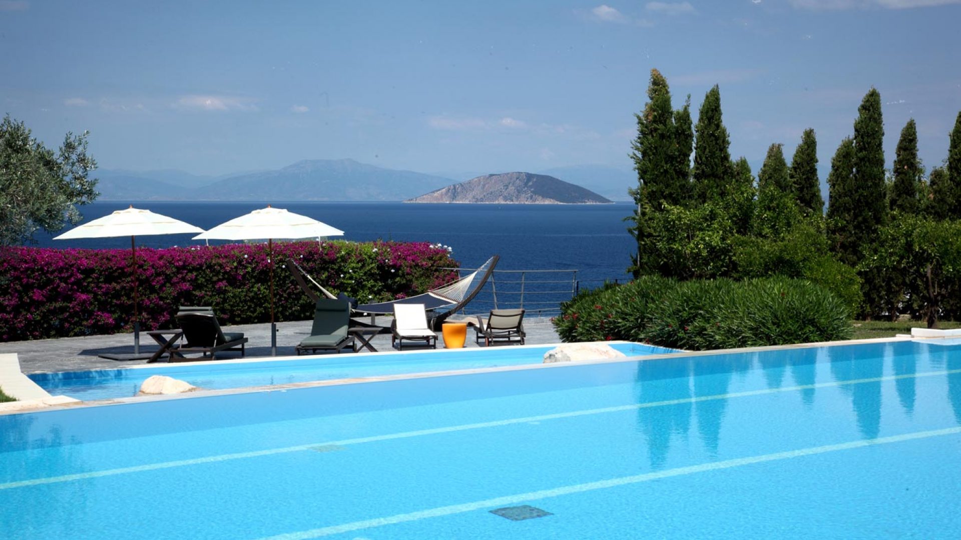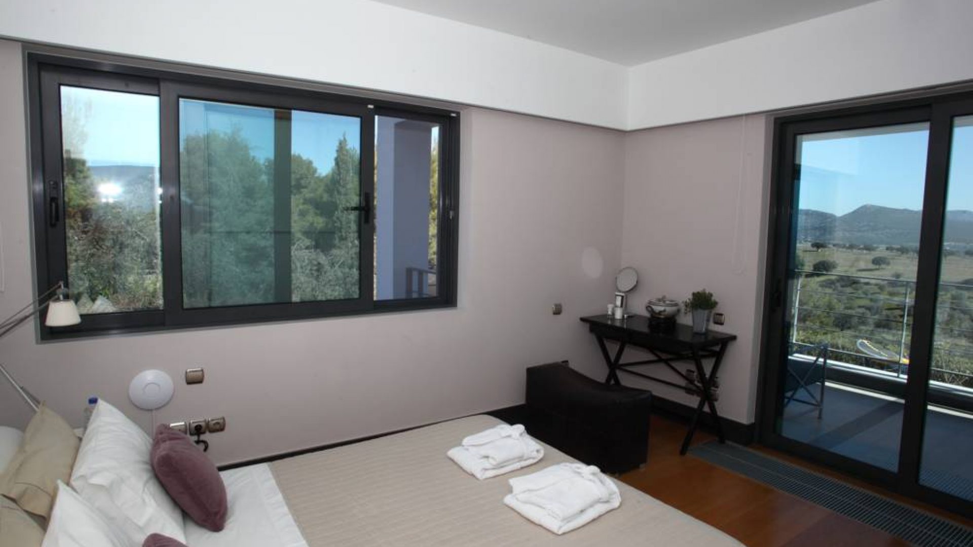 The villa is nestled in the dramatic landscape of the eastern Peloponnese, on the Greek main land. 21/2 hours’ drive from Athens Airport and a 30-minute flight to the private helicopter landing pad / within walking distance of Villa Deka.