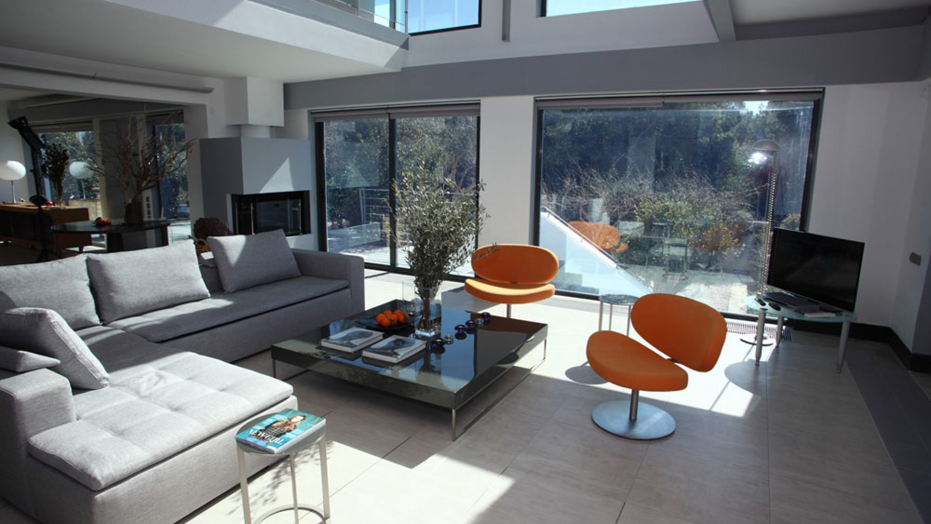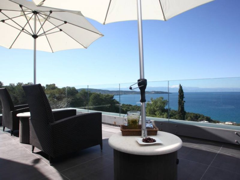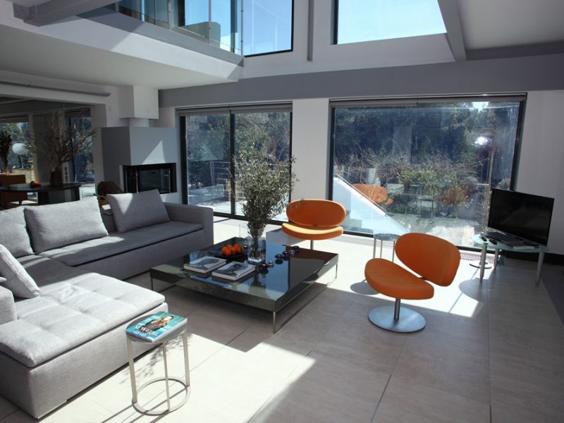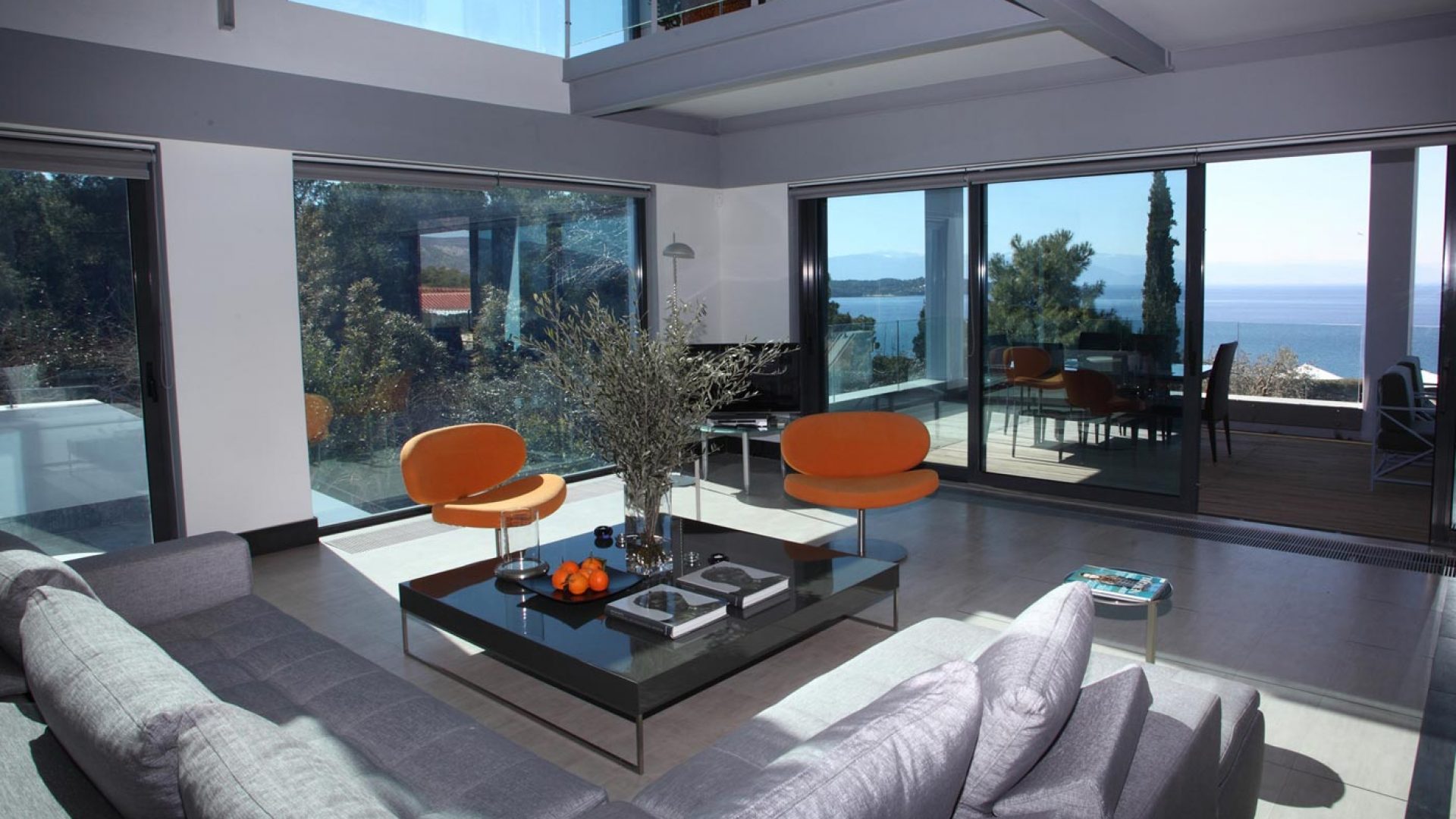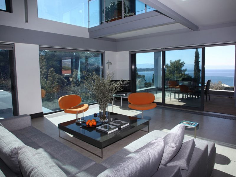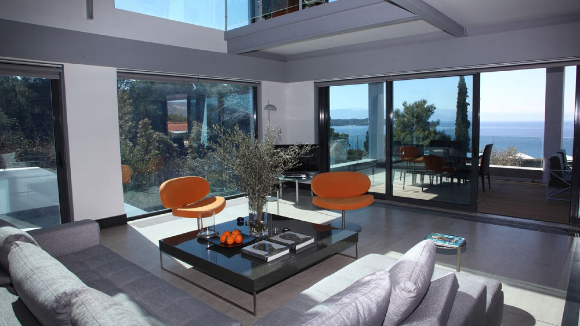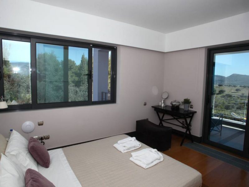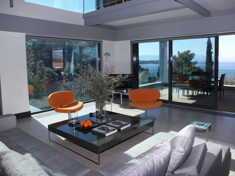 The open plan villa has light airy spaces with floor to ceiling windows that invite the wrap around views into the villa. 360 degrees of classic Greek views. The 180° of seascape to the front of the villa rolls into the distant islands and mountains of the Peloponnese. Everywhere you look – whenever you look, it is beautiful.
