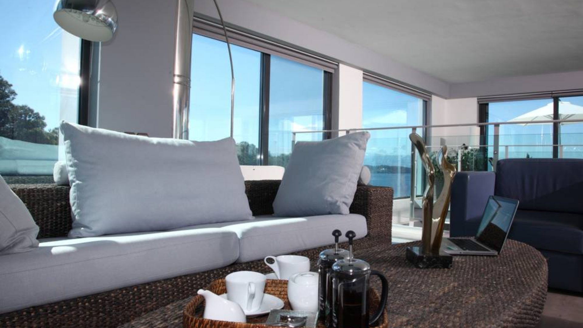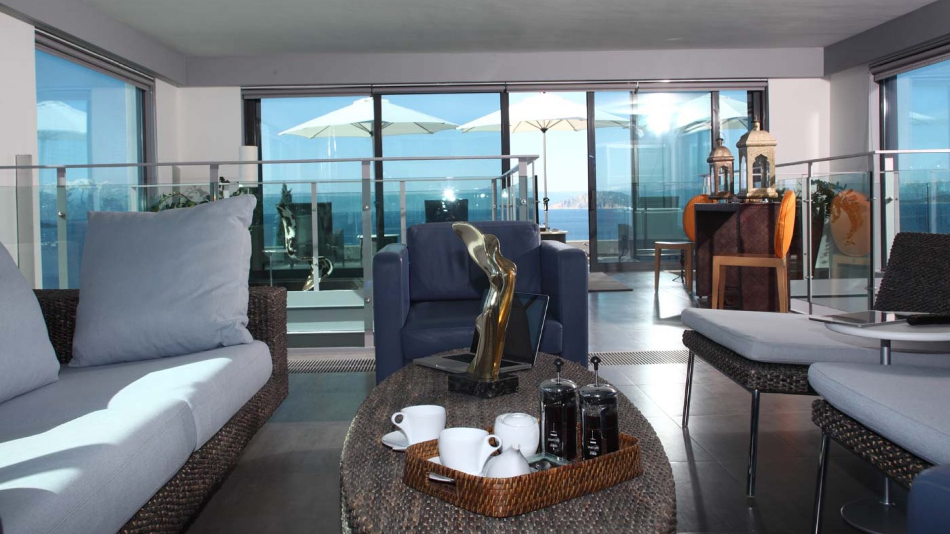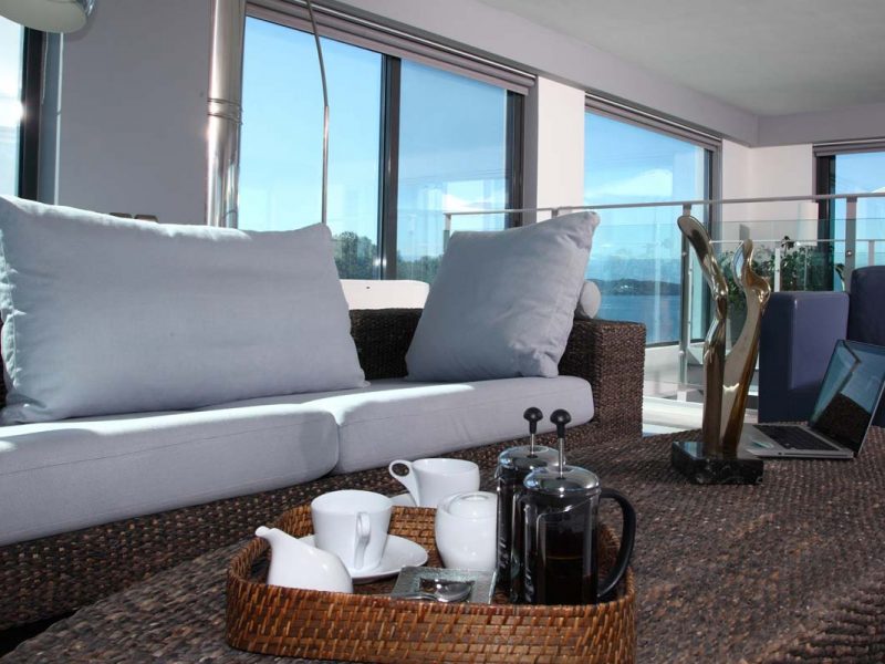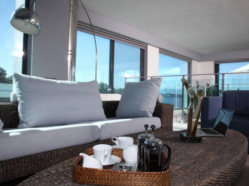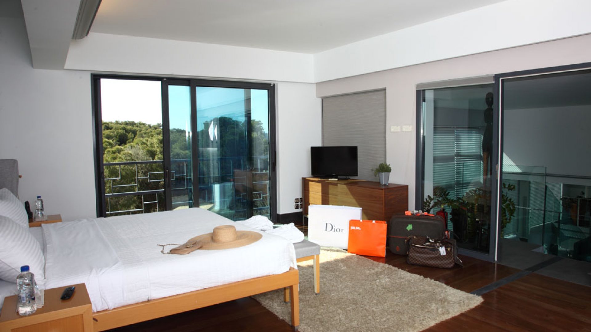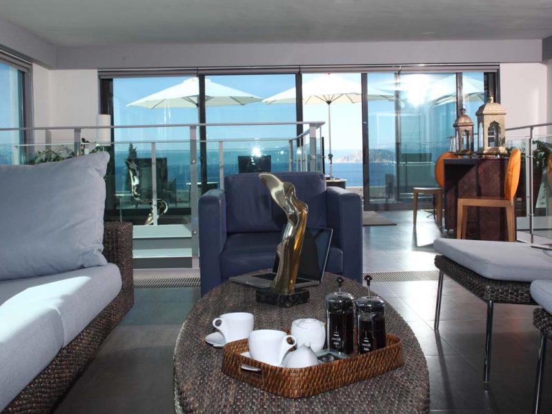 The open plan villa has light airy spaces with floor to ceiling windows that invite the wrap around views into the villa. 360 degrees of classic Greek views. The 180° of seascape to the front of the villa rolls into the distant islands and mountains of the Peloponnese. Everywhere you look – whenever you look, it is beautiful.
