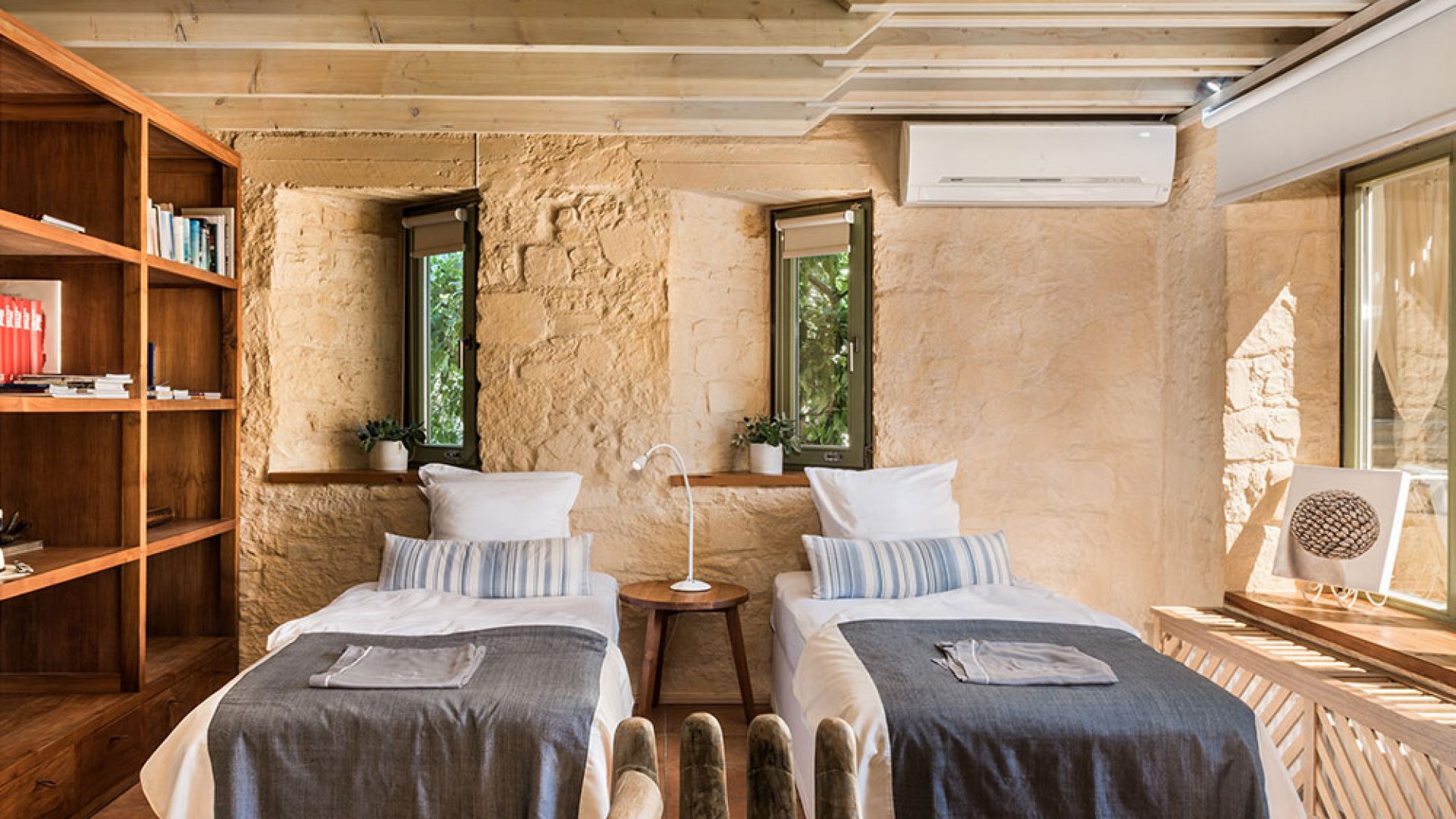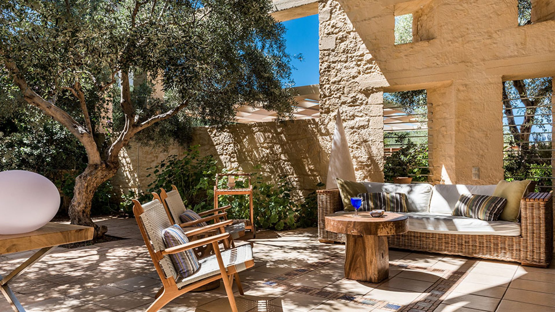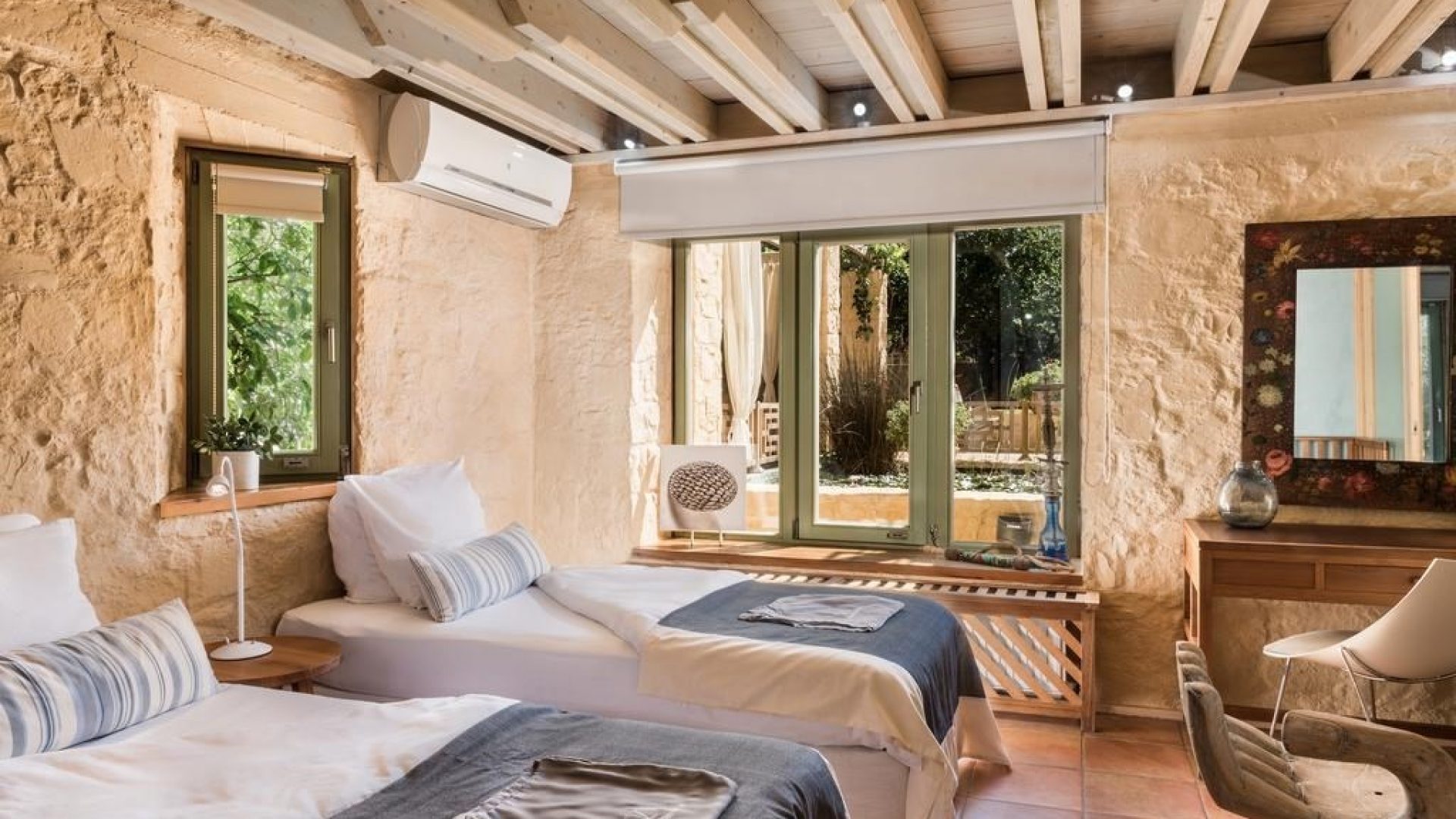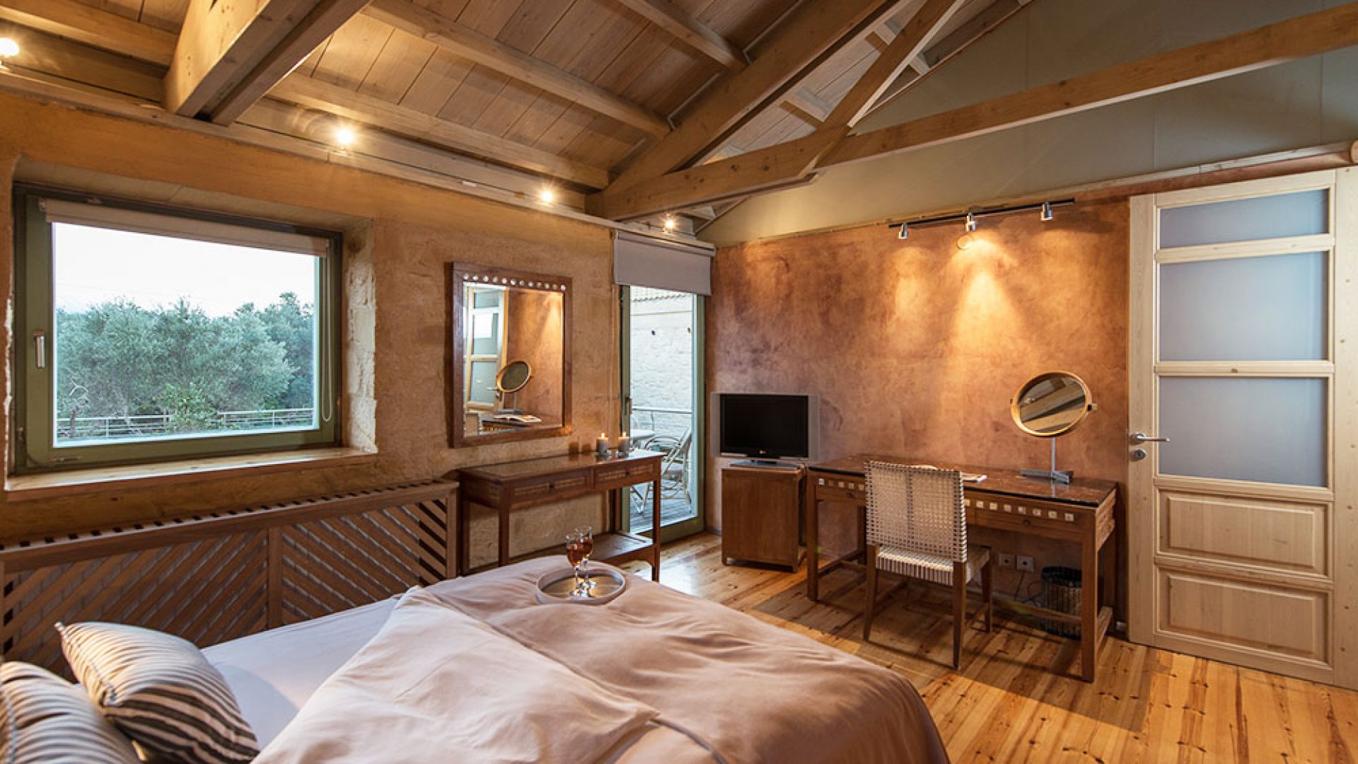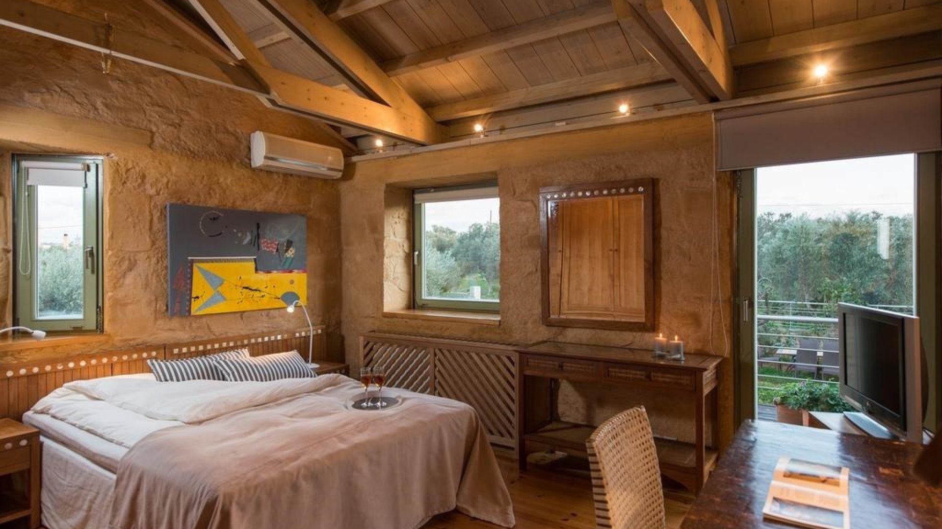 An architectural reflection of the Cretan landscape, bathing in the glorious Greek light and enfolded in the green tapestry of the surrounding olive grove, the luxurious resort lives up to one’s highest expectations. The modern, stone carved rooms, breath inside a pallet of warm, earthly colors and provide the whole range of comforts to indulge in.